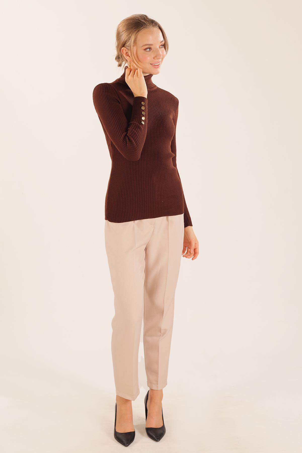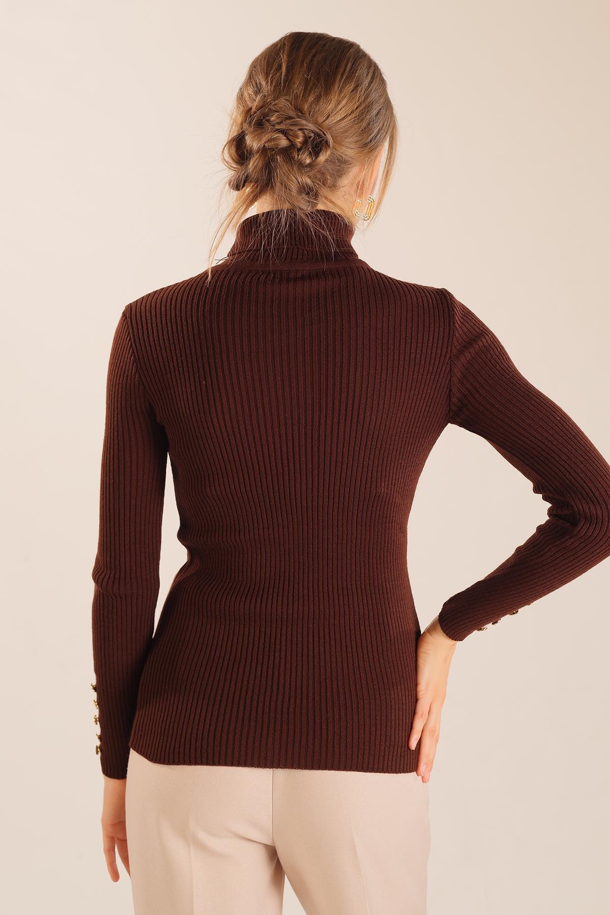 Acı Kahve Kol Düğme Detay Fitilli Kazak 006