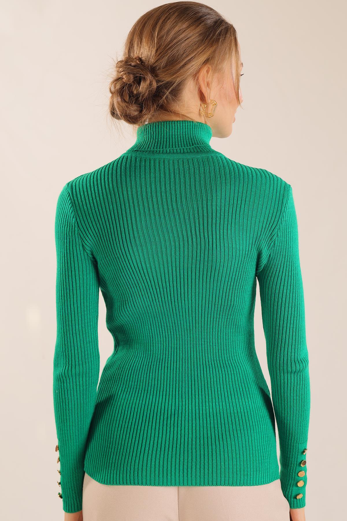 Benetton Yeşili Kol Düğme Detay Fitilli Kazak 006