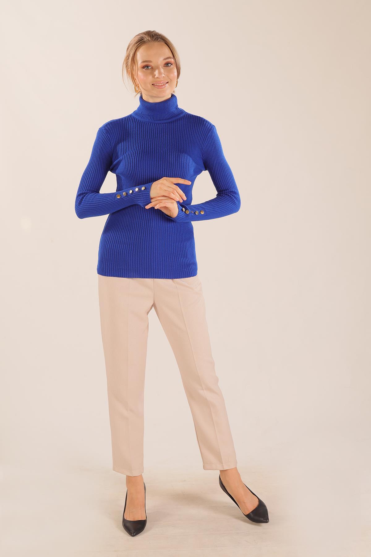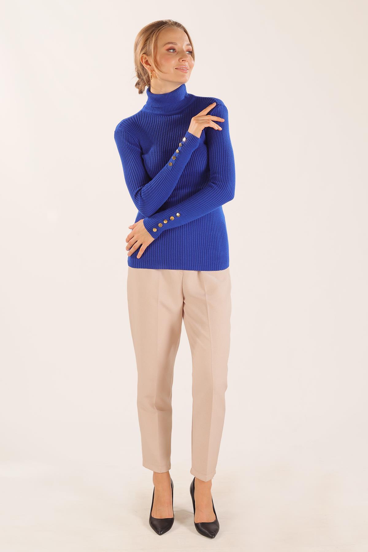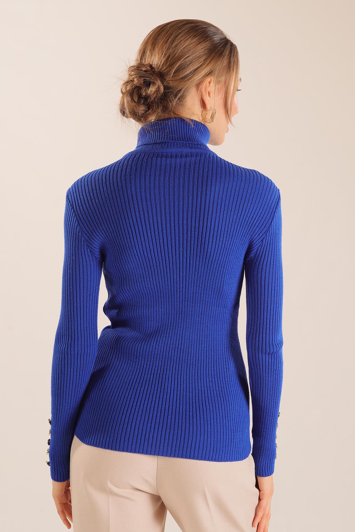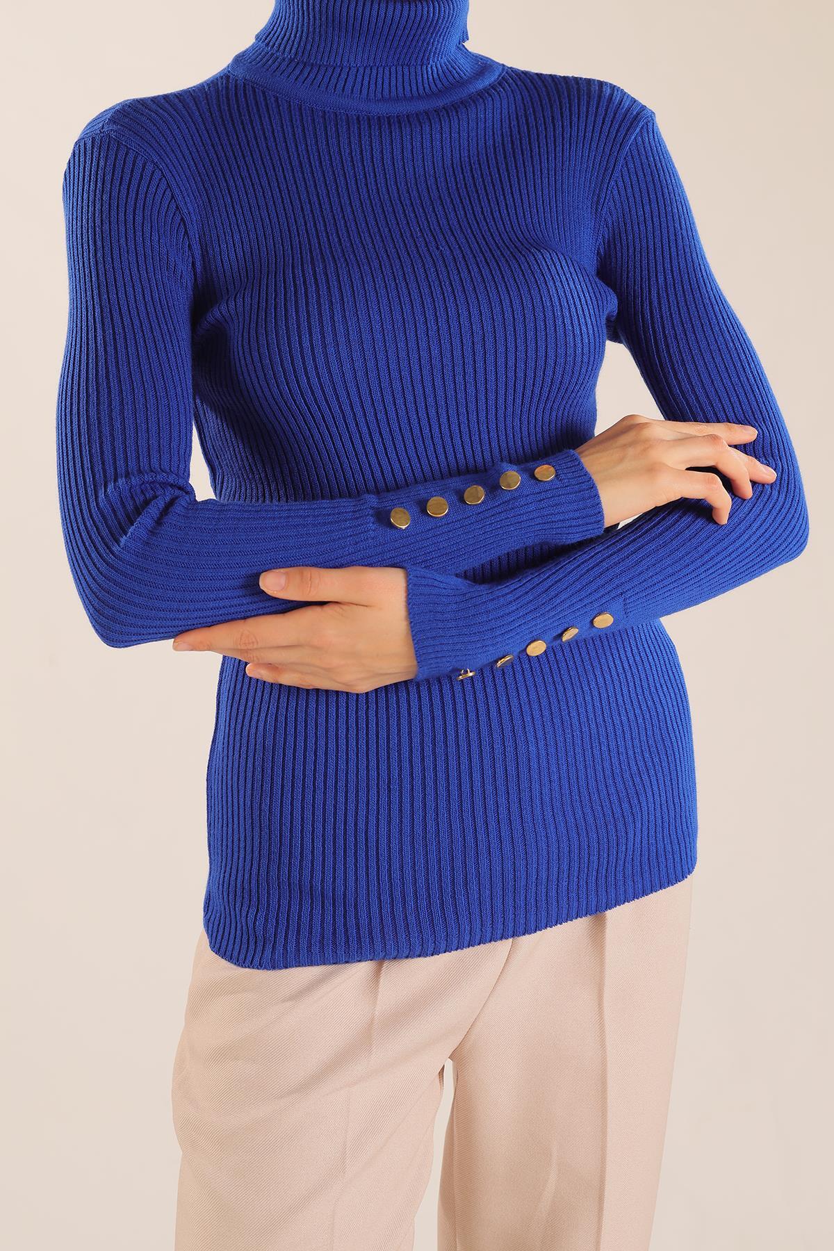 Saks Kol Düğme Detay Fitilli Kazak 006