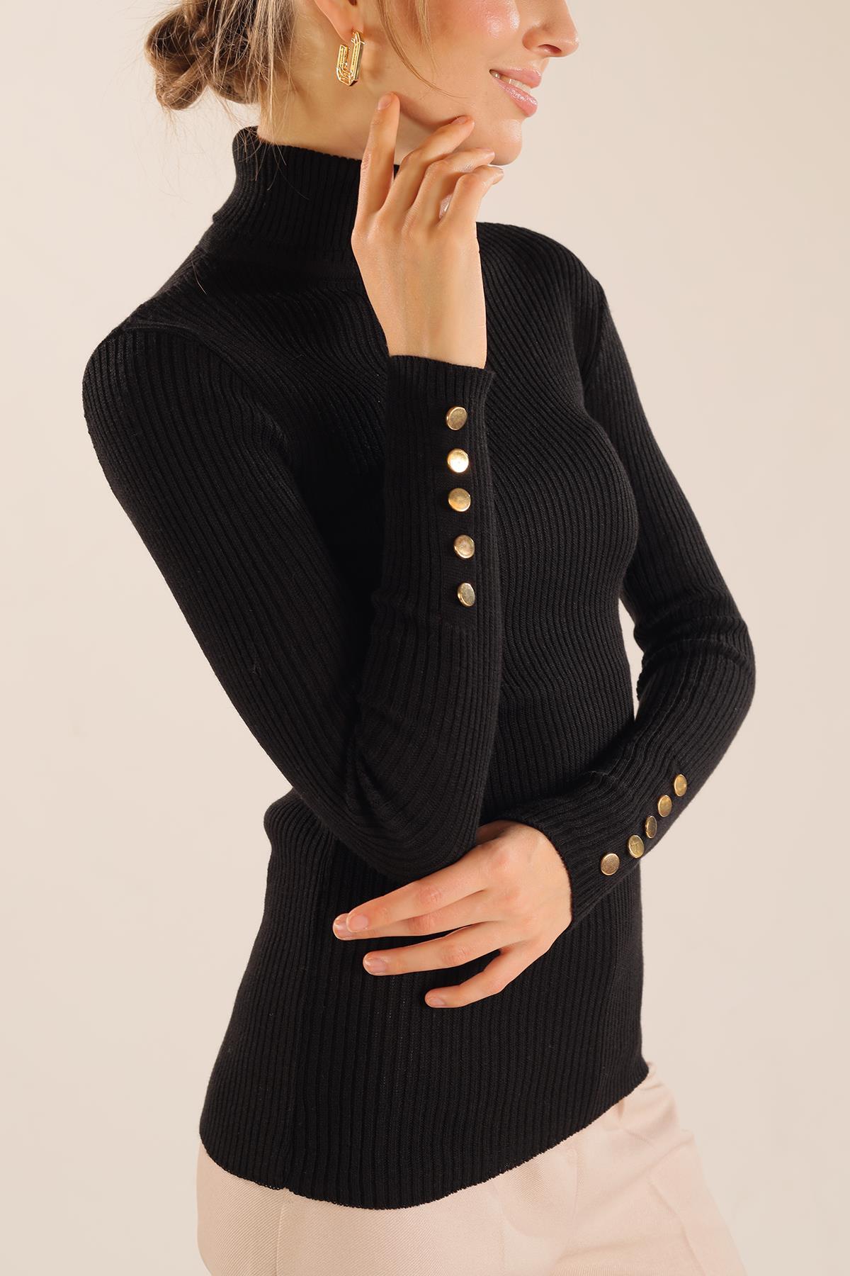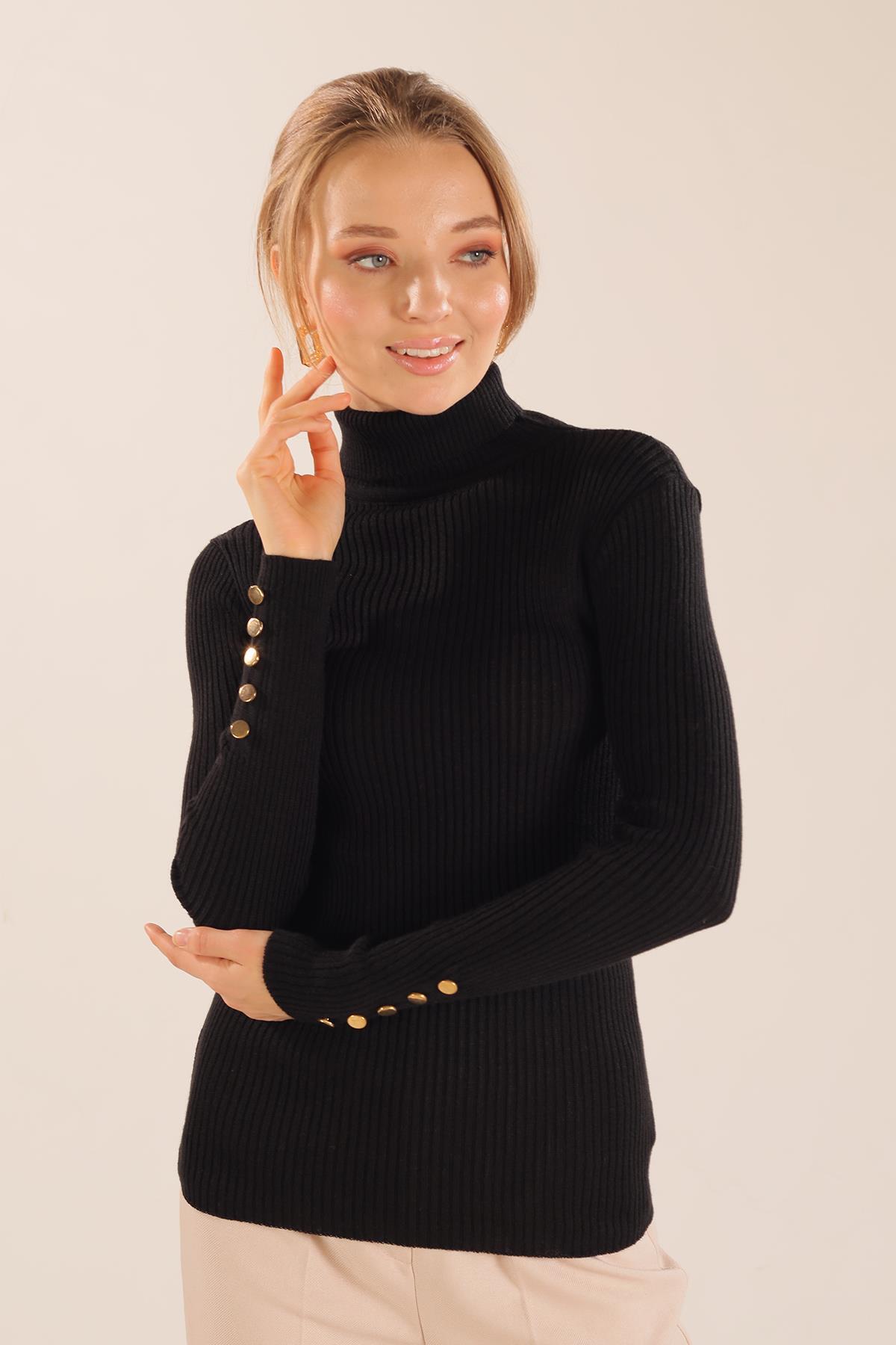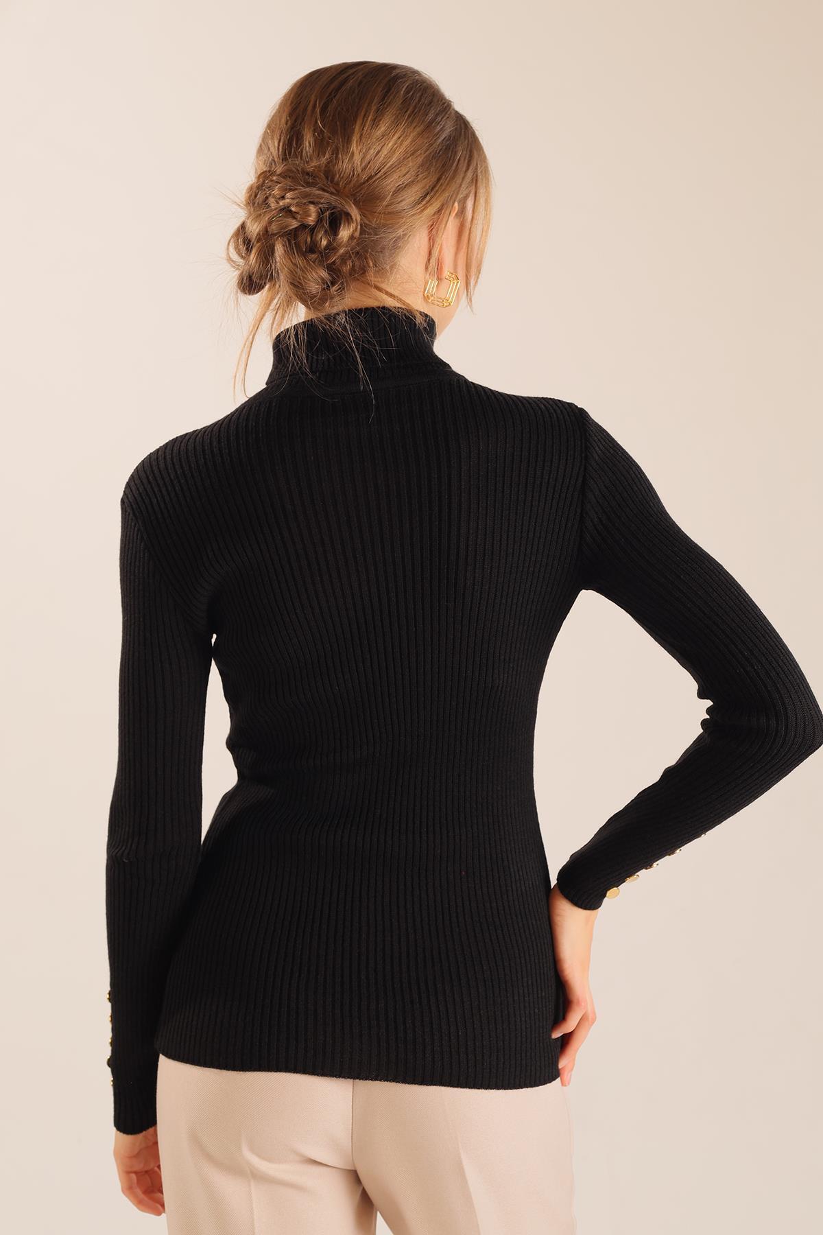 Siyah Kol Düğme Detay Fitilli Kazak 006