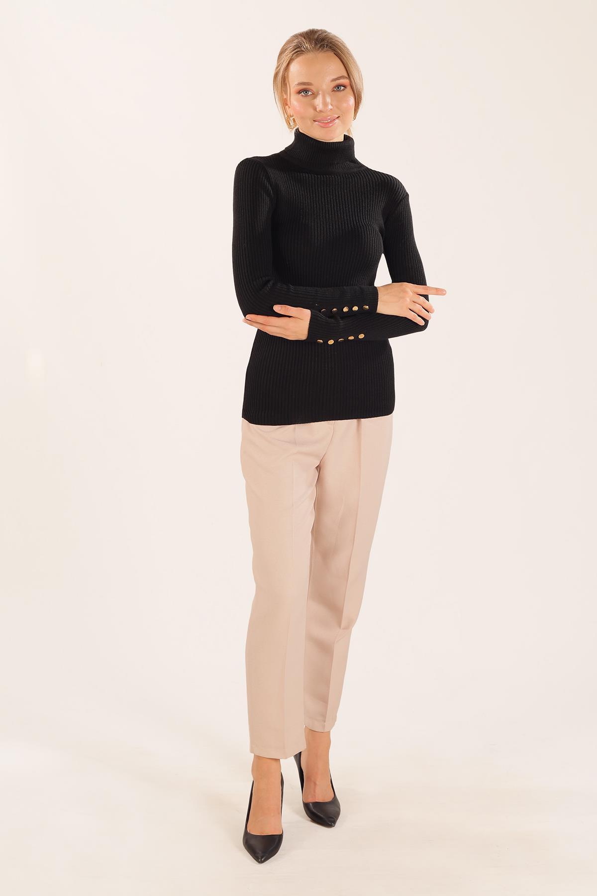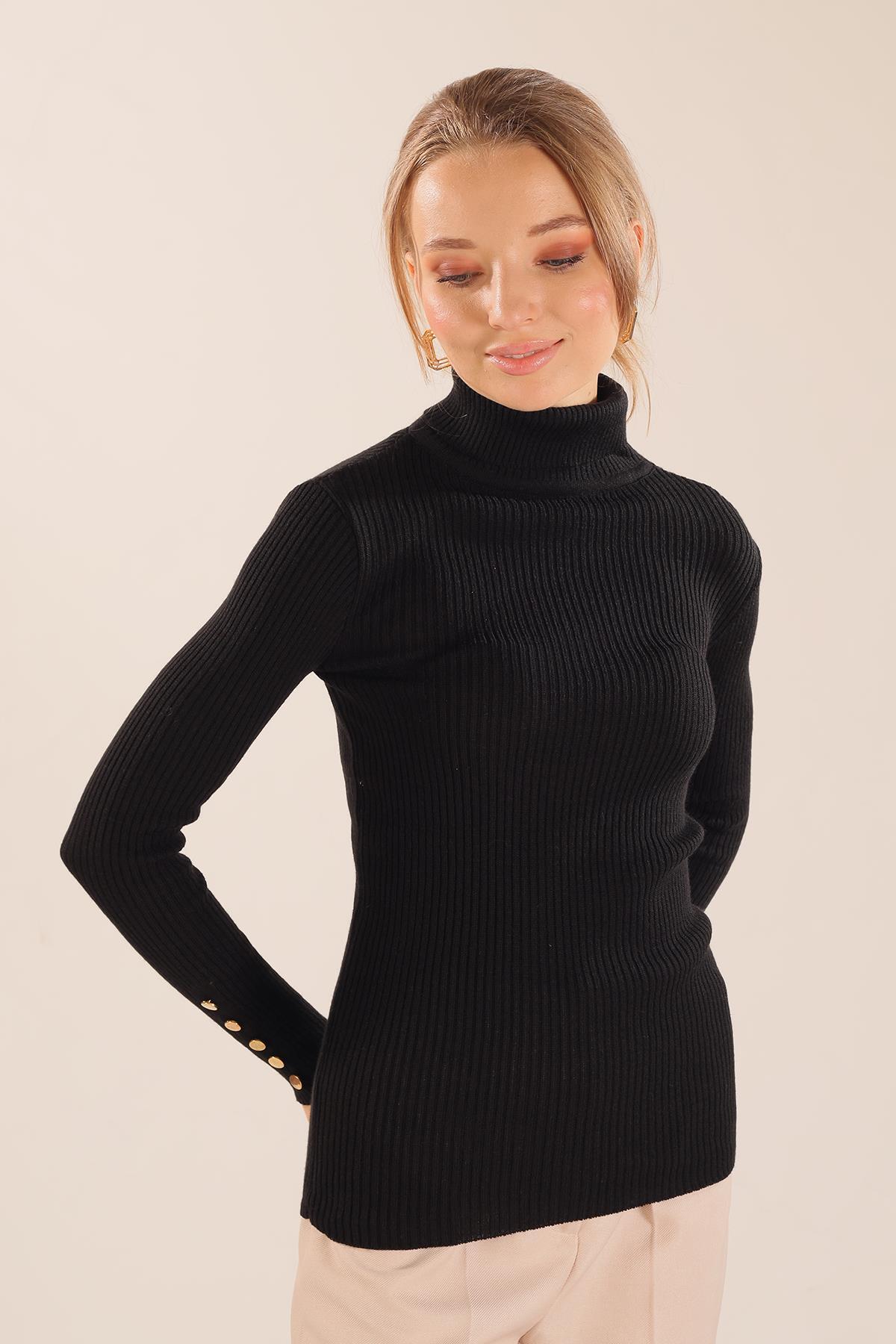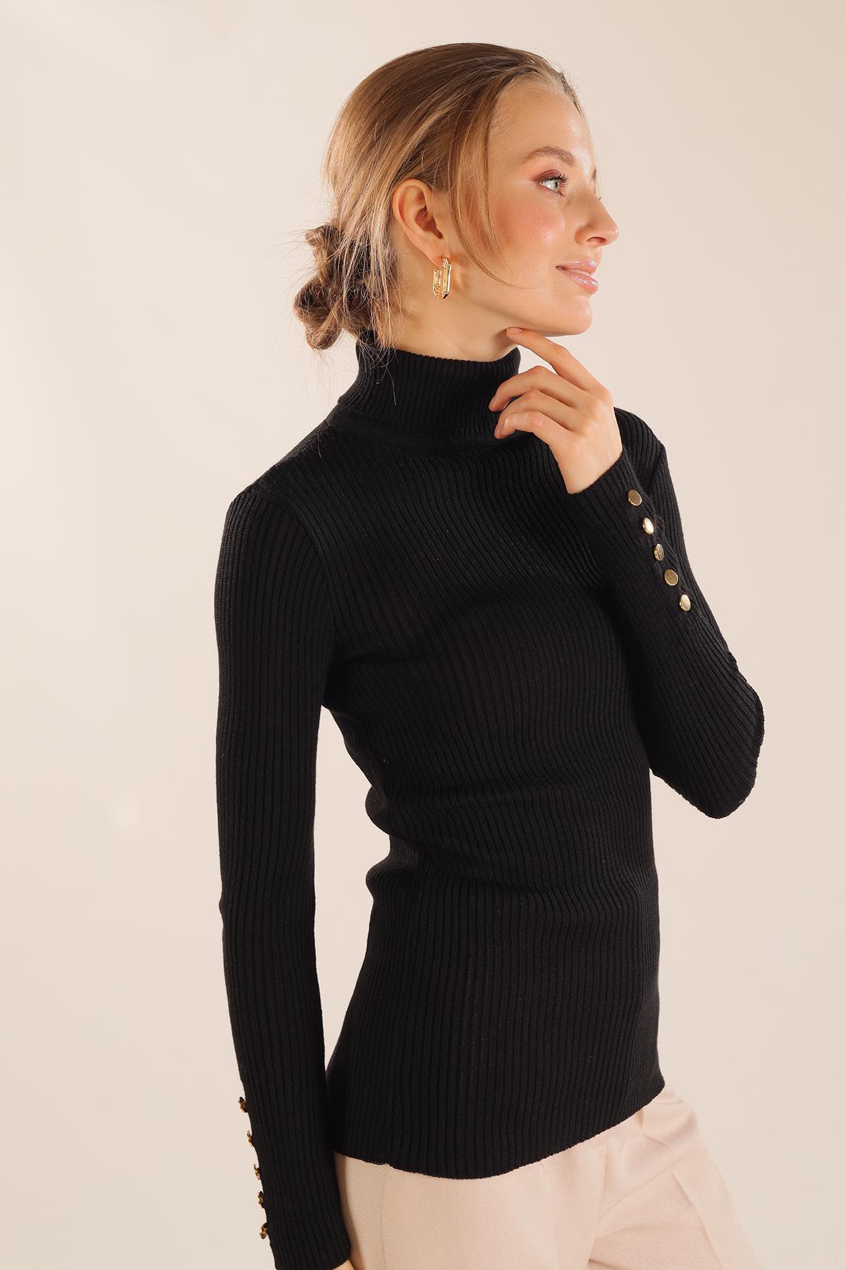 Siyah Kol Düğme Detay Fitilli Kazak 006