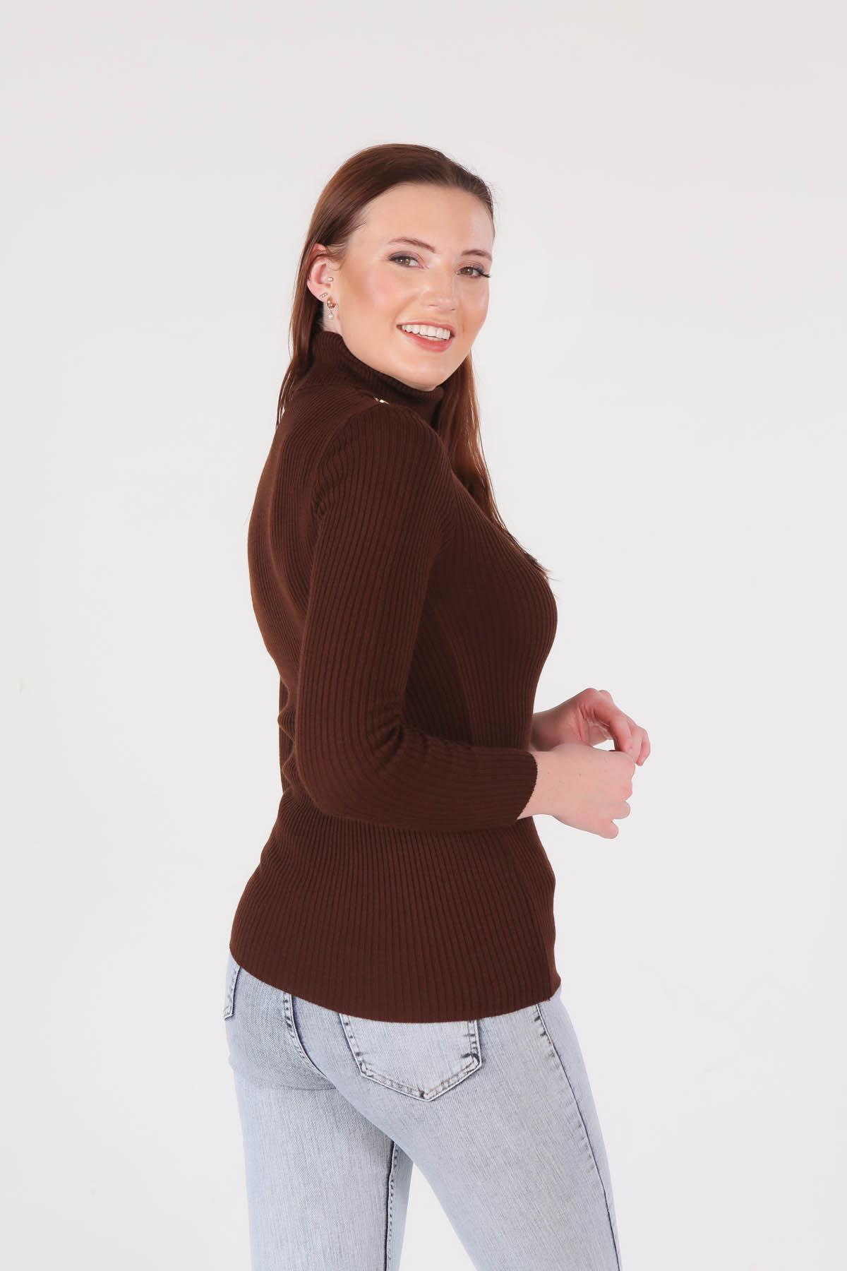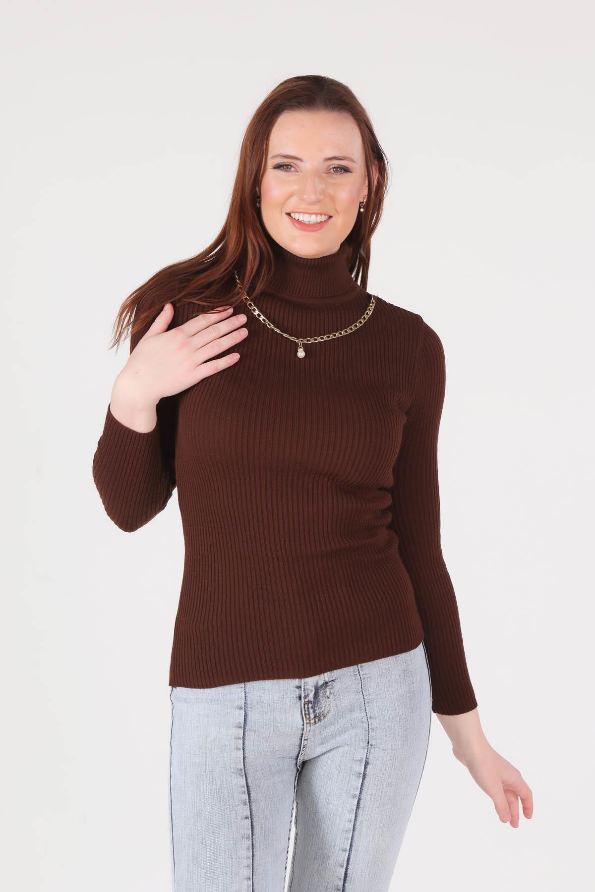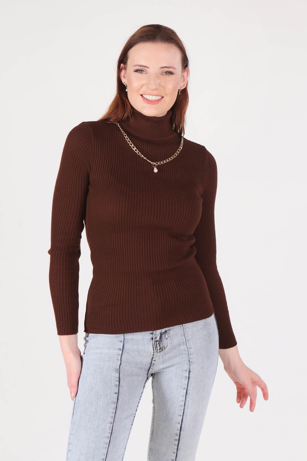 Acı Kahve Balıkçı Yaka Kolye Detay Kazak 009