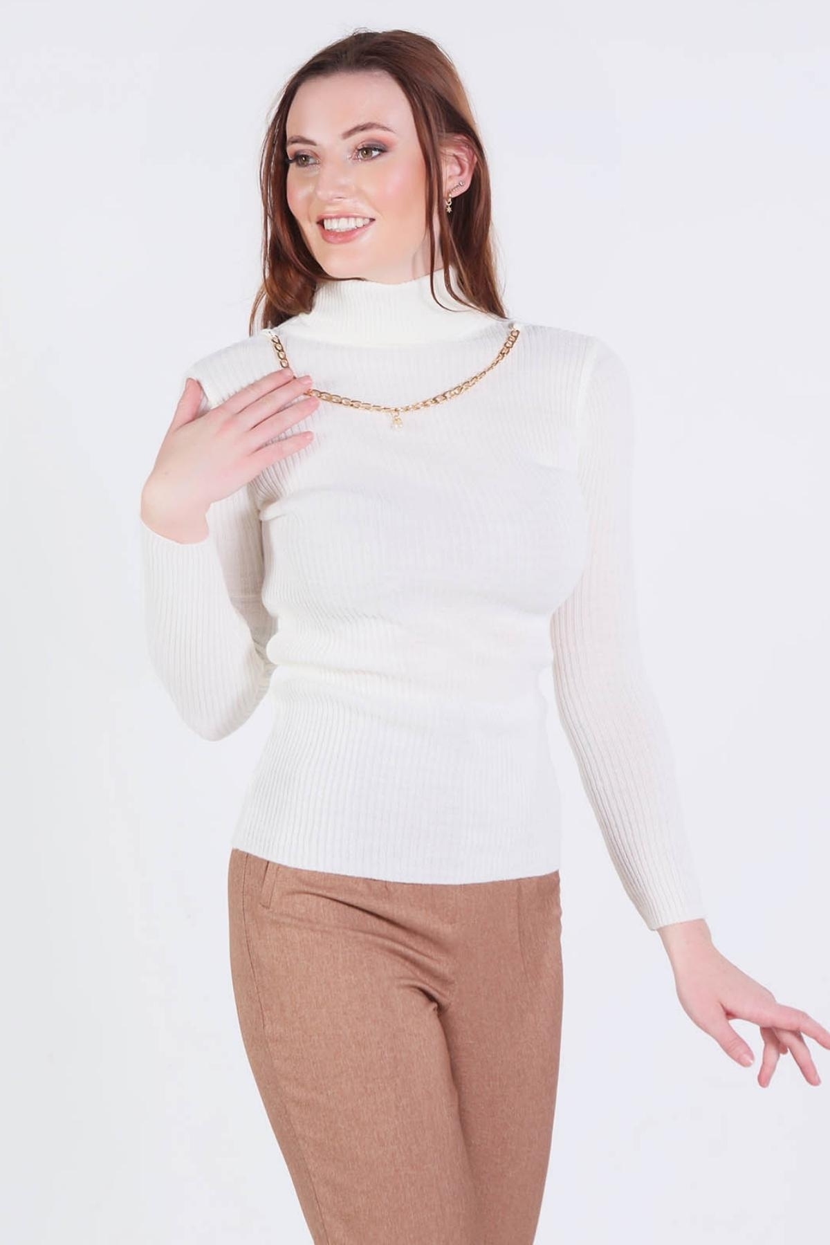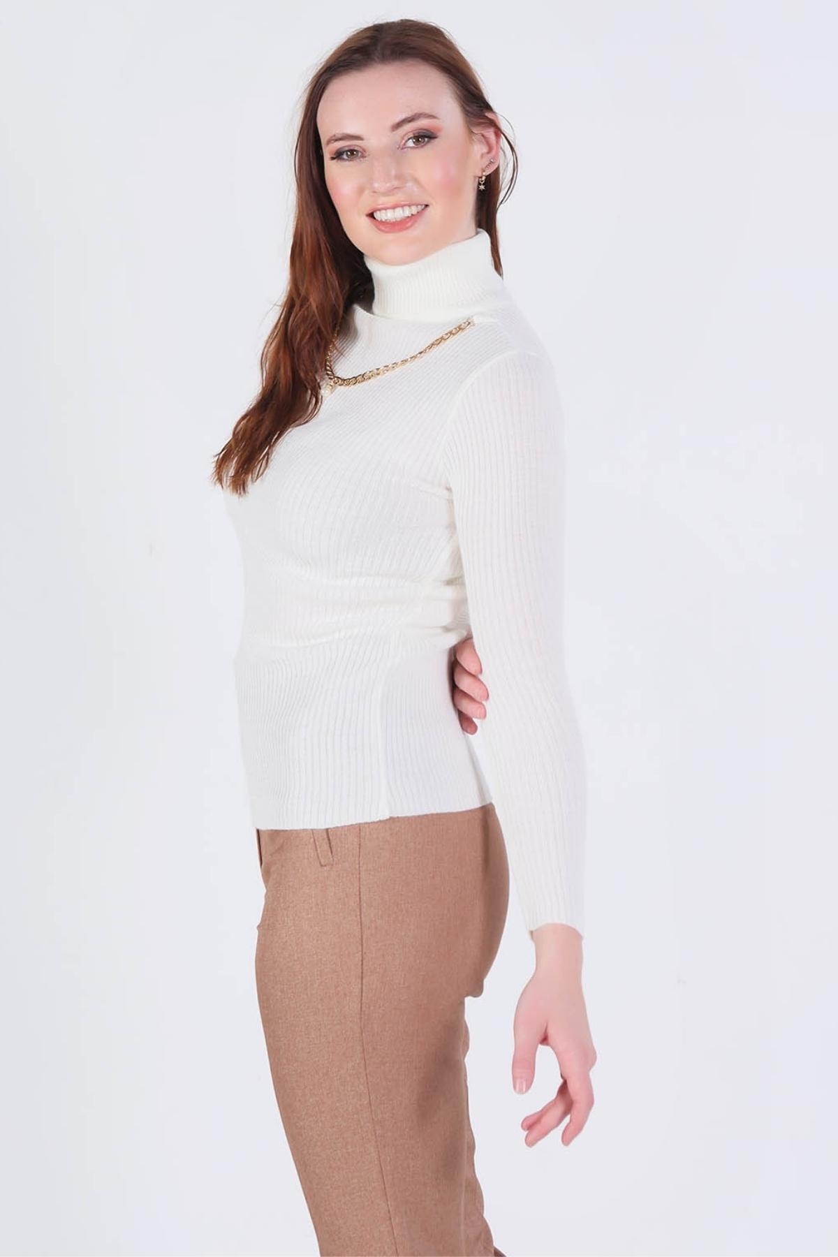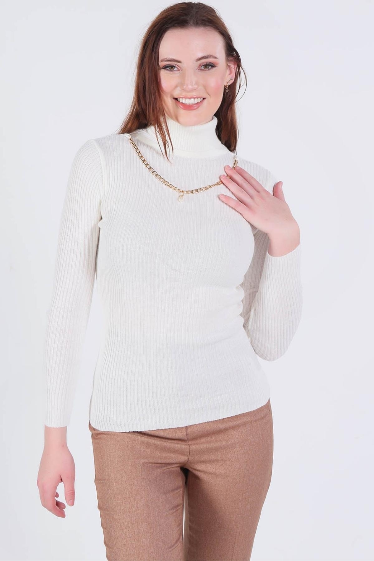 Kemik Balıkçı Yaka Kolye Detay Kazak 009
