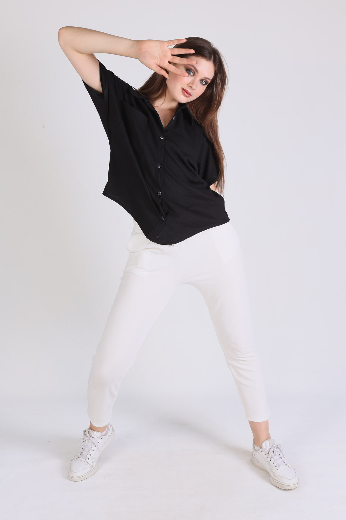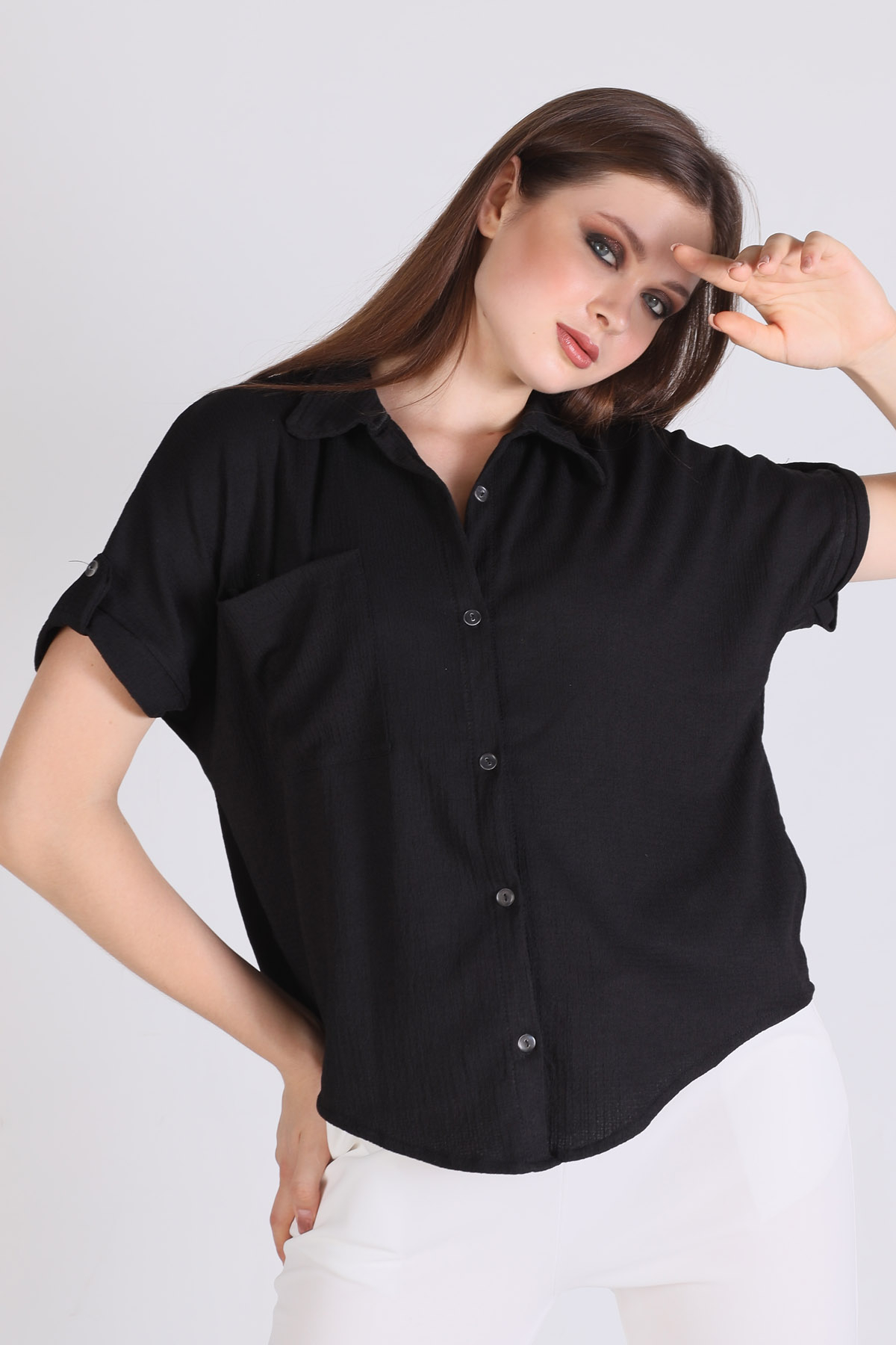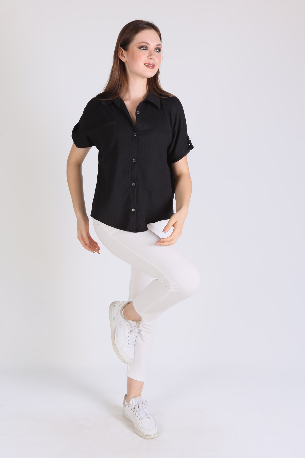 Siyah Kol Detay Gömlek 0090
