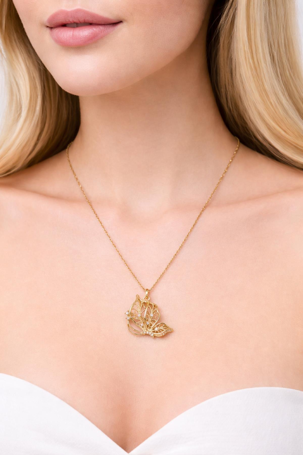 Gold Kelebek Figürlü Kolye 0104