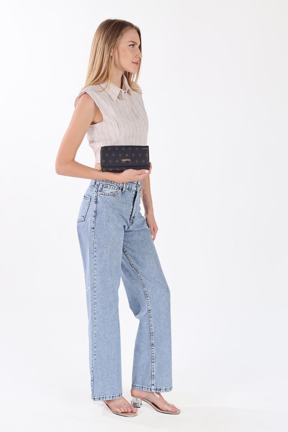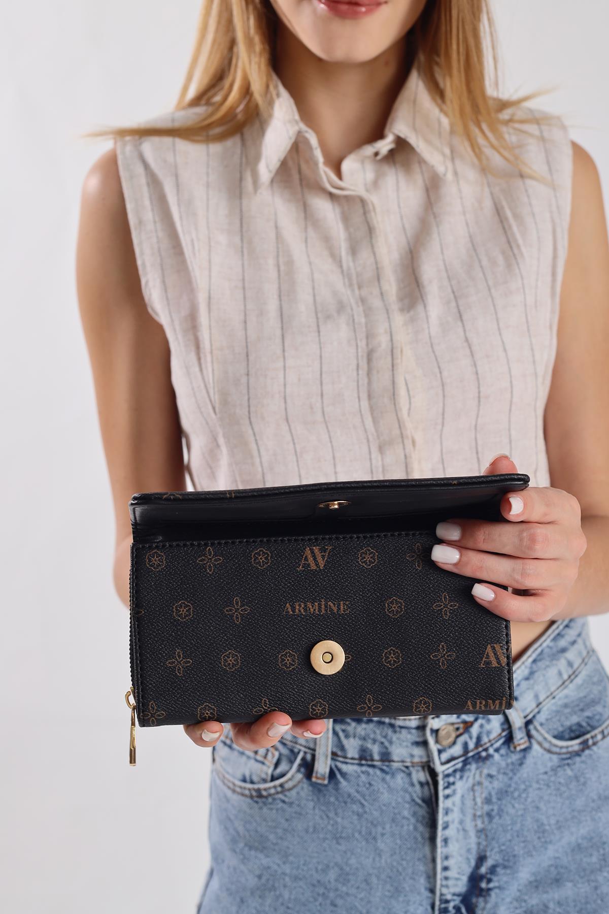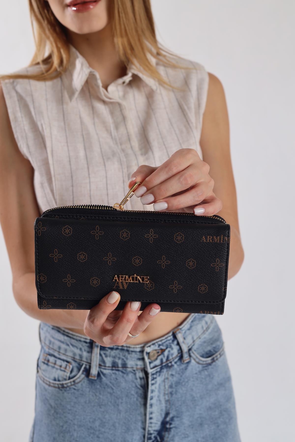 Siyah Baskılı Fermuarlı Cüzdan 013