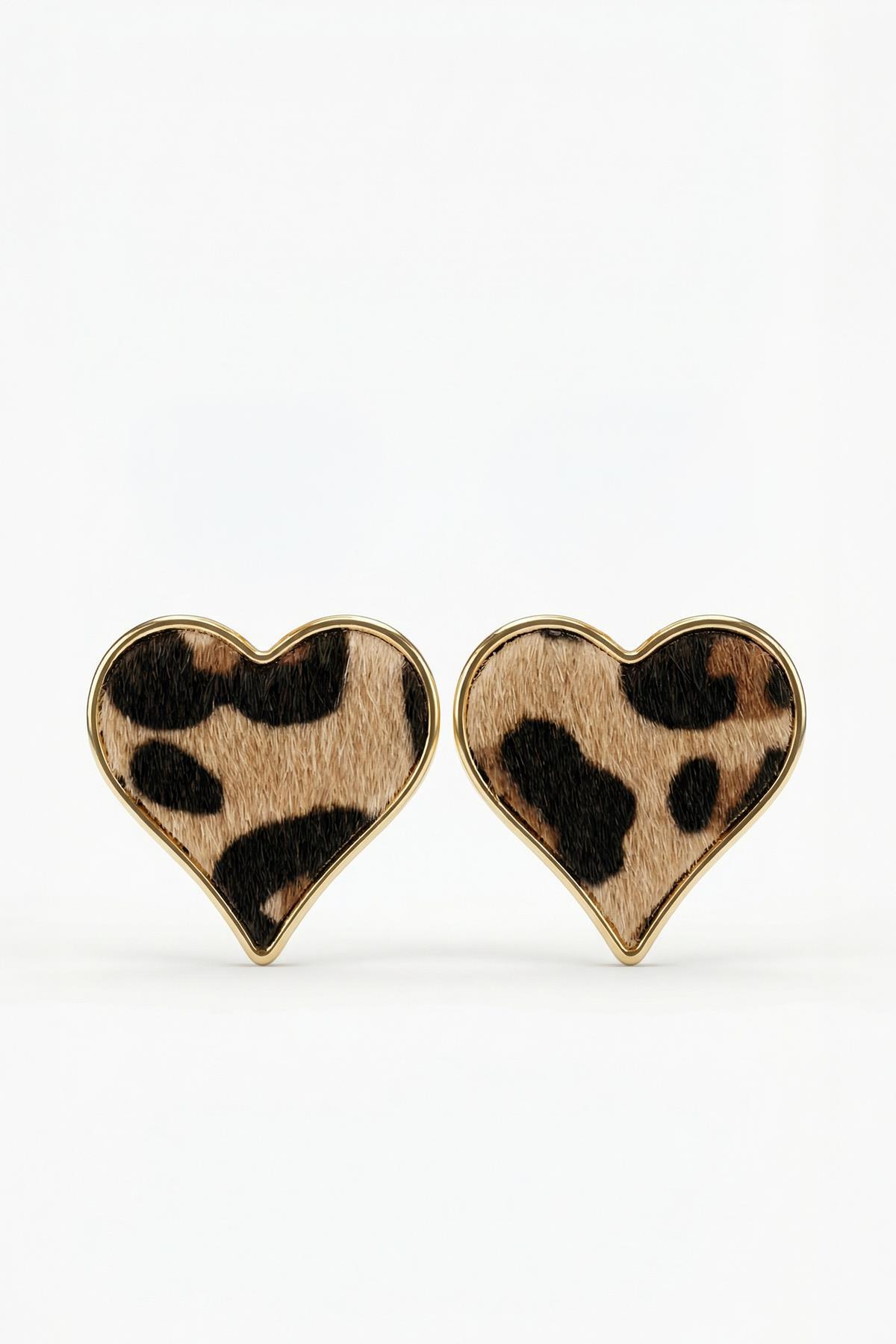 Kahve Leopar Desen Kalp Küpe 0139
