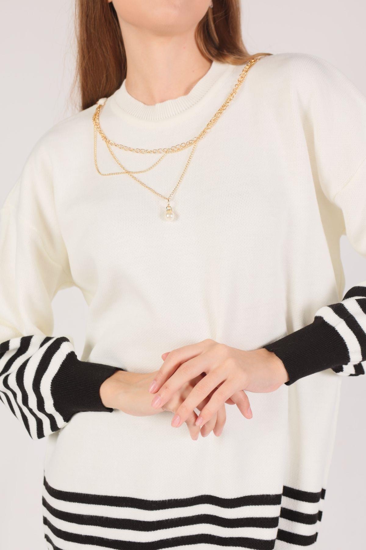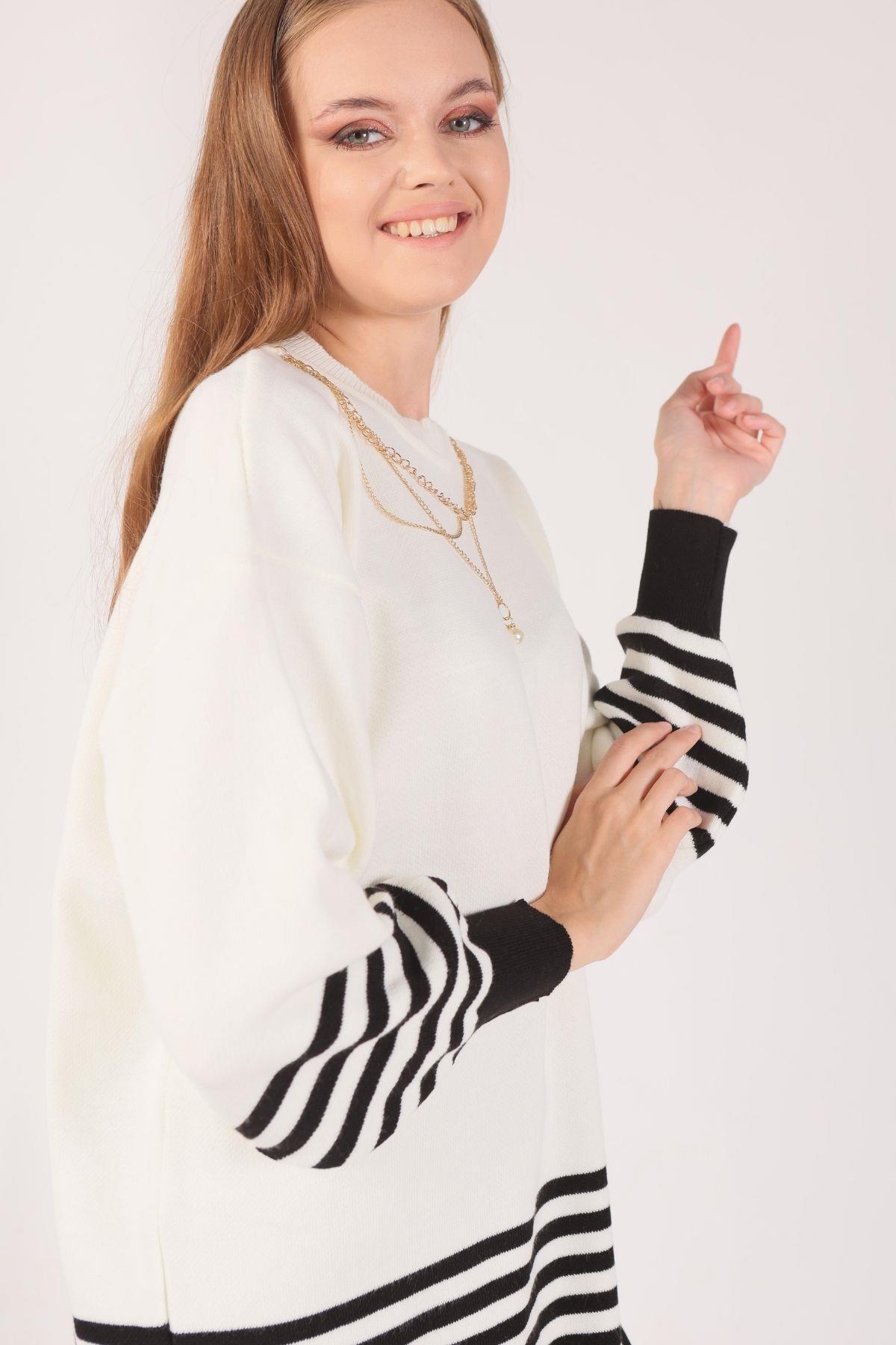 Gri - Ekru Yıldız Baskılı Oversize Kazak 2474 - RAYS Gri - Ekru Yıldız Baskılı Oversize Kazak 2474 - RAYS (1)
