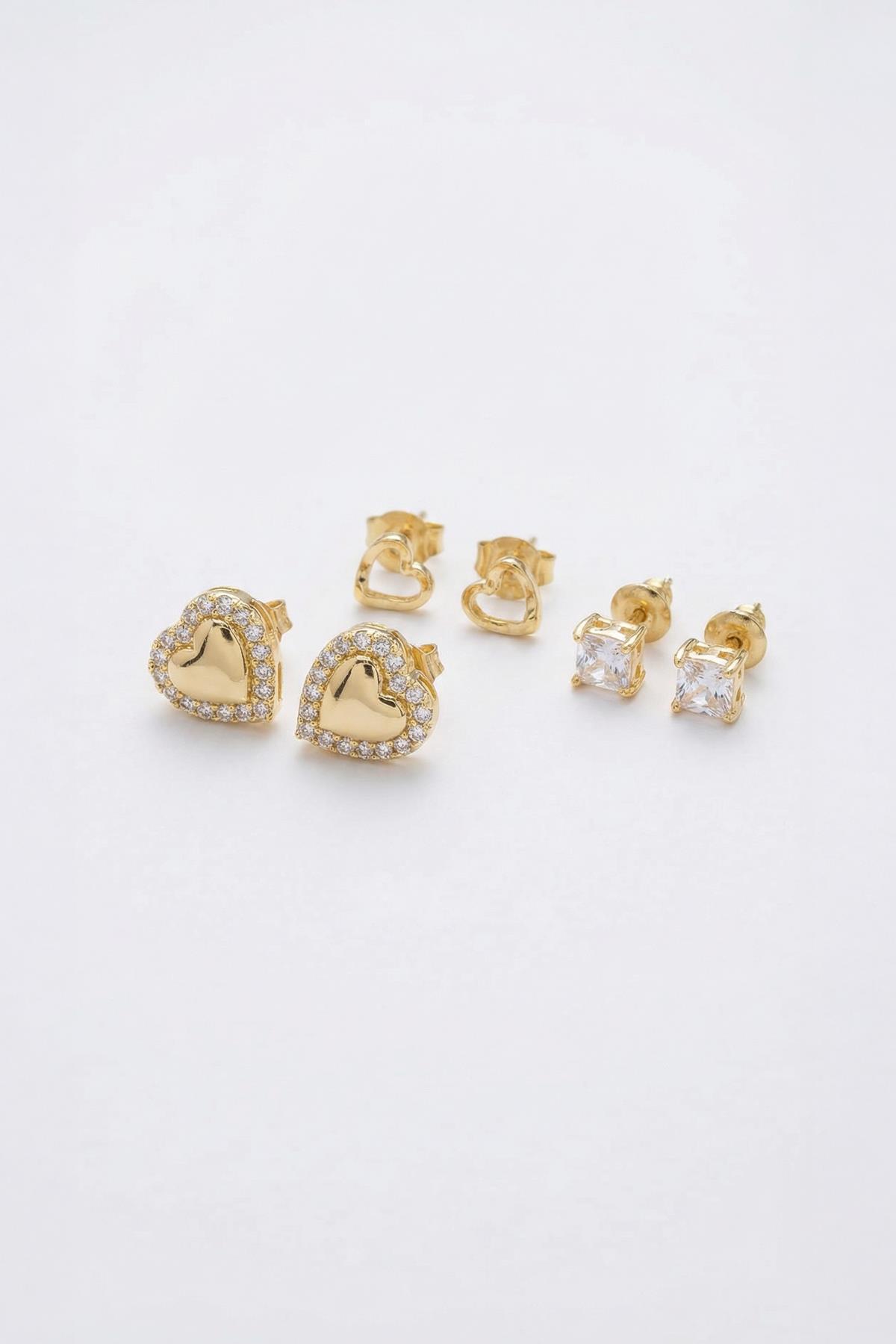 Gold Kalpli Çoklu Küpe Seti 0144
