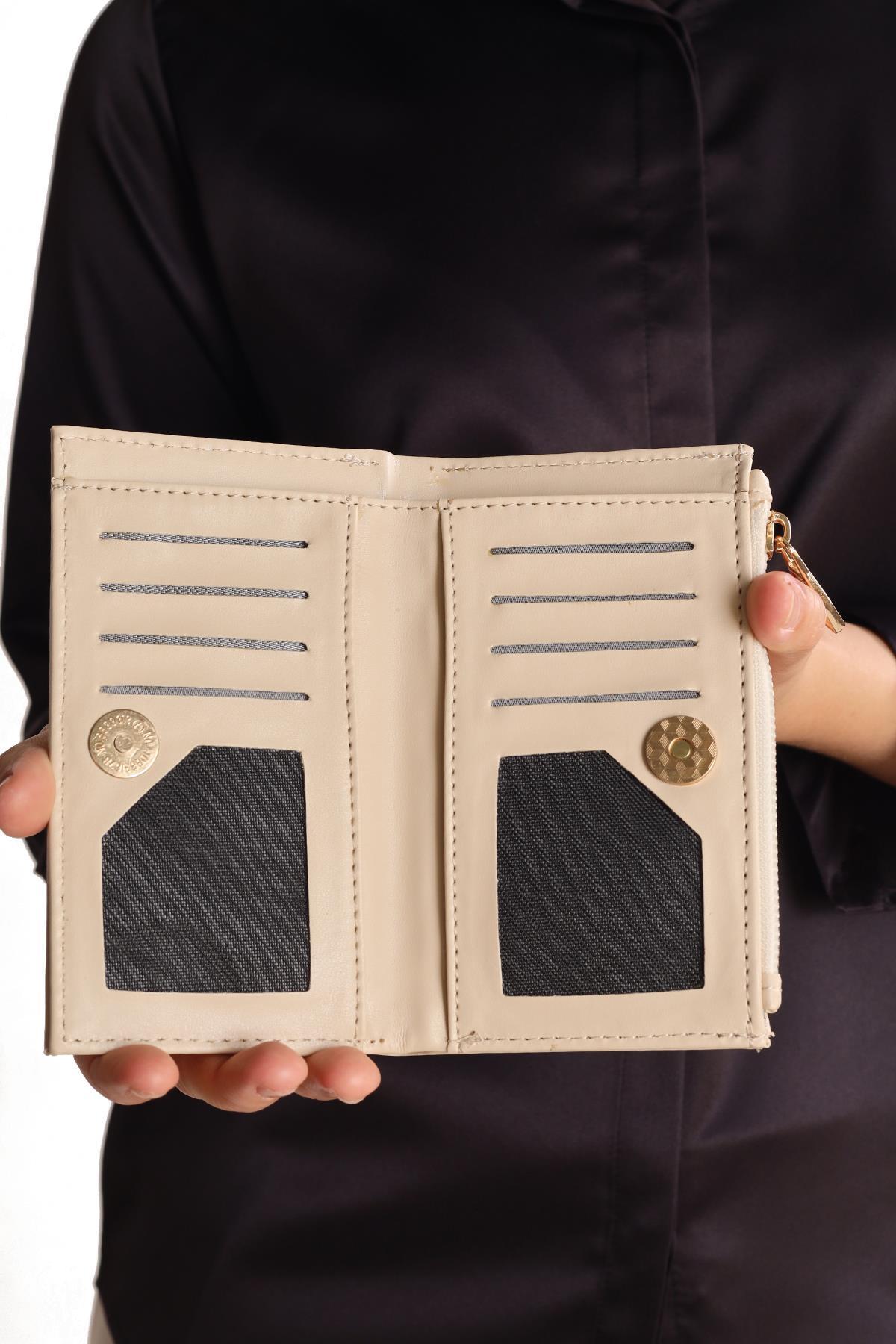 023 Çıtçıtlı Fermuarlı Cüzdan Krem