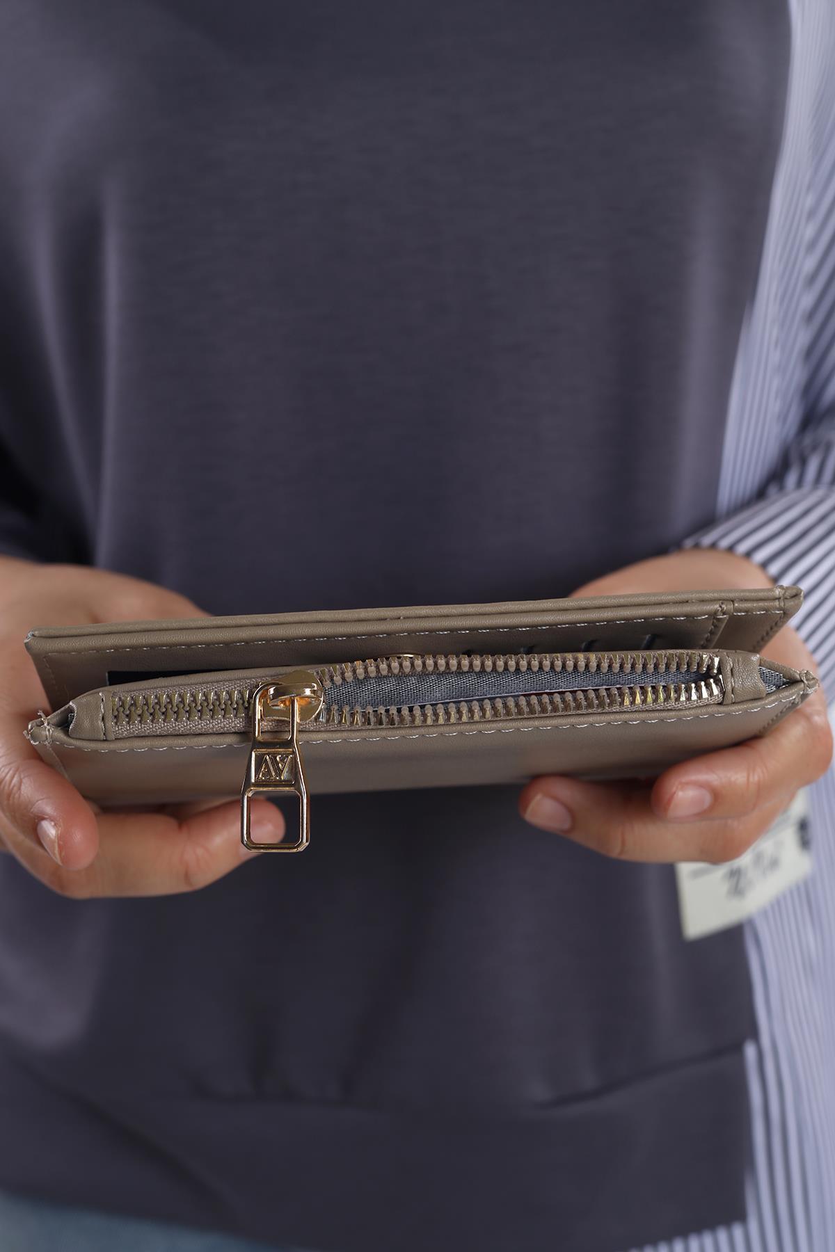023 Çıtçıtlı Fermuarlı Cüzdan Vizon