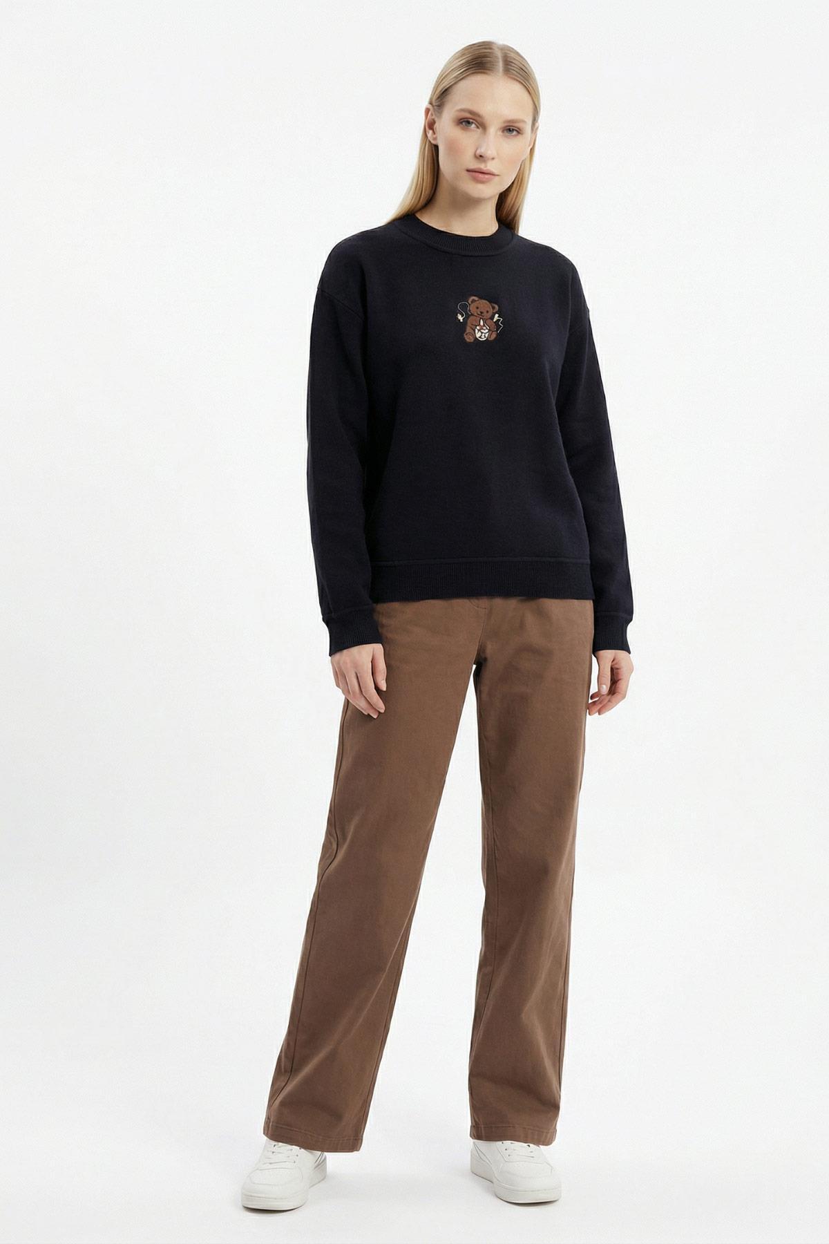 024 Ayıcık Nakış Detay Sweat Siyah