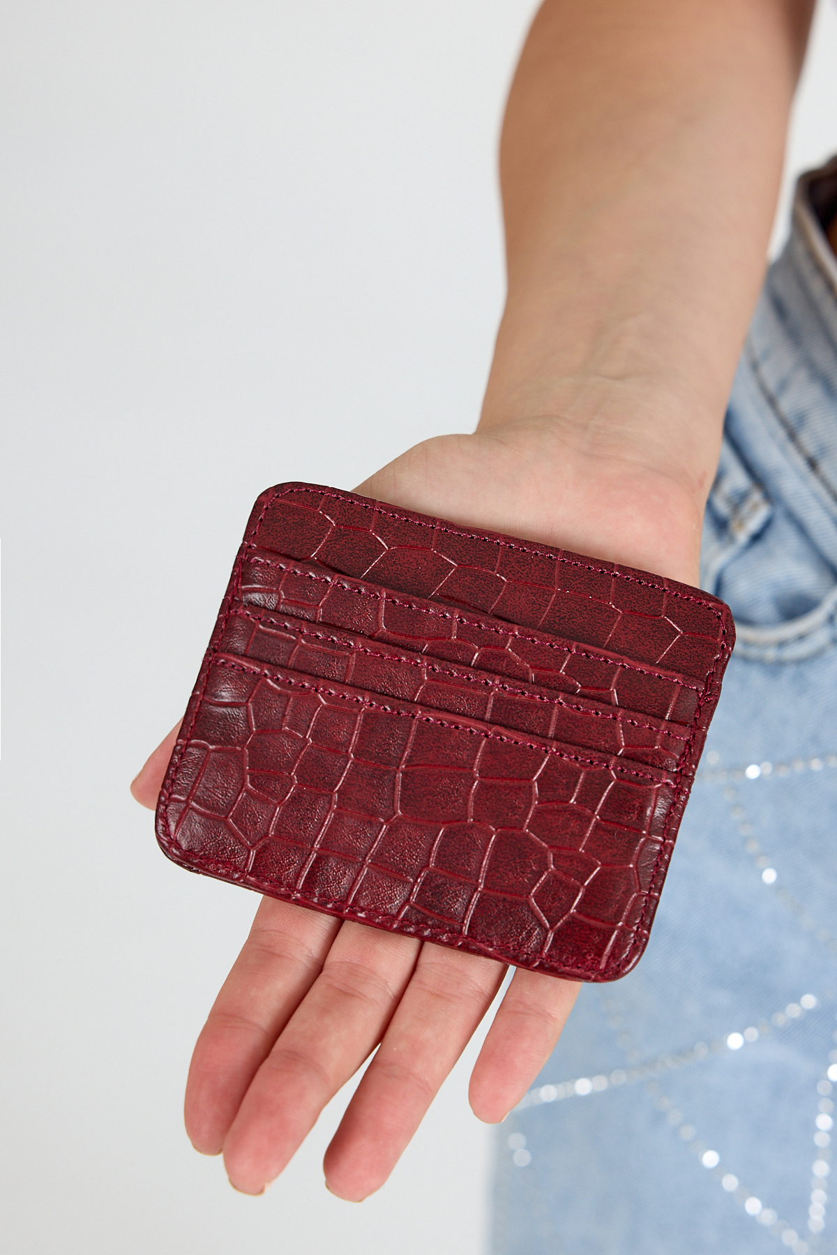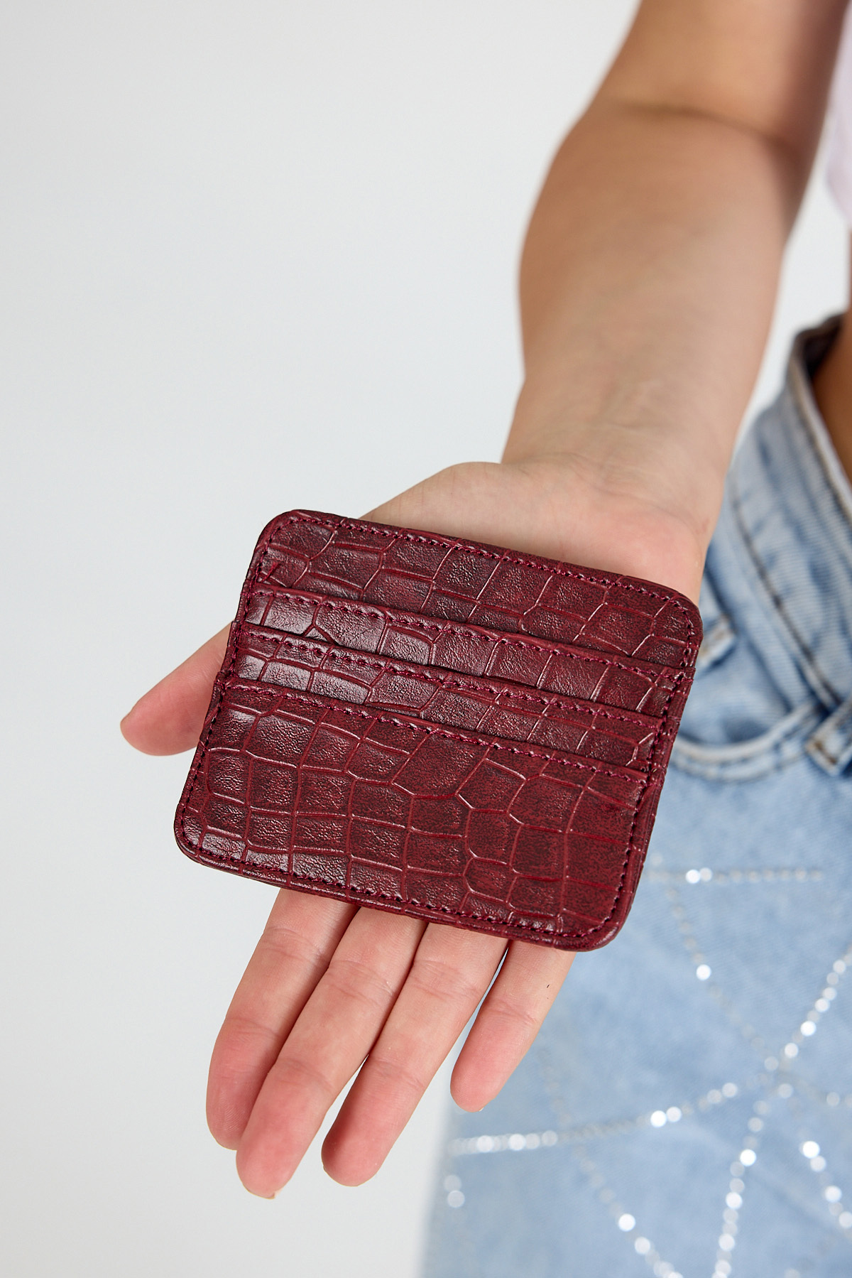 Bordo Deri Görünümlü Kartlık Cüzdan 028