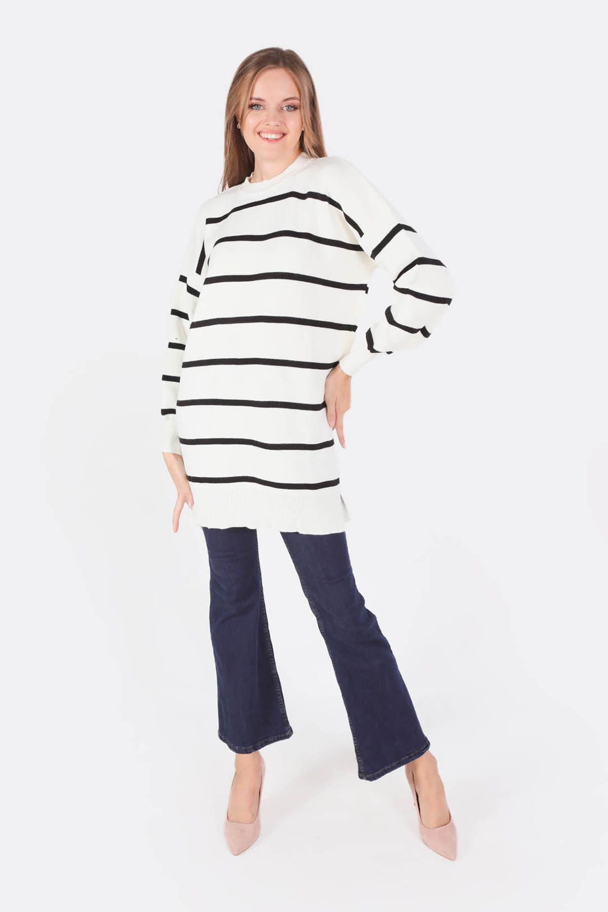 Gri - Ekru Yıldız Baskılı Oversize Kazak 2474 - RAYS Gri - Ekru Yıldız Baskılı Oversize Kazak 2474 - RAYS (1)