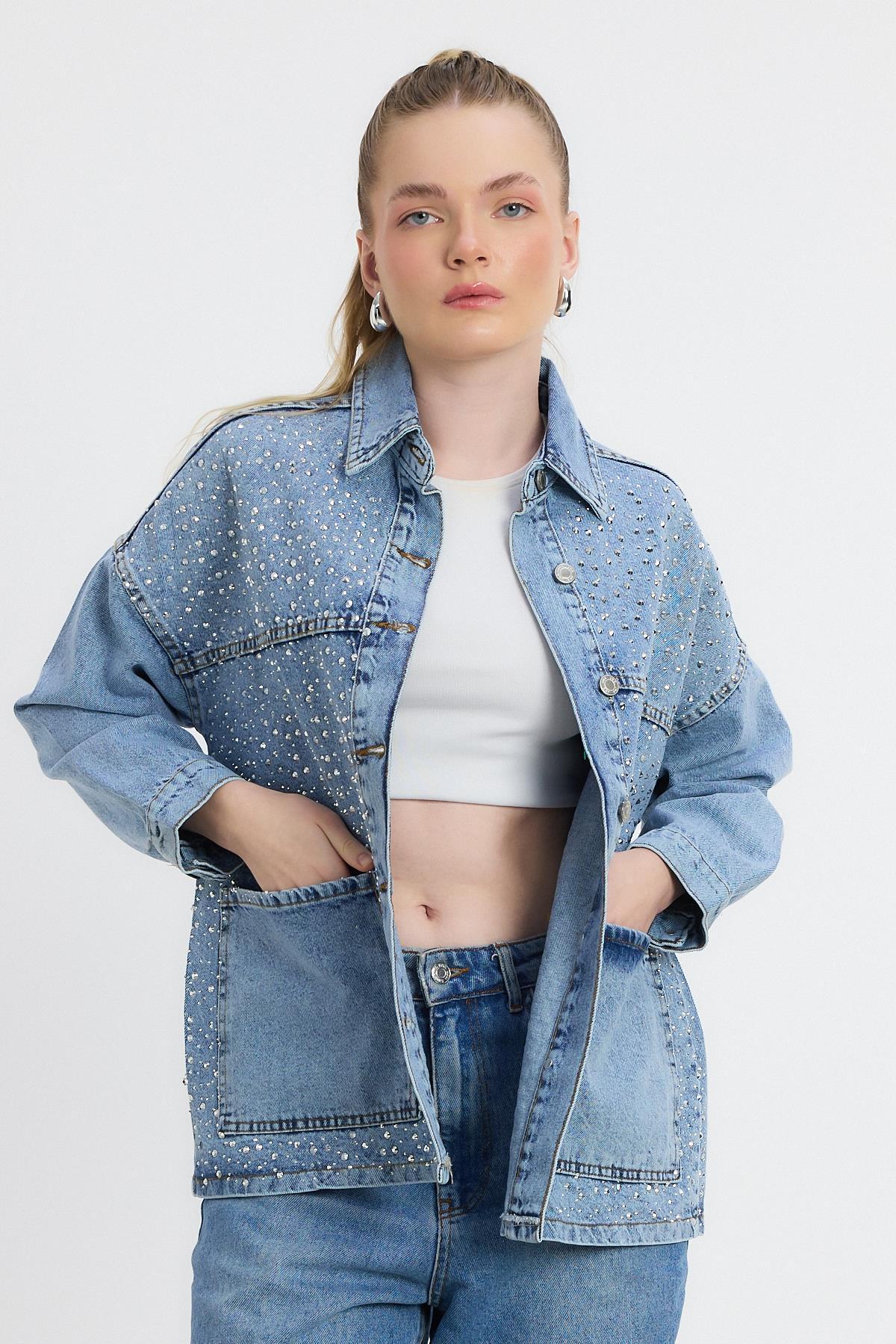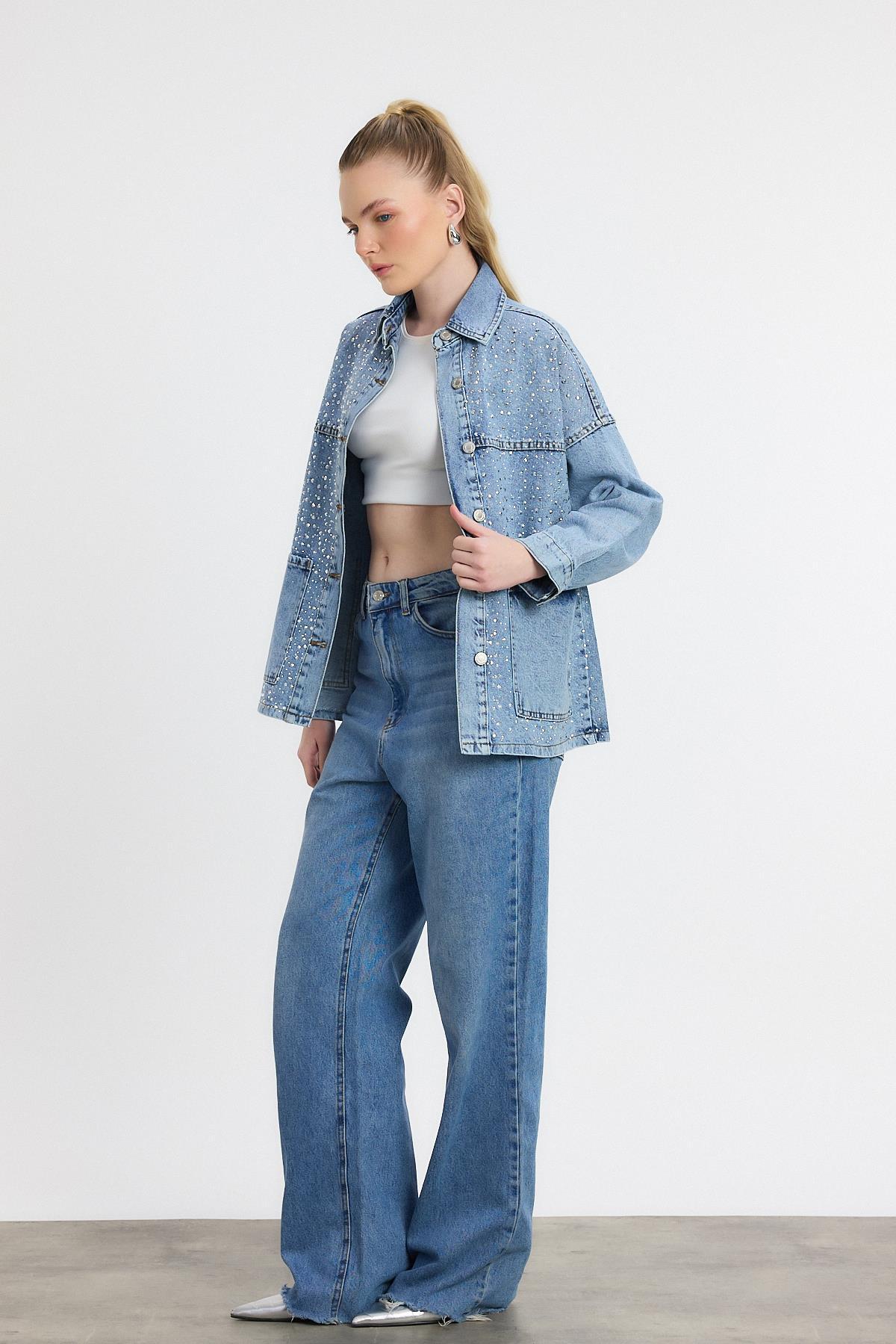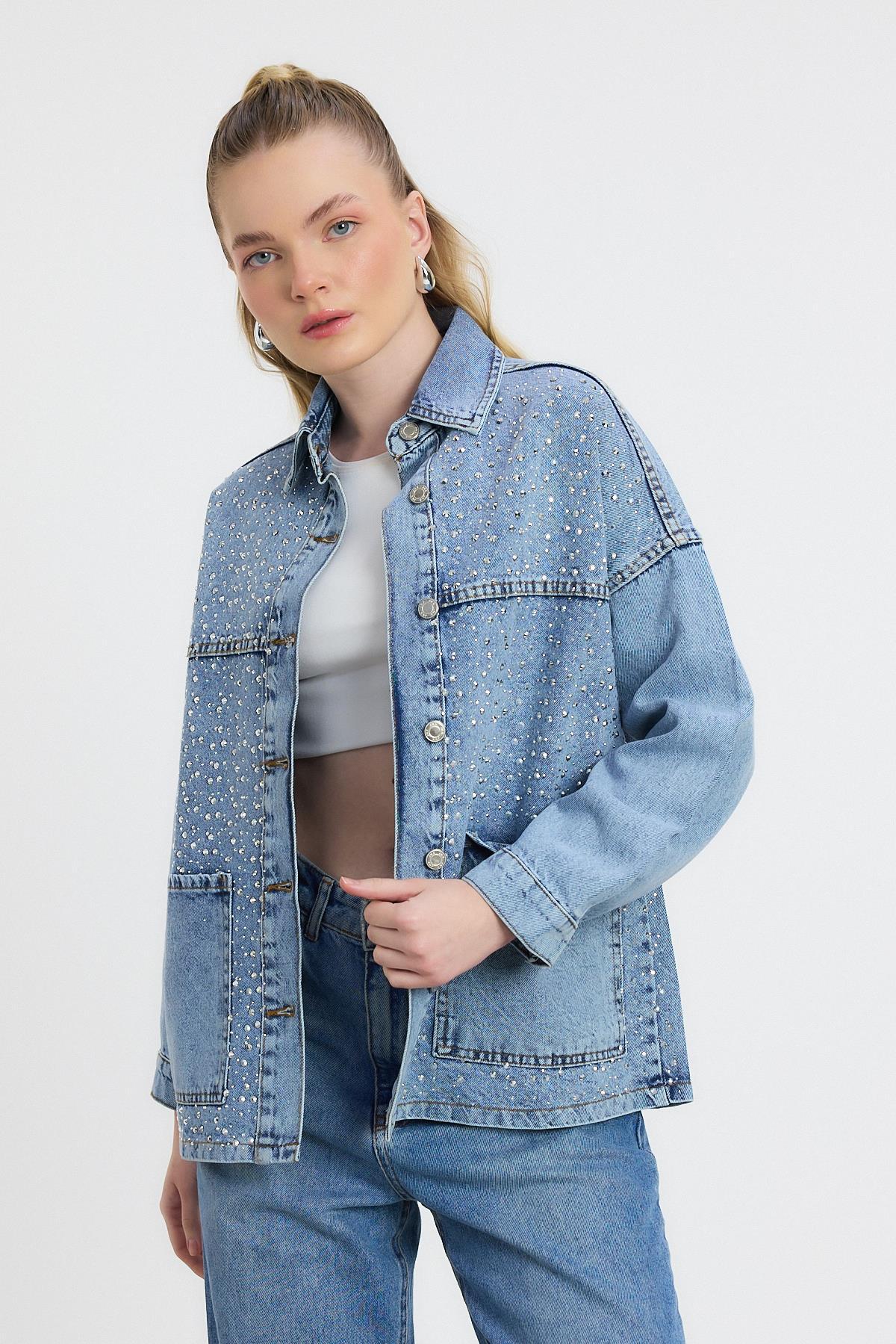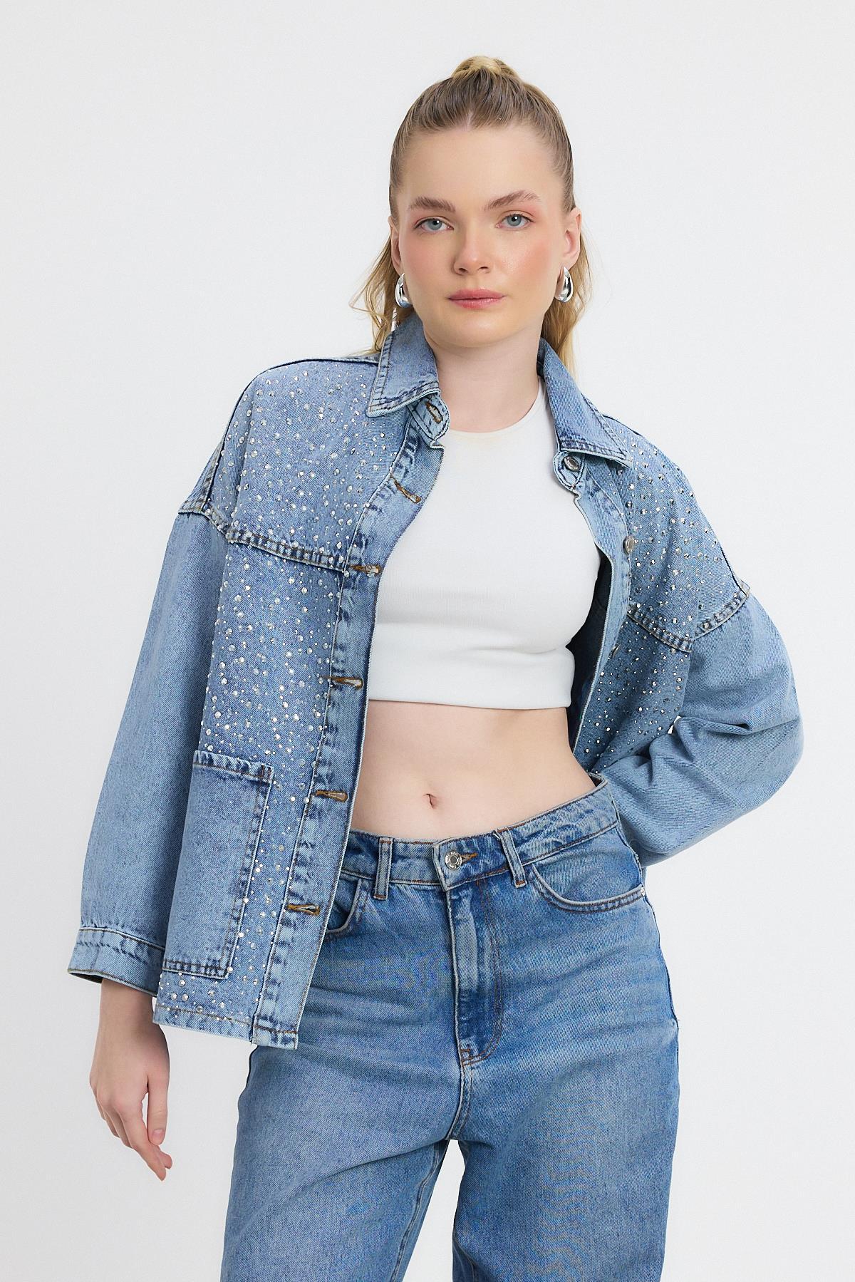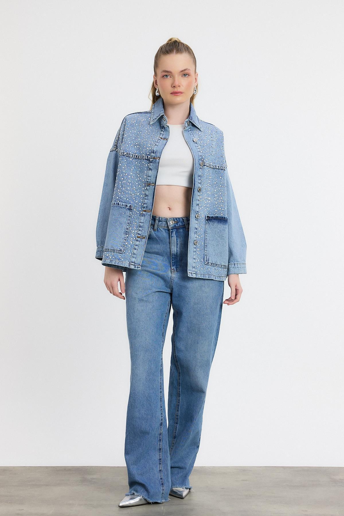 Buzkar Taş Detay Jean Ceket 0404
