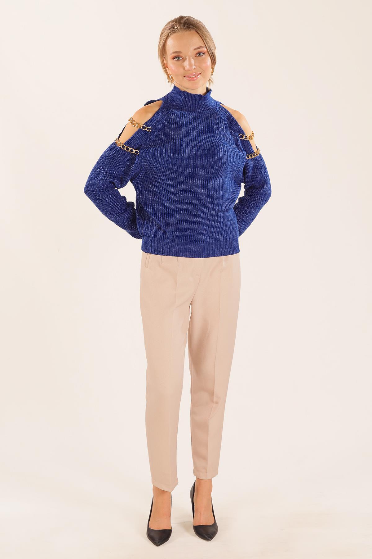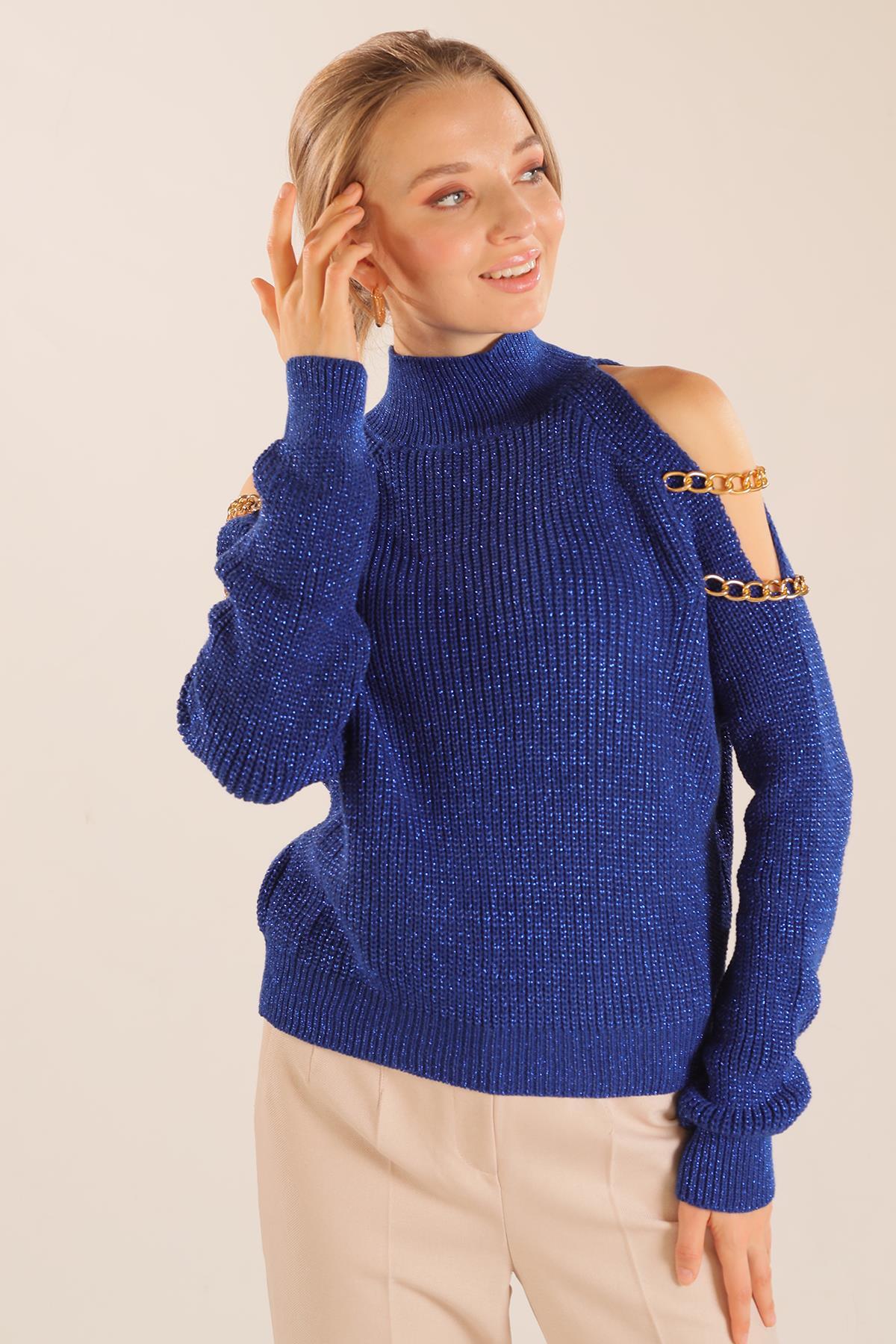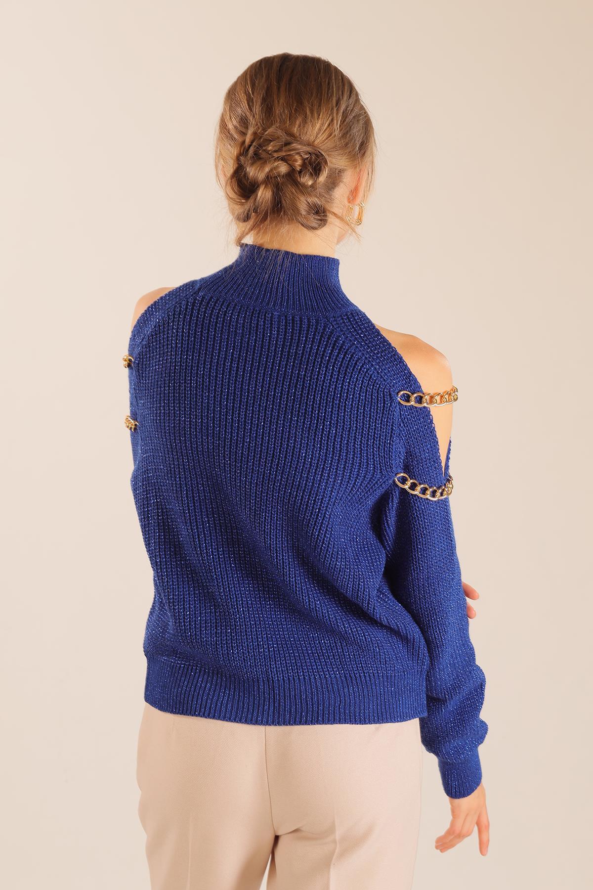 Saks Omuz Dekolte Zincirli Kazak 057