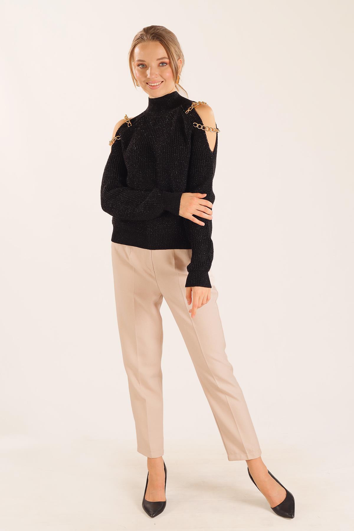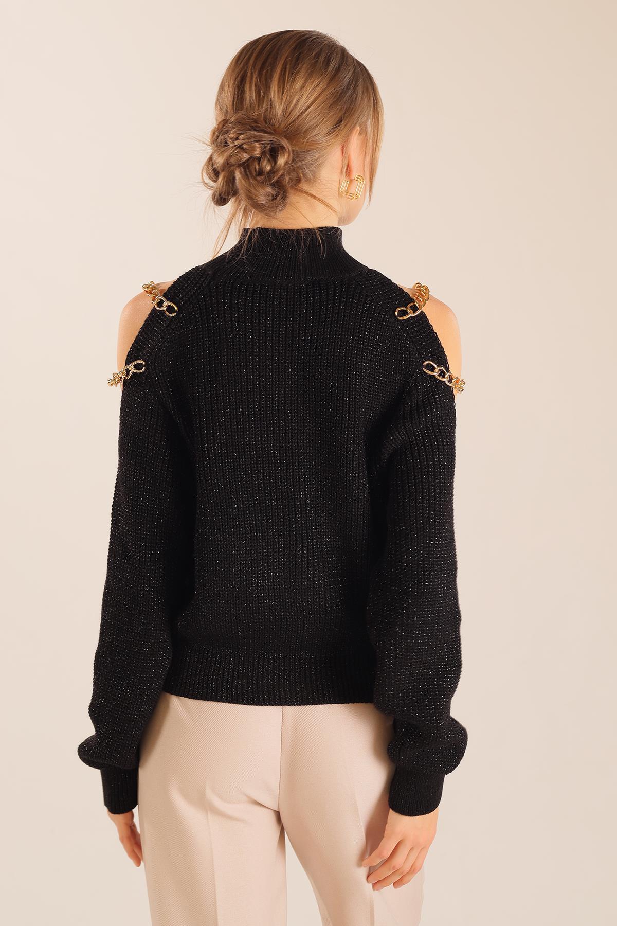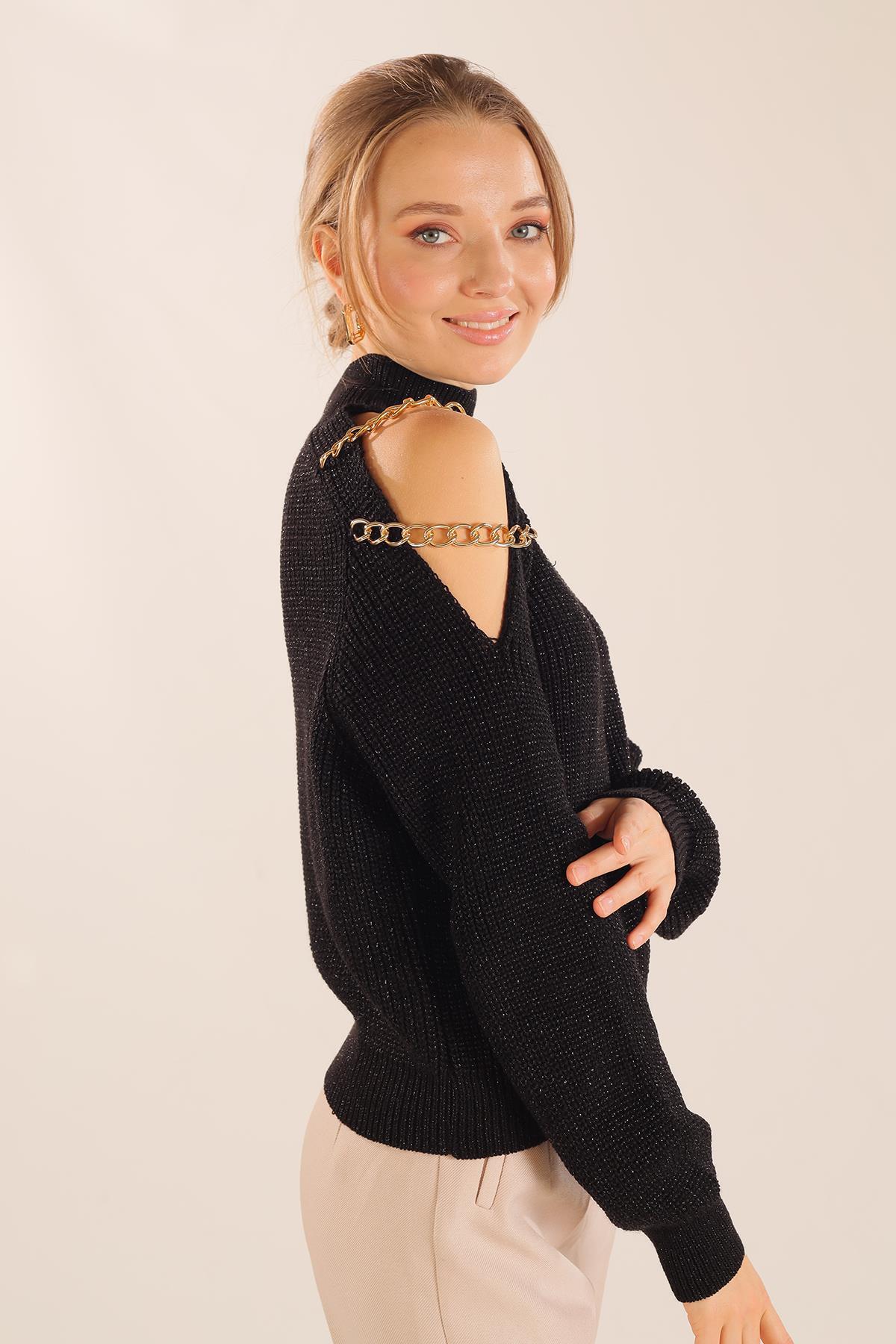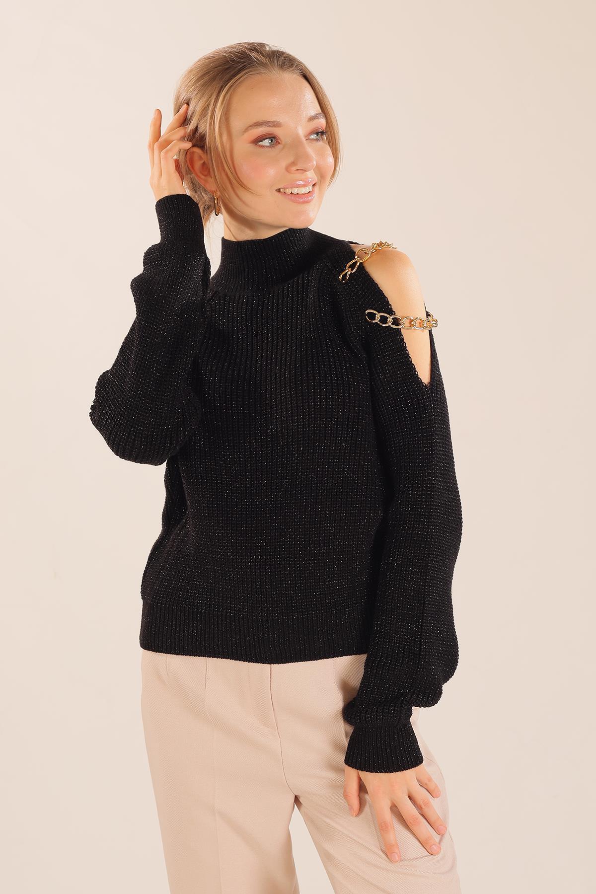 Siyah Omuz Dekolte Zincirli Kazak 057