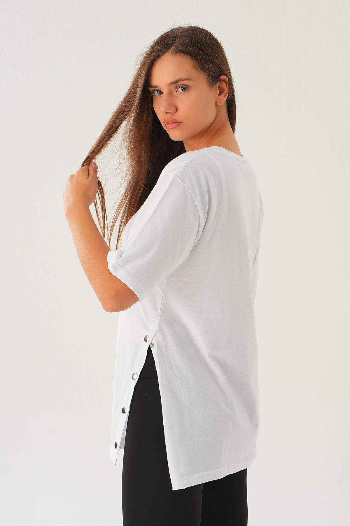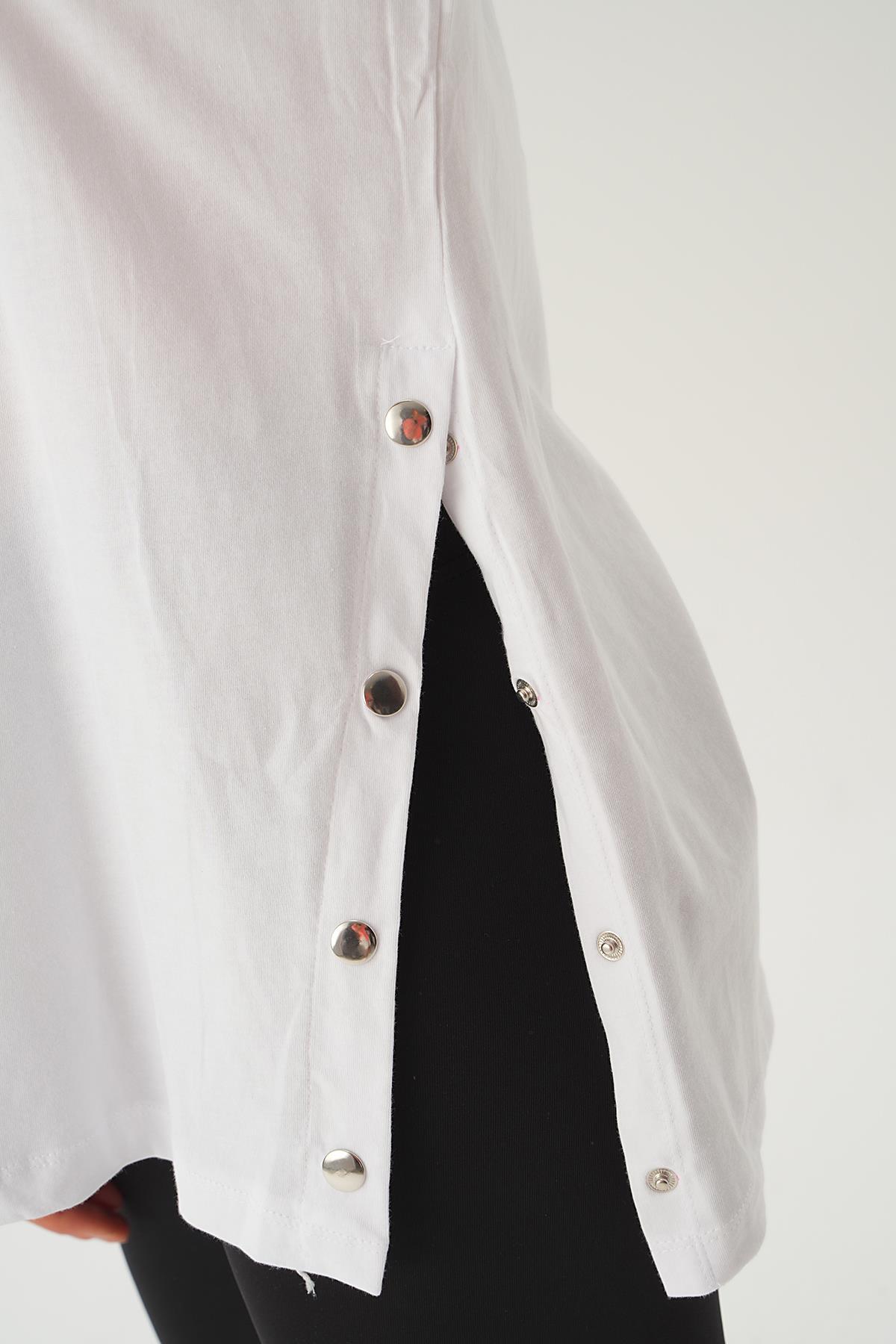 Beyaz Yanları Çıtçıtlı Süprem Tişört 066