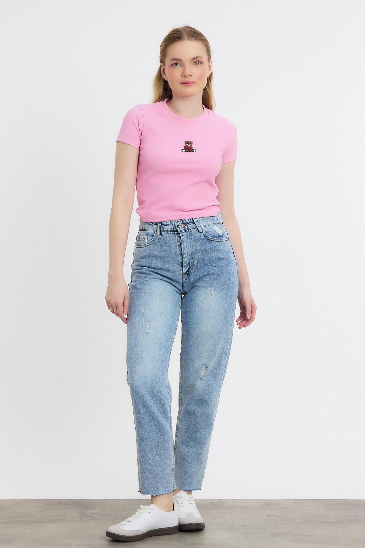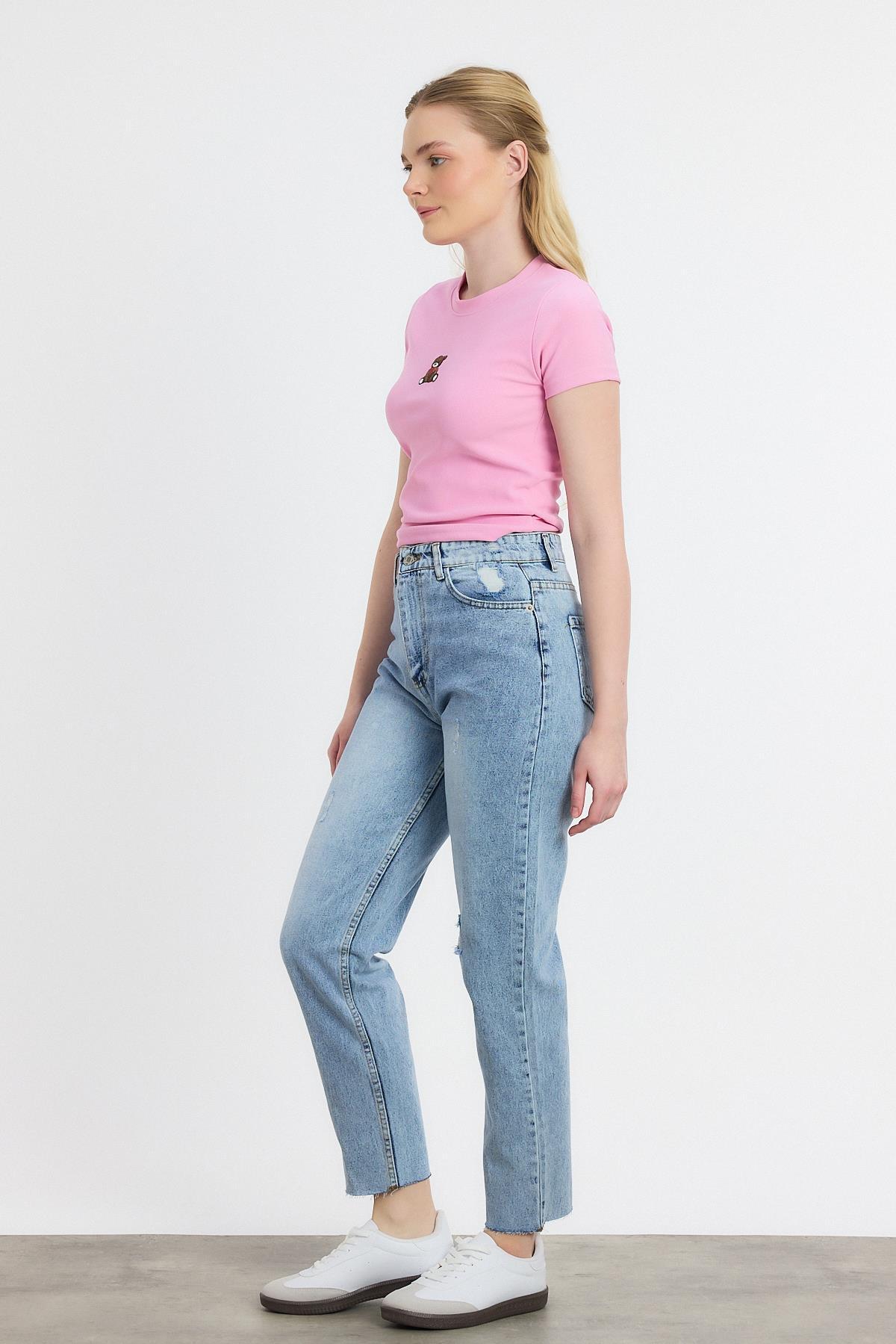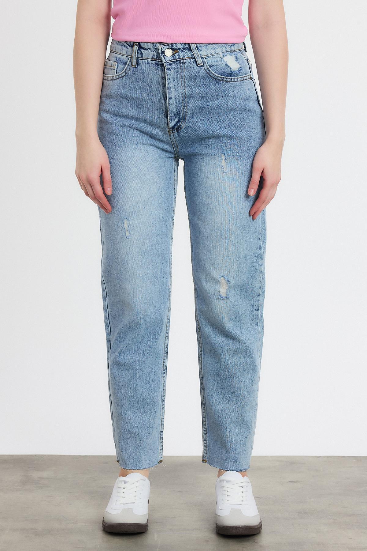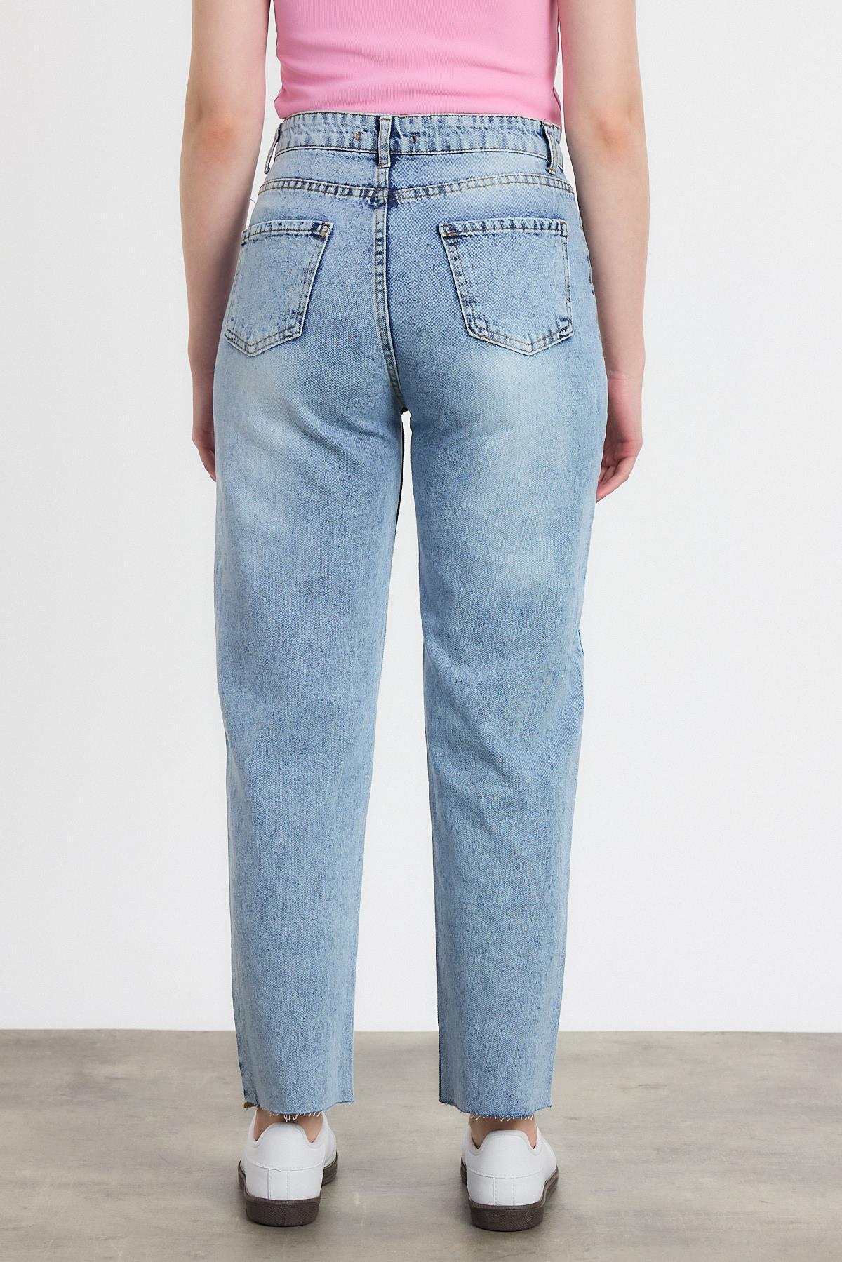 Koyu Mavi Yırtık Detay Mom Jean 0703