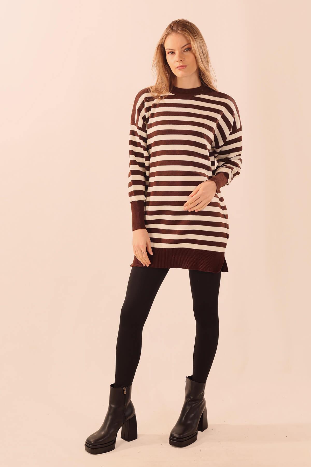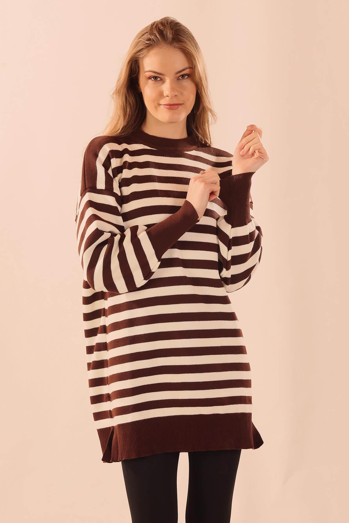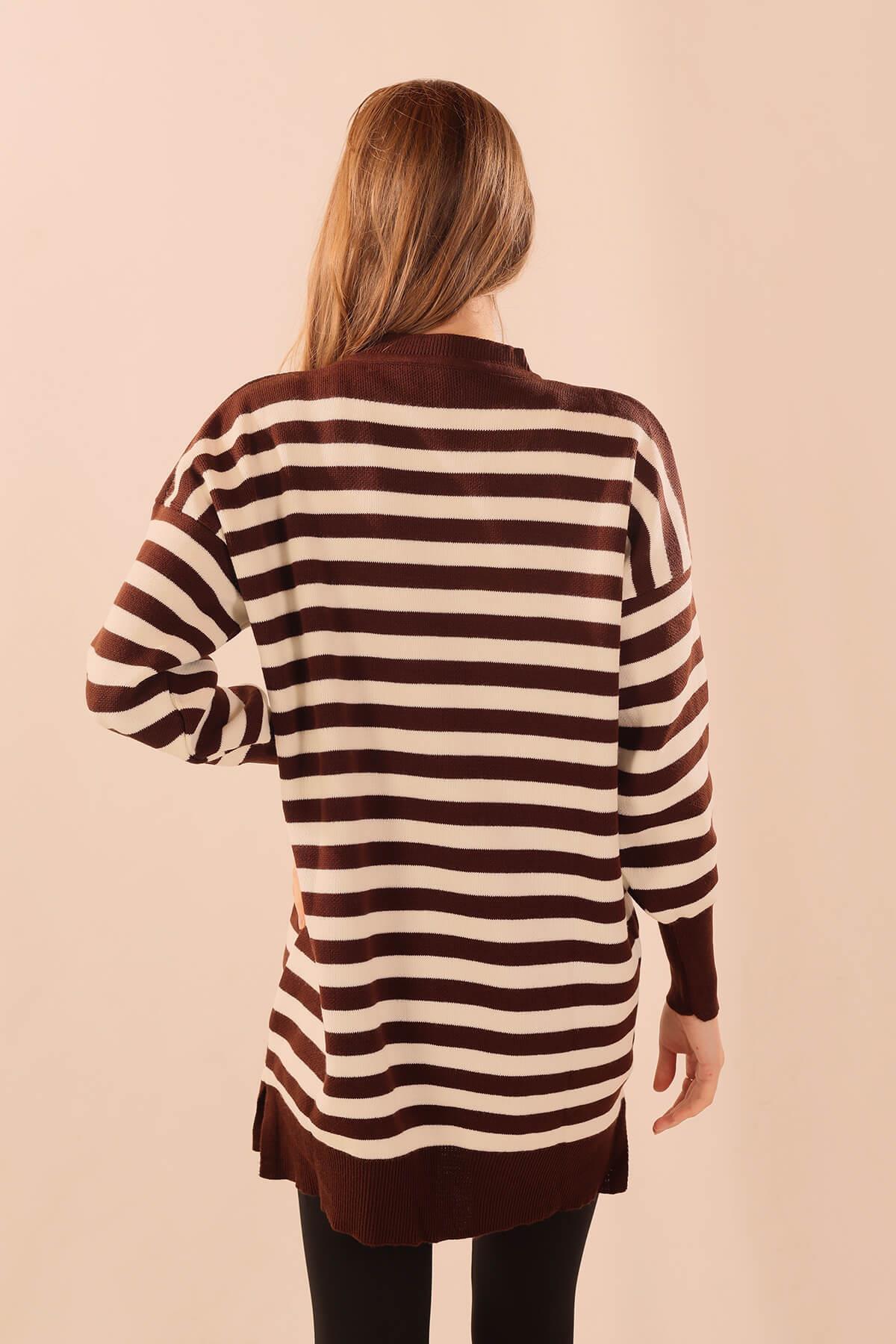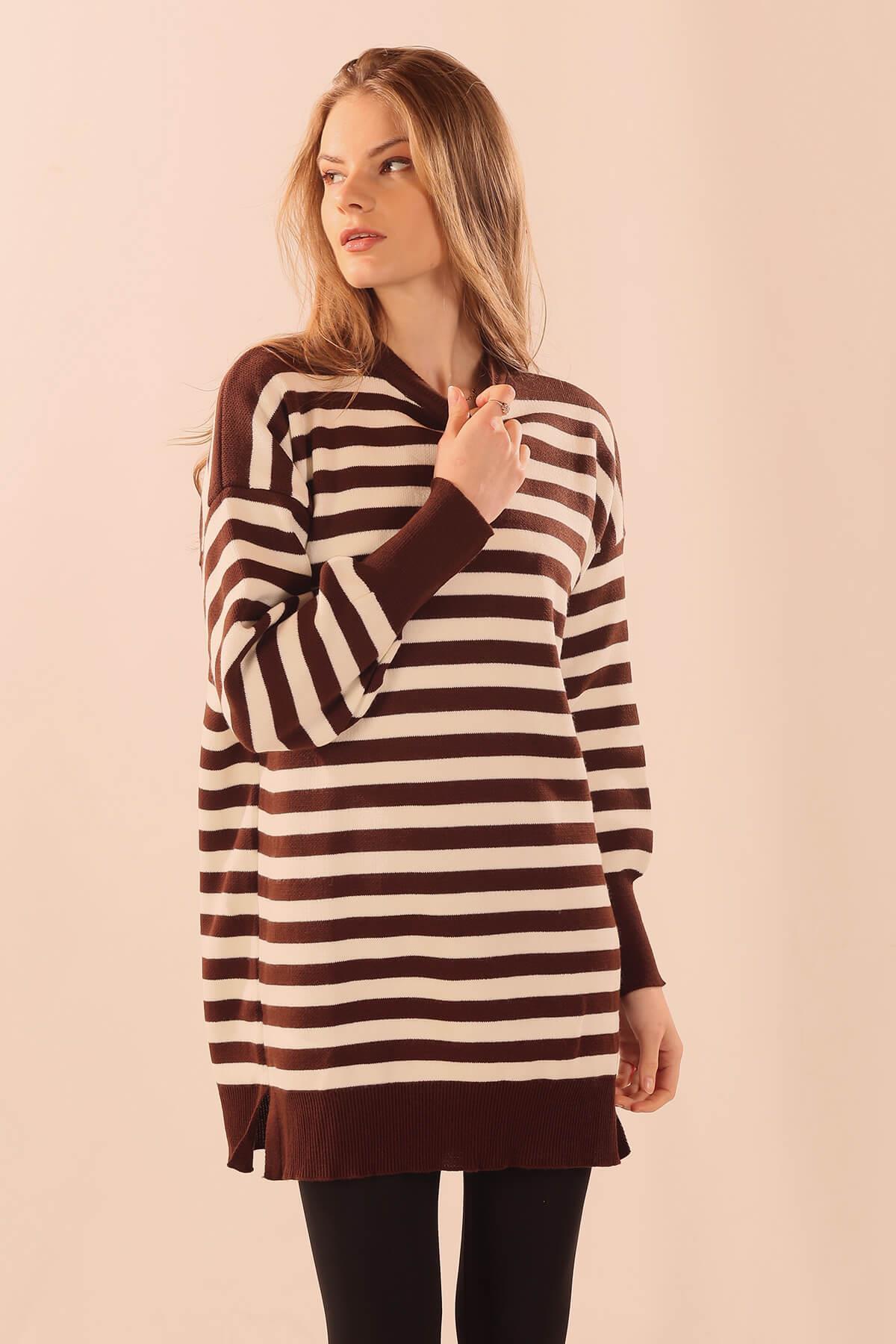 Acı Kahve Bisiklet Yaka Yırtmaç Detay Kazak 075