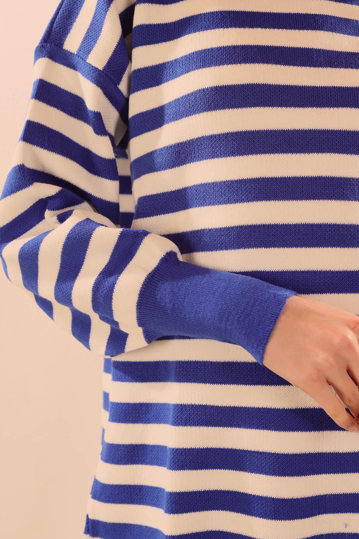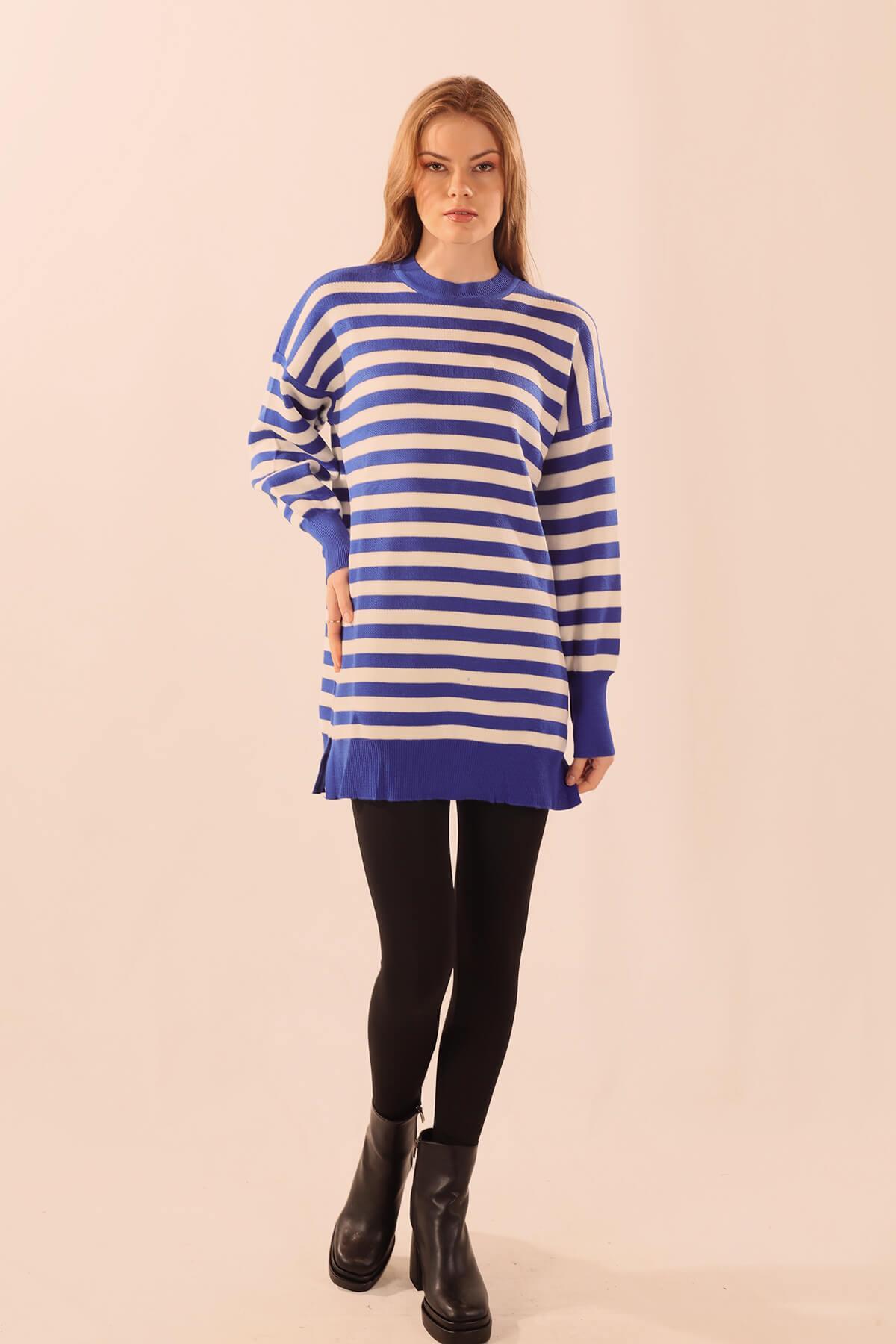 Saks Bisiklet Yaka Yırtmaç Detay Kazak 075
