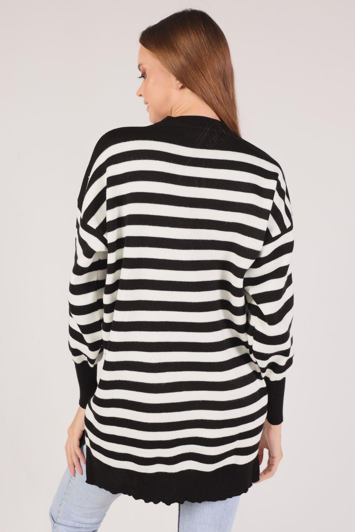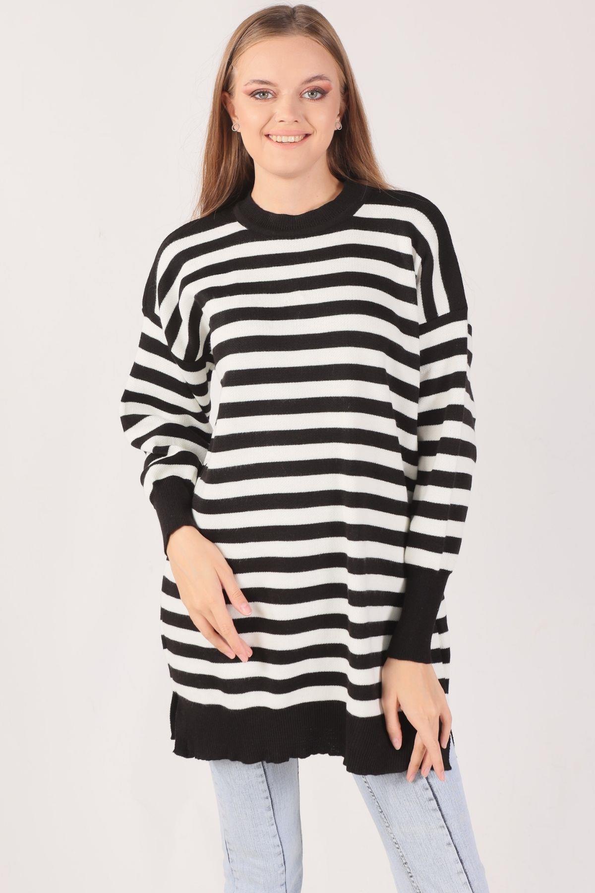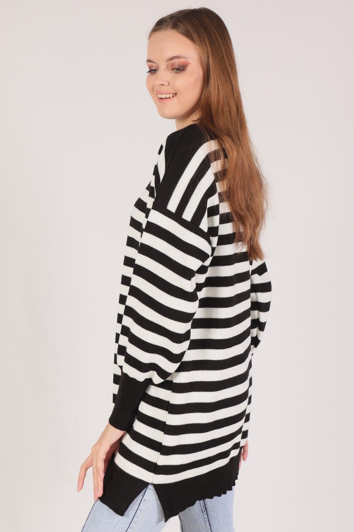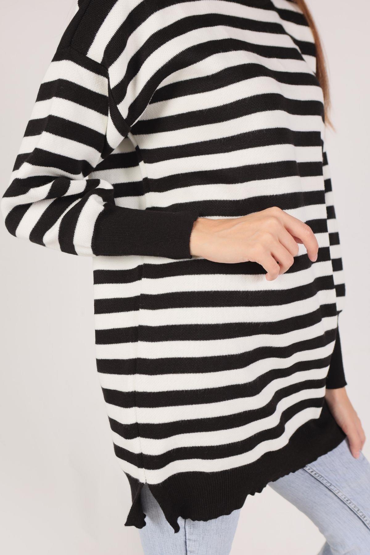 Siyah Bisiklet Yaka Yırtmaç Detay Kazak 075