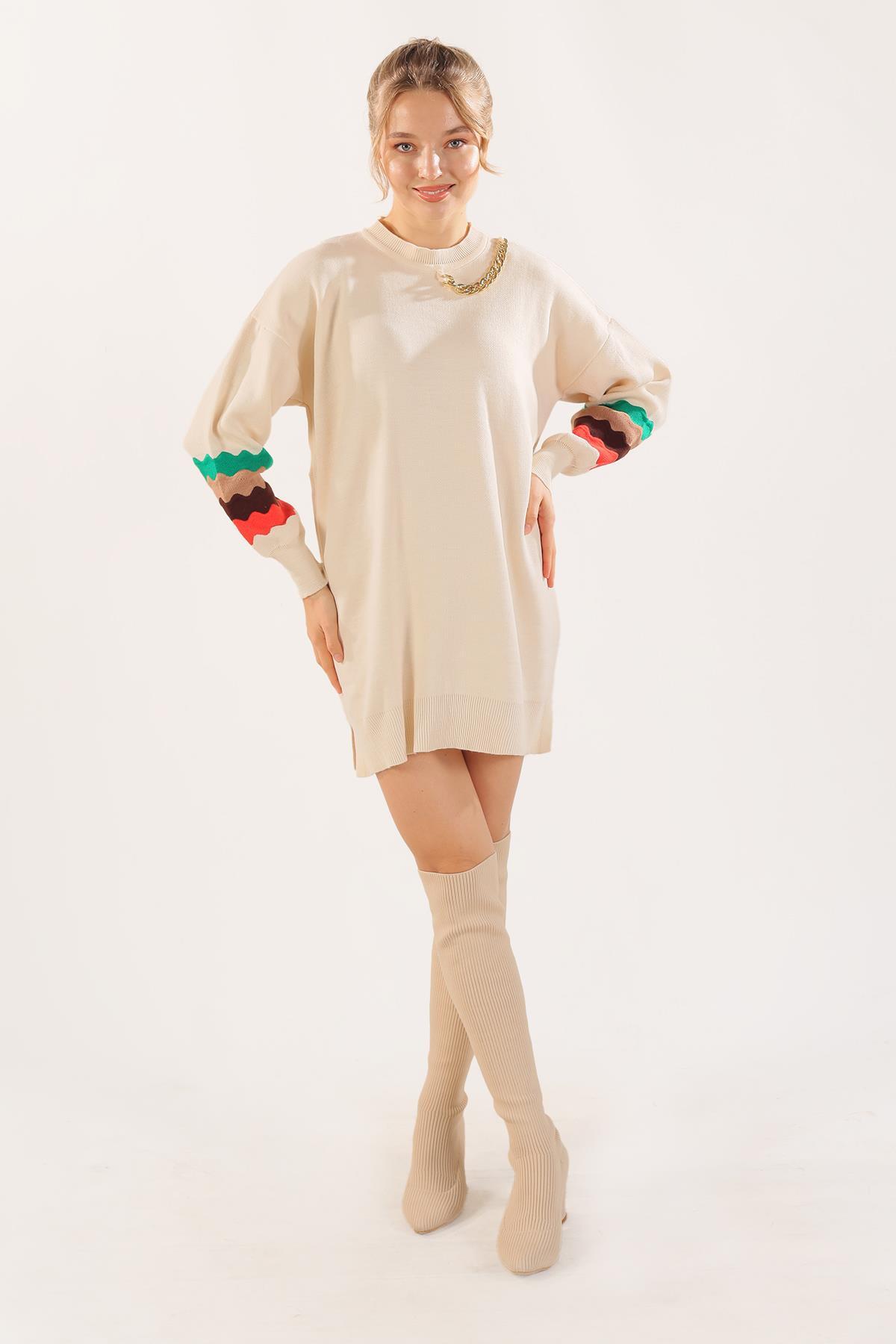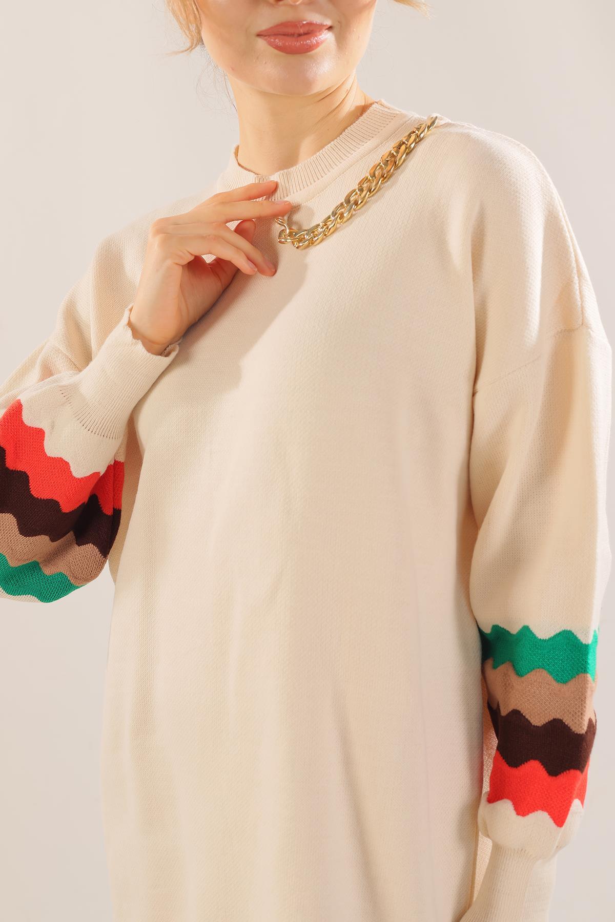 Gri - Ekru Yıldız Baskılı Oversize Kazak 2474 - RAYS Gri - Ekru Yıldız Baskılı Oversize Kazak 2474 - RAYS (1)