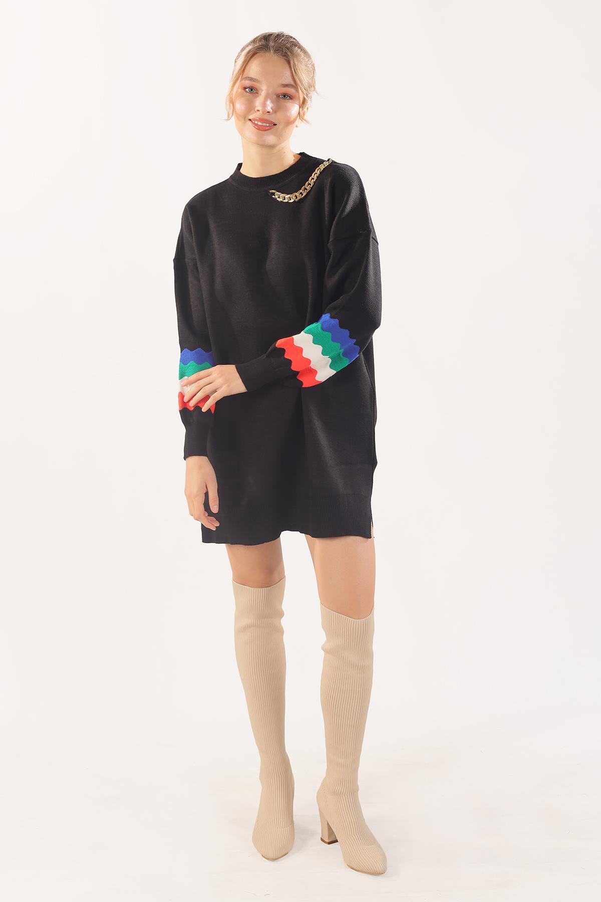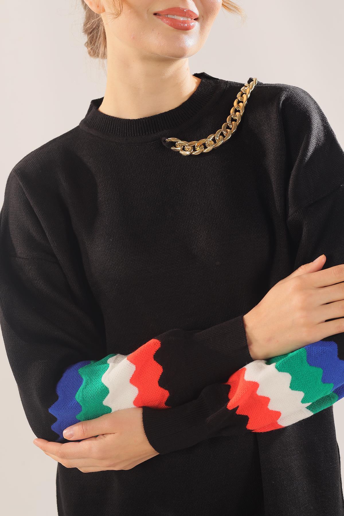 Siyah Kolye Detay Kol Renkli Kazak 090