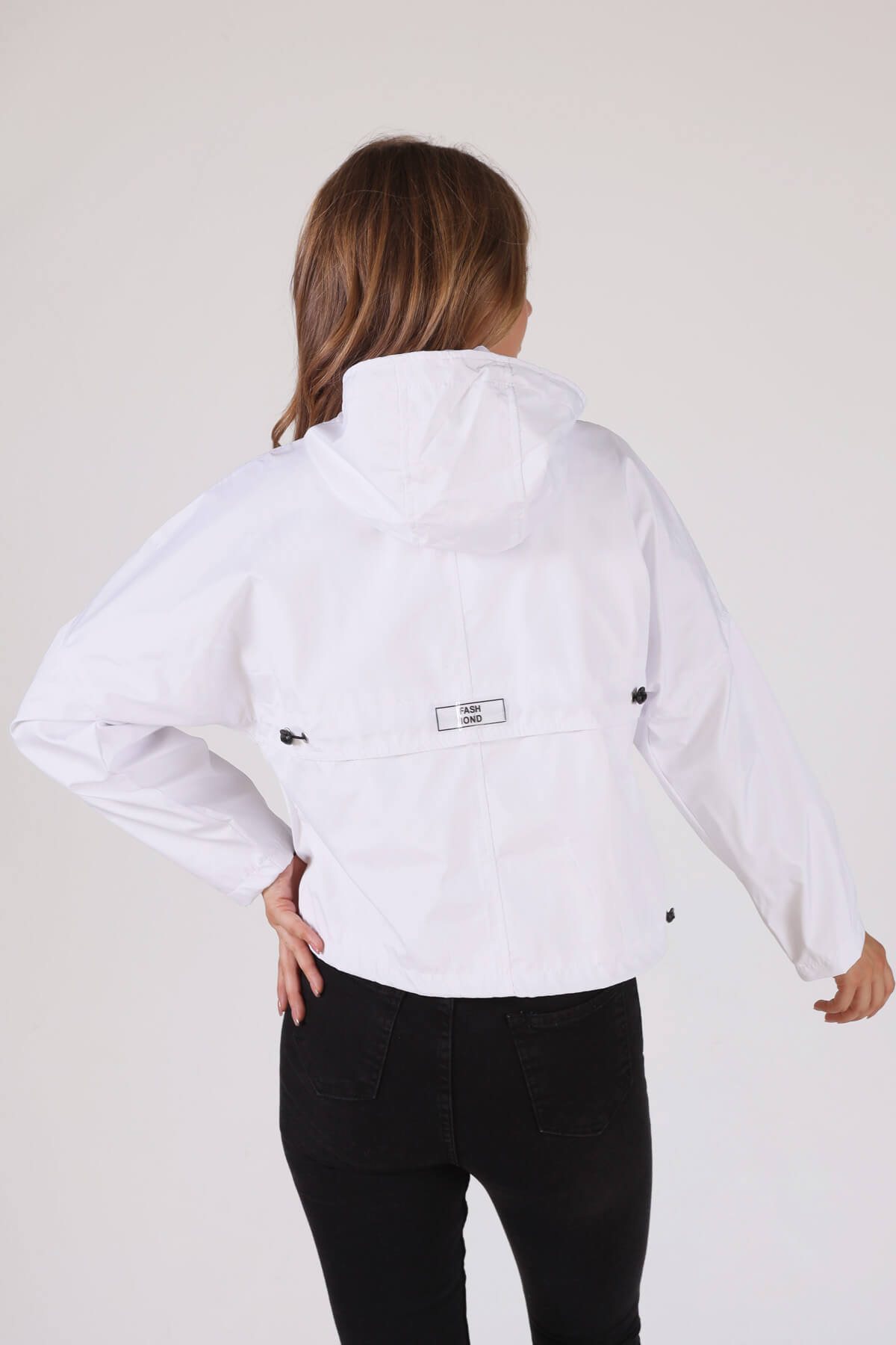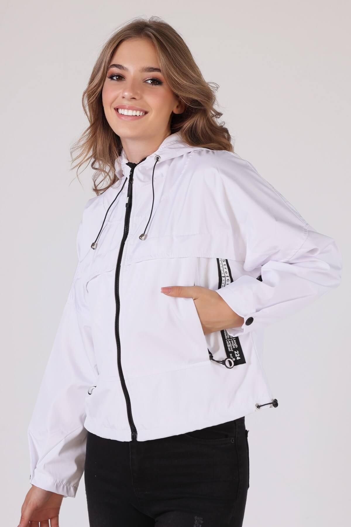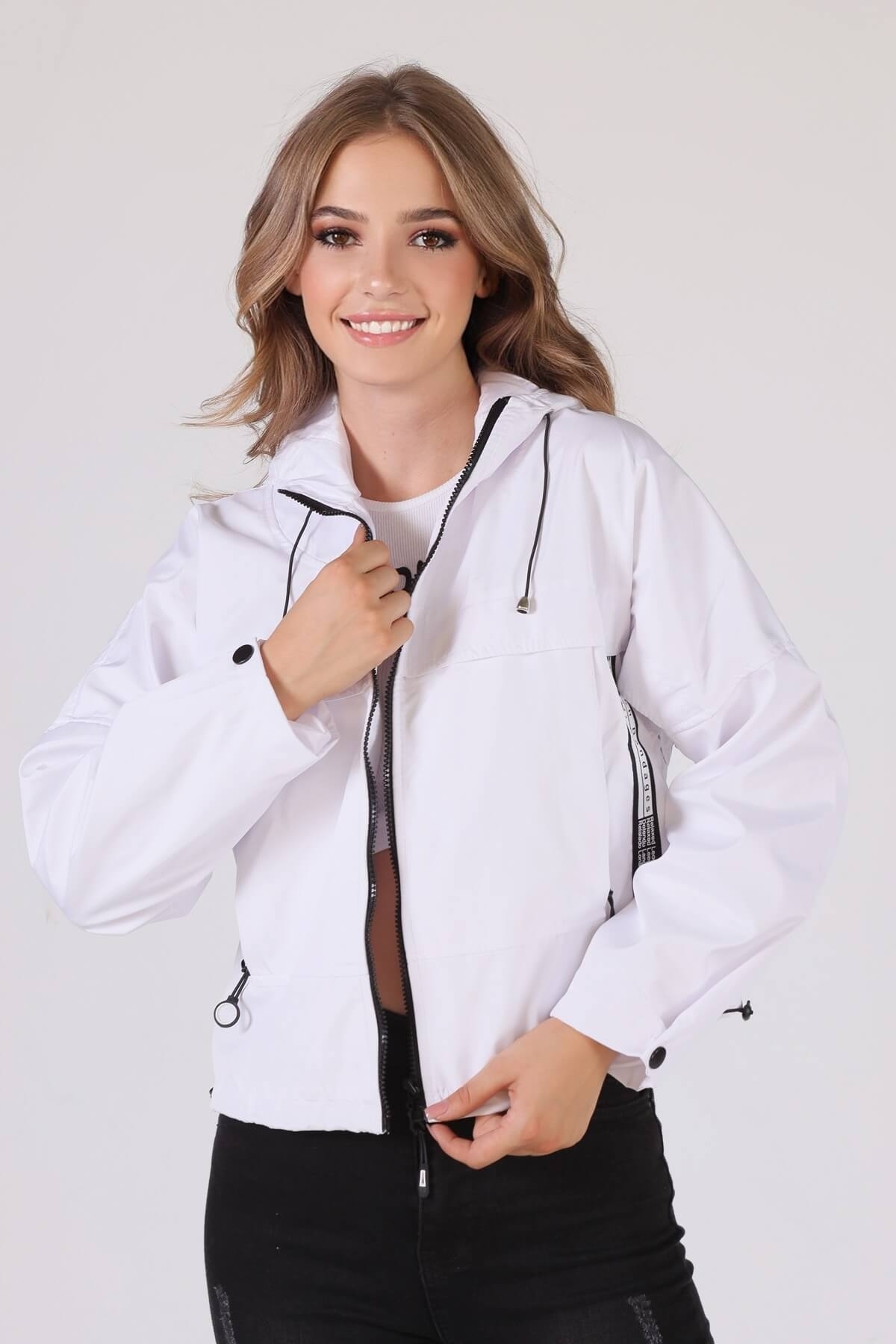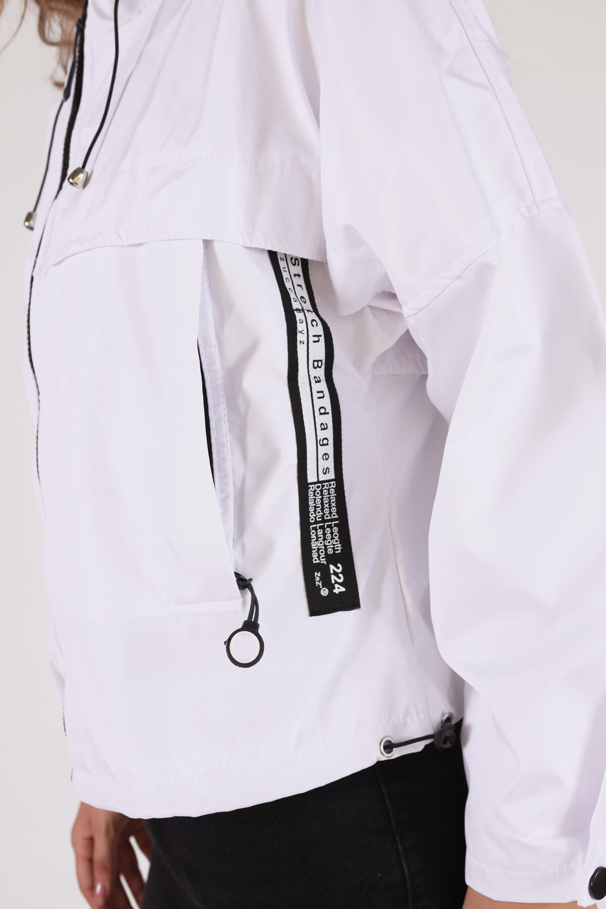 Beyaz Kapüşonlu Cep Detay Ceket 10012