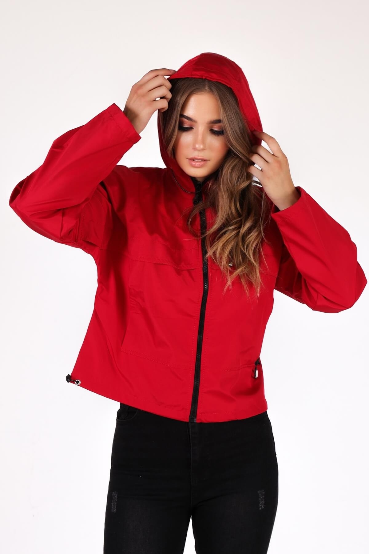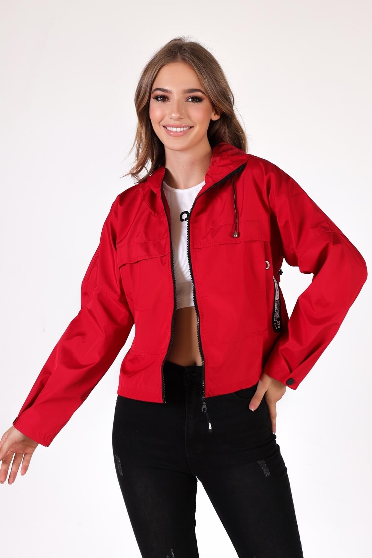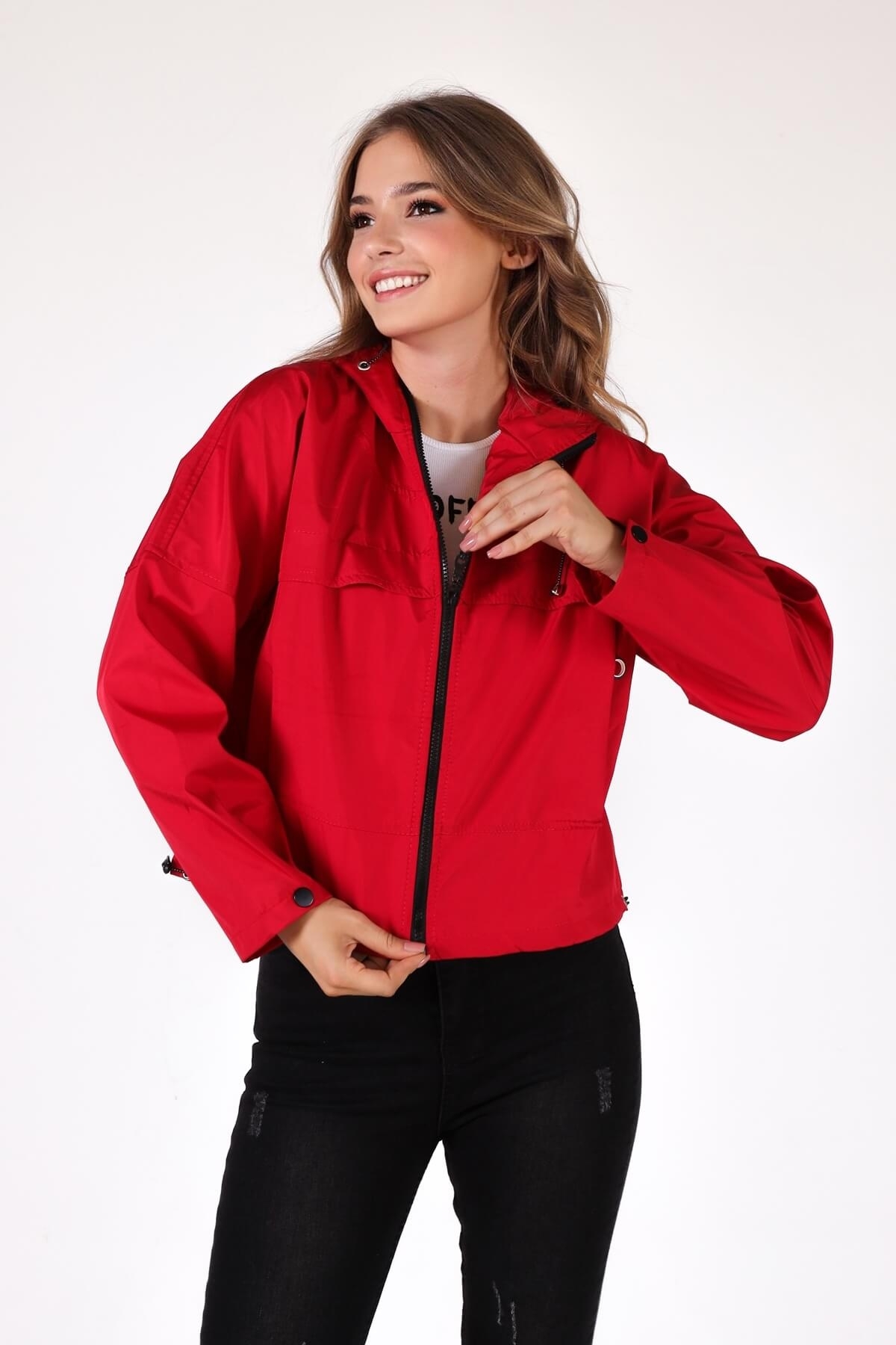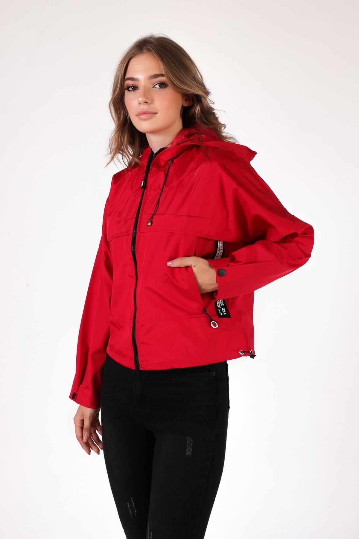 Kırmızı Kapüşonlu Cep Detay Ceket 10012
