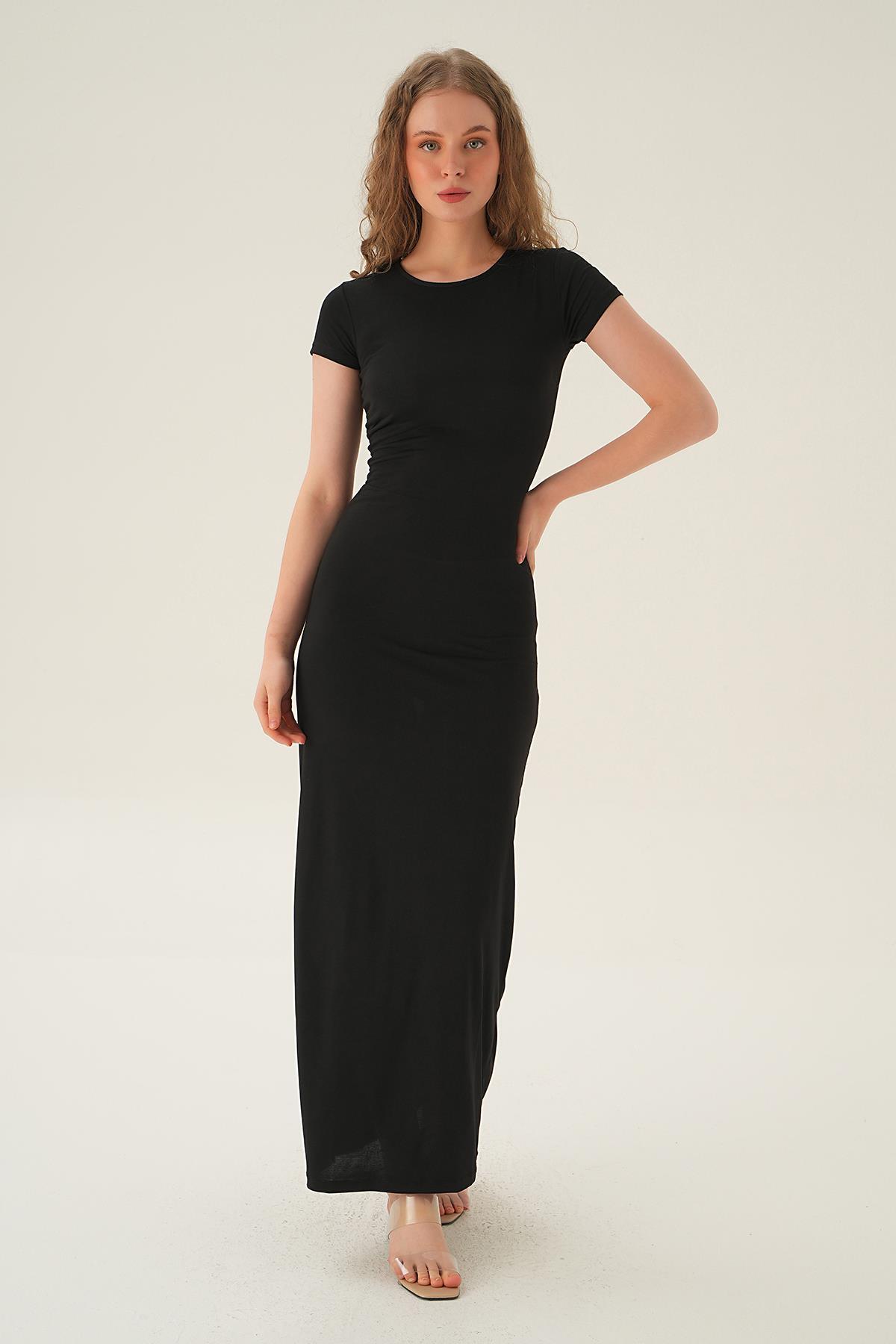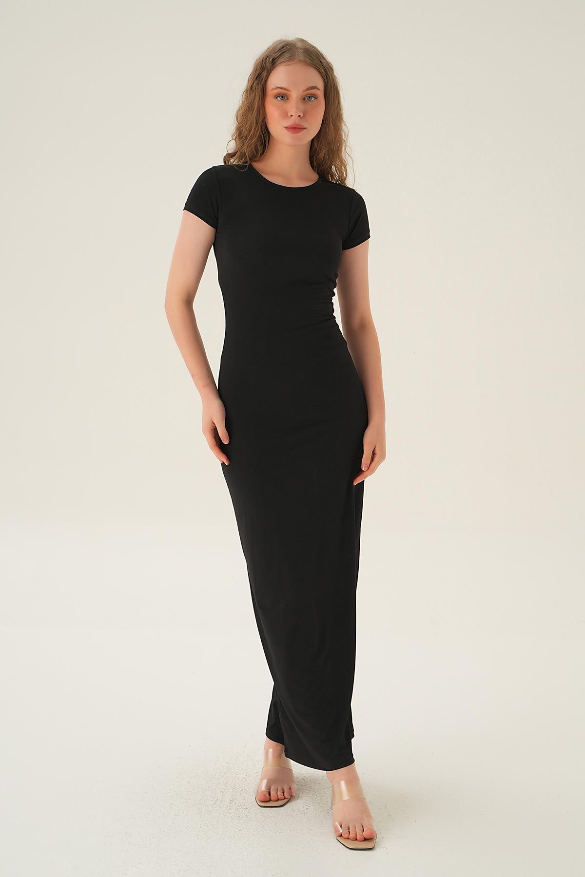 Siyah Kısa Kol Elbise 1003