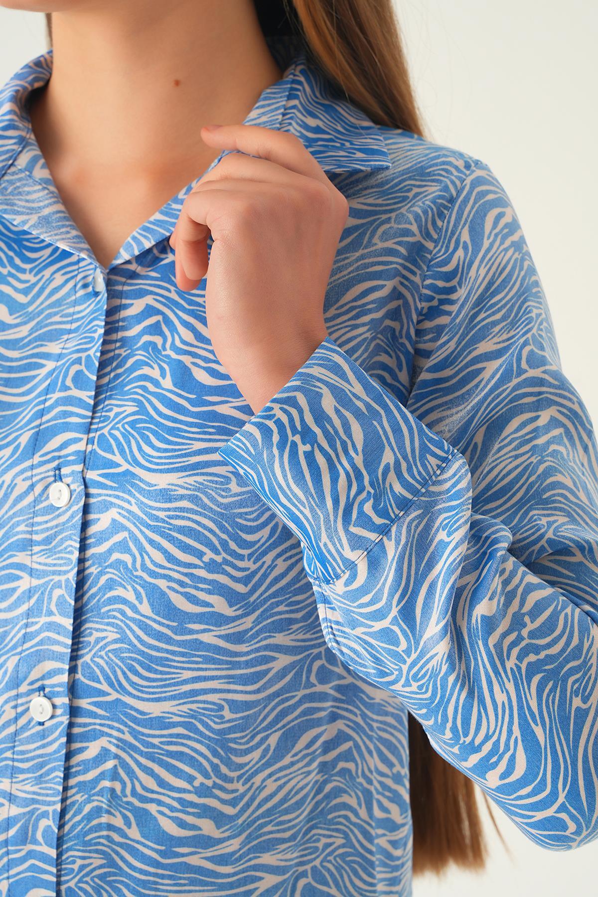 İndigo Tek Cepli Oversize Gömlek 8158A