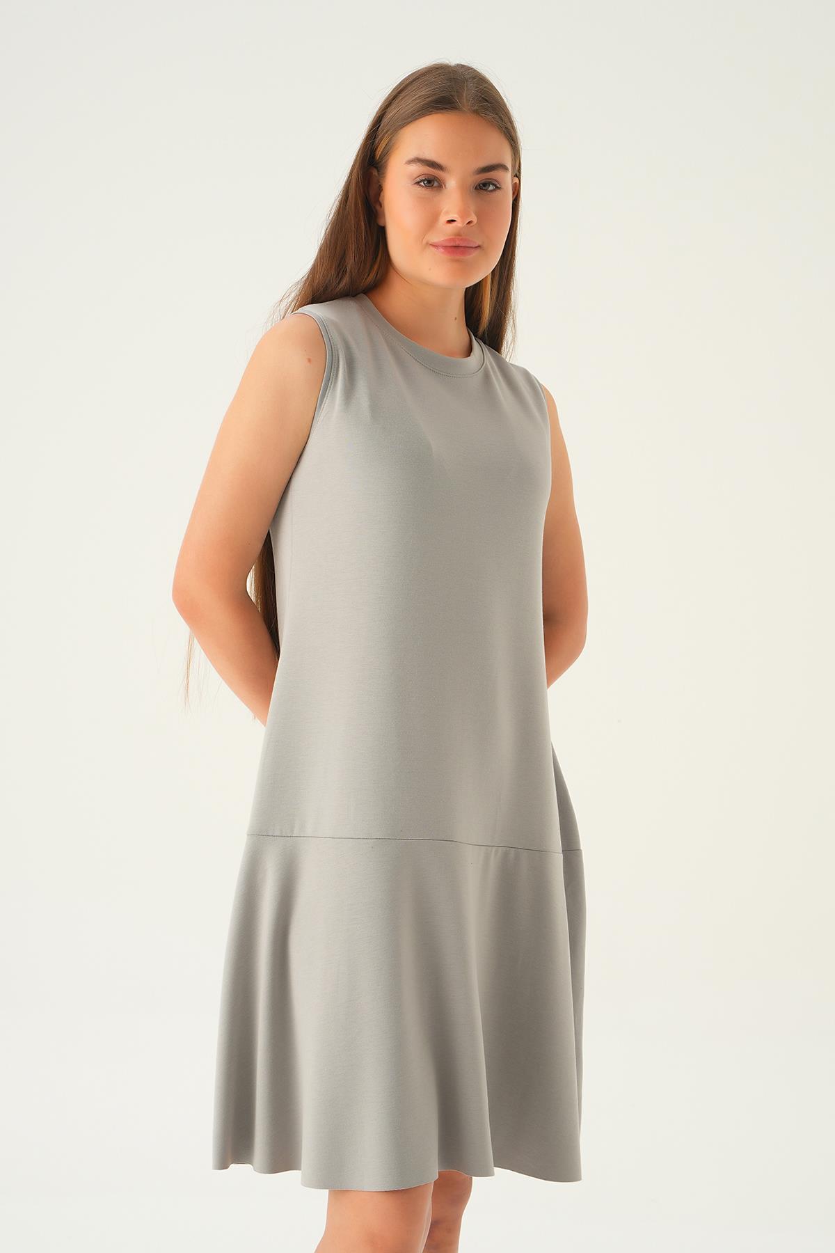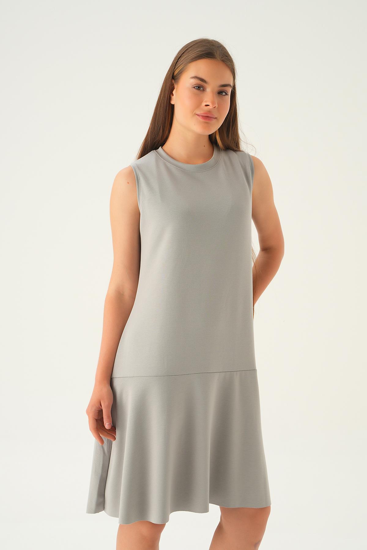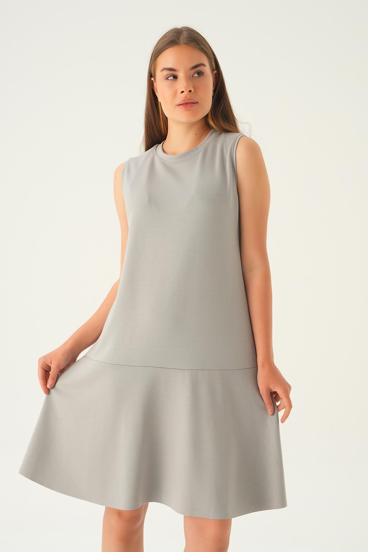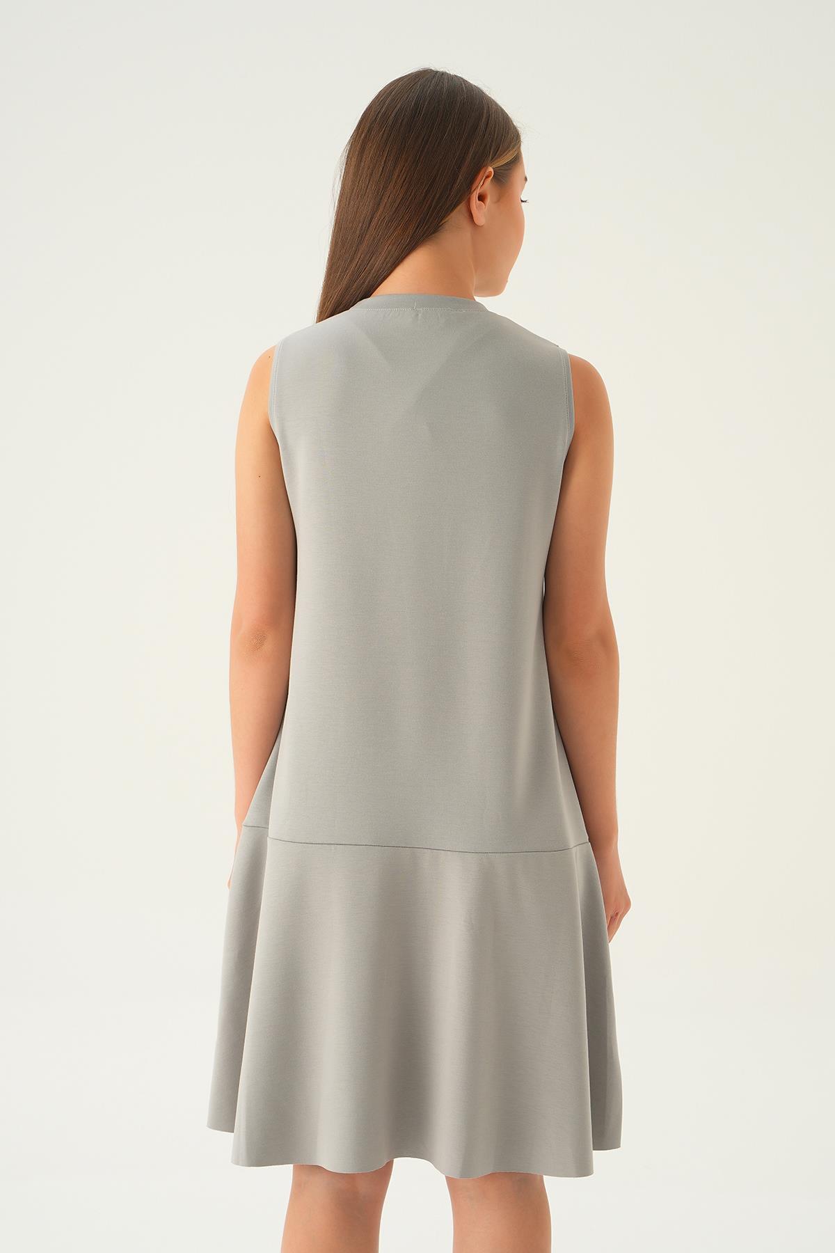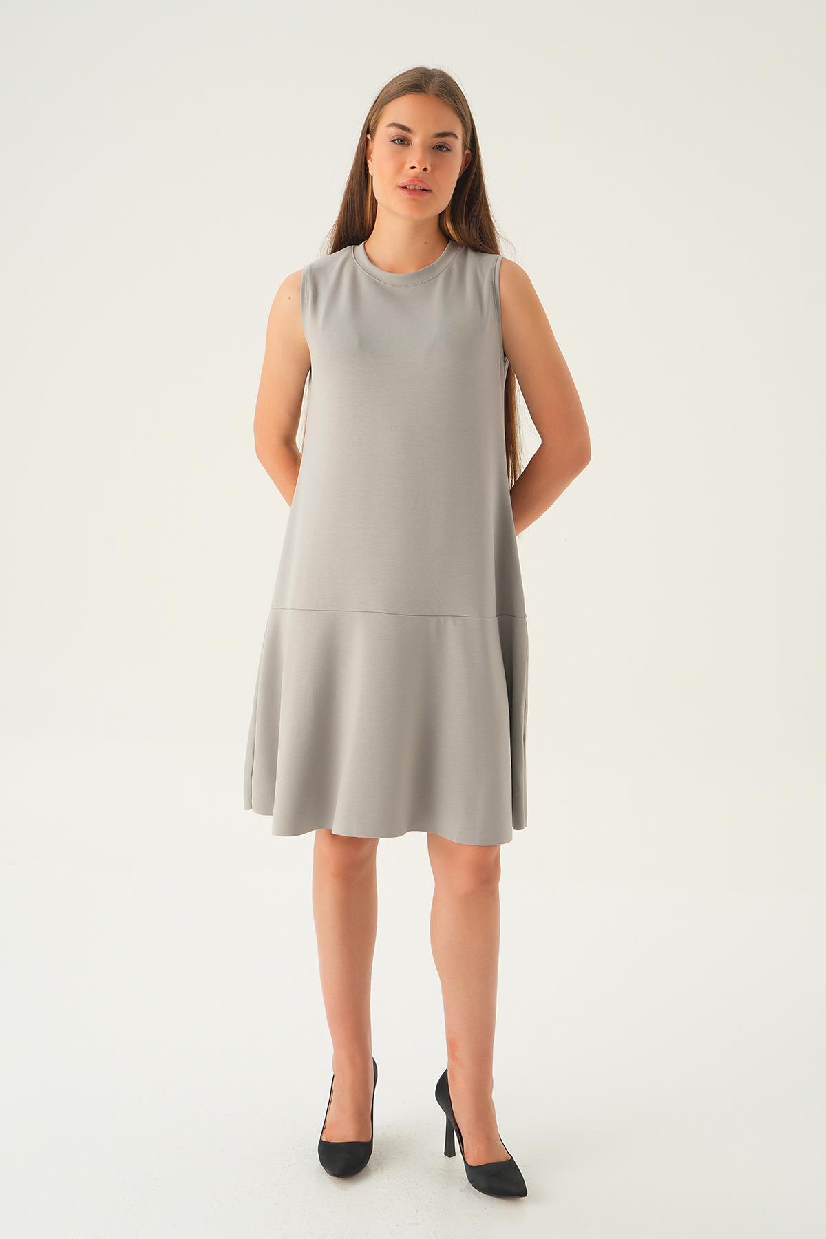 Gri Sıfır Kol Elbise 1005