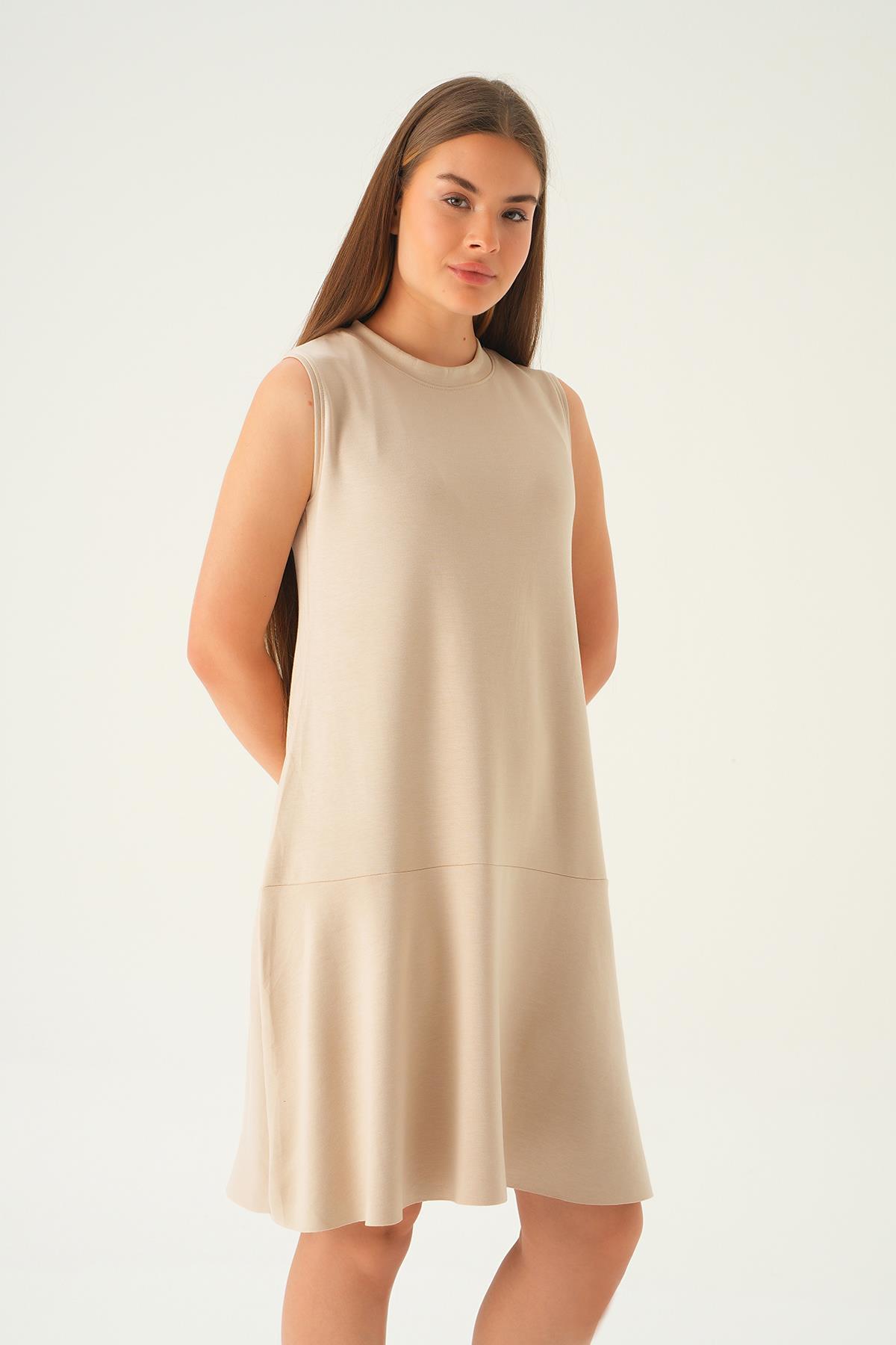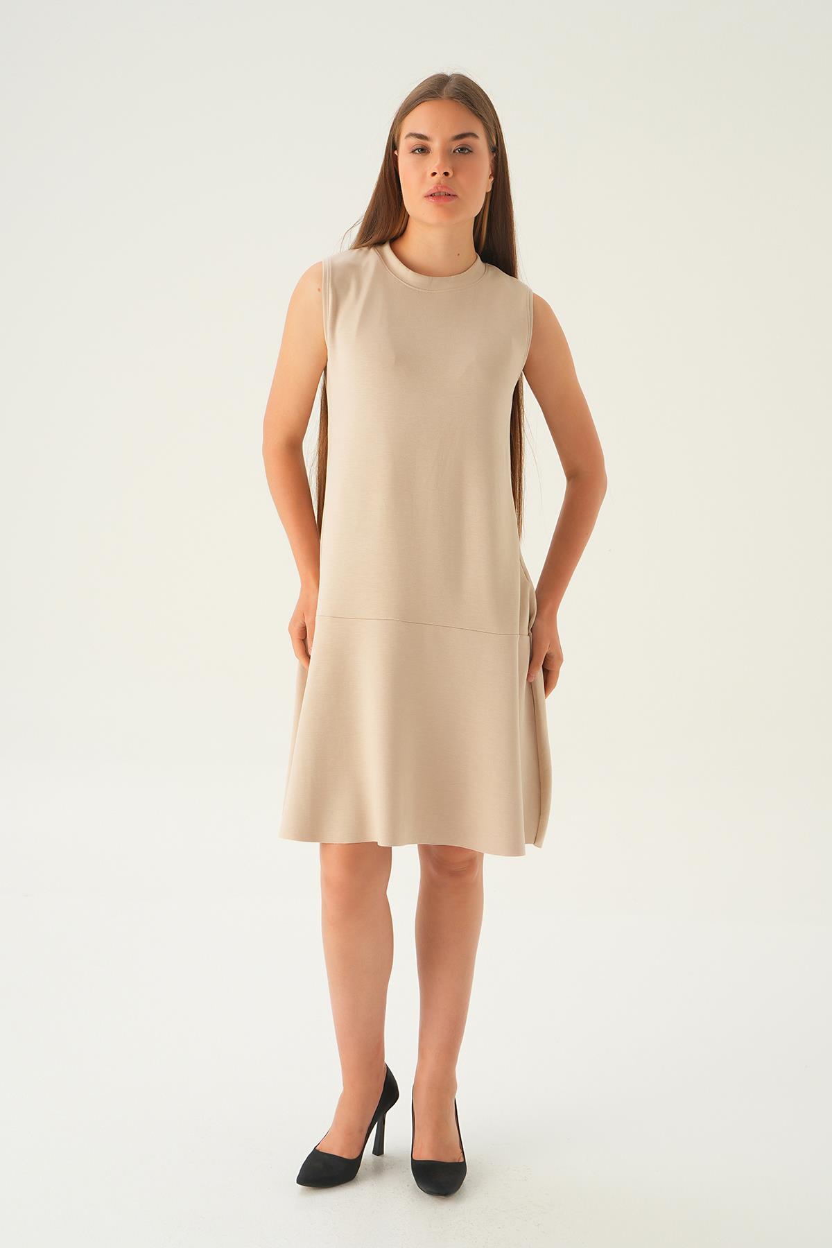 Vizon Sıfır Kol Elbise 1005