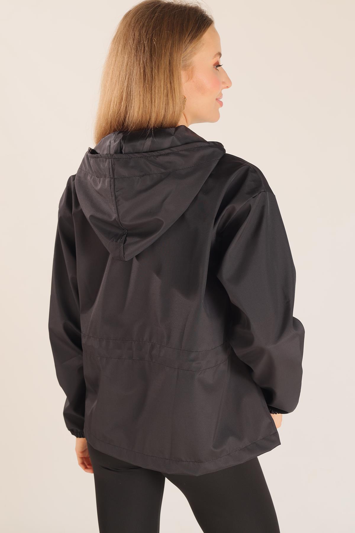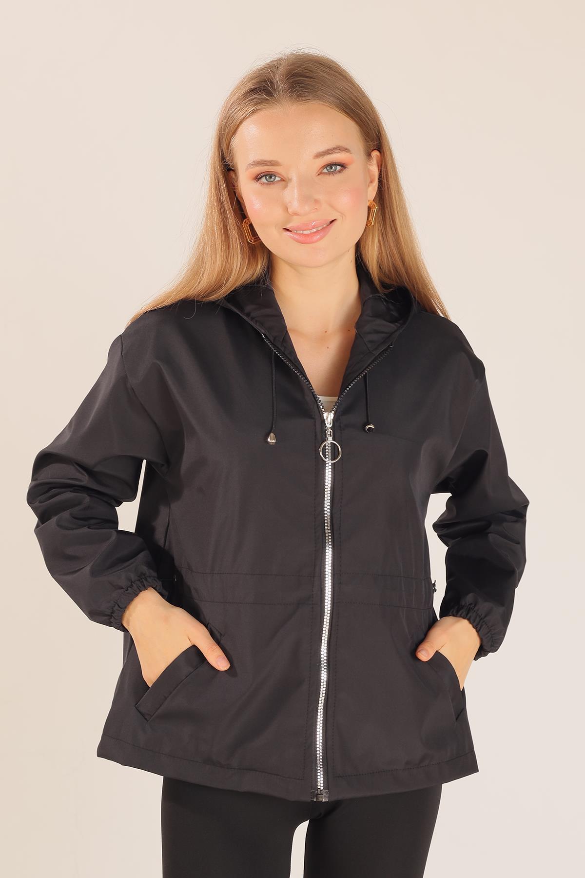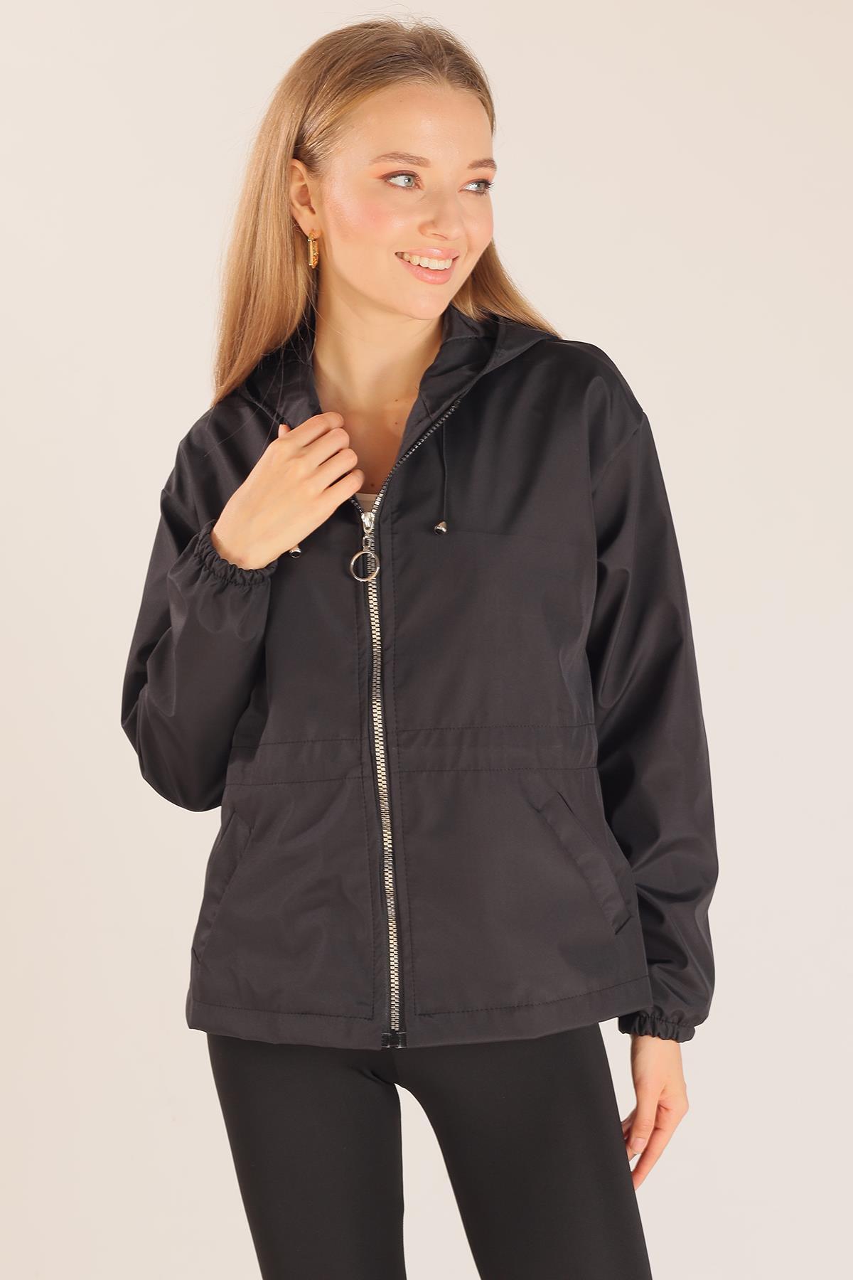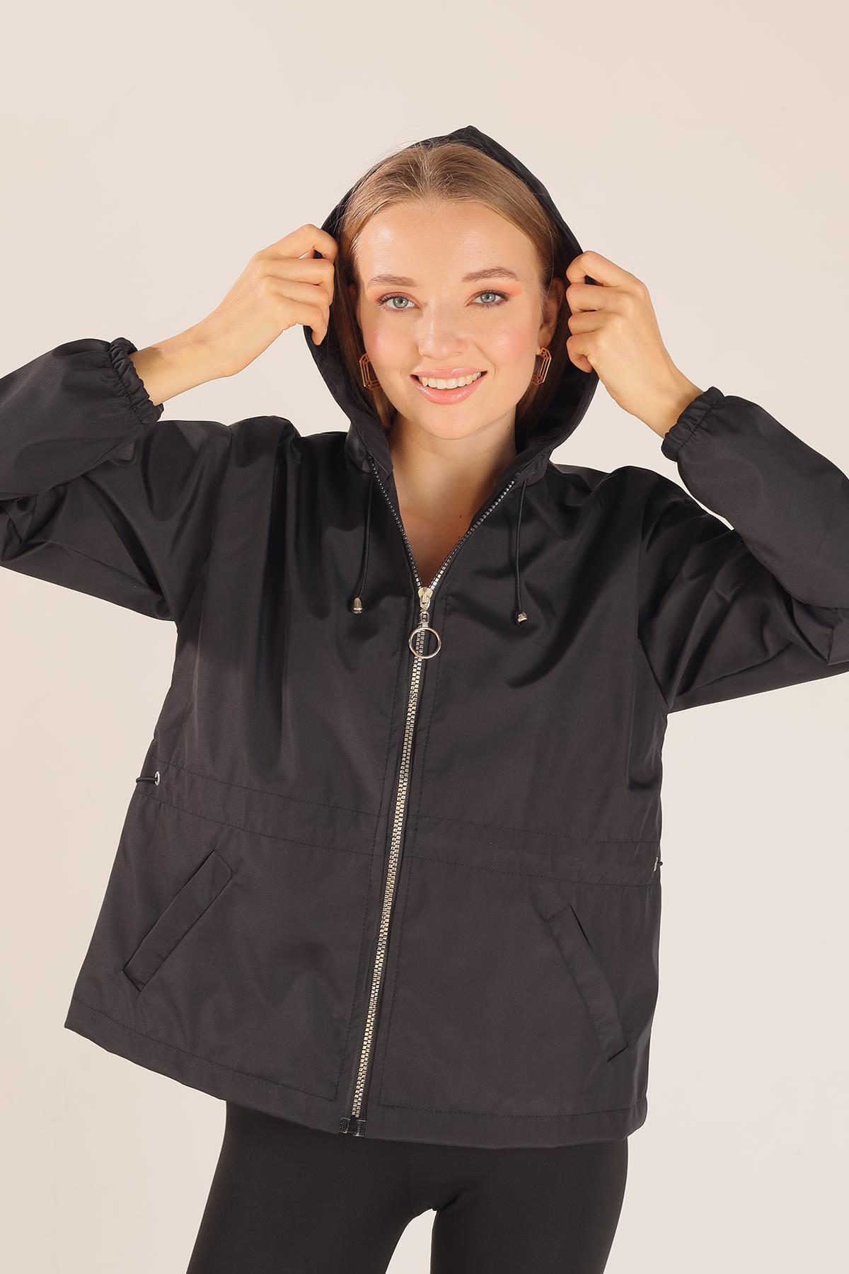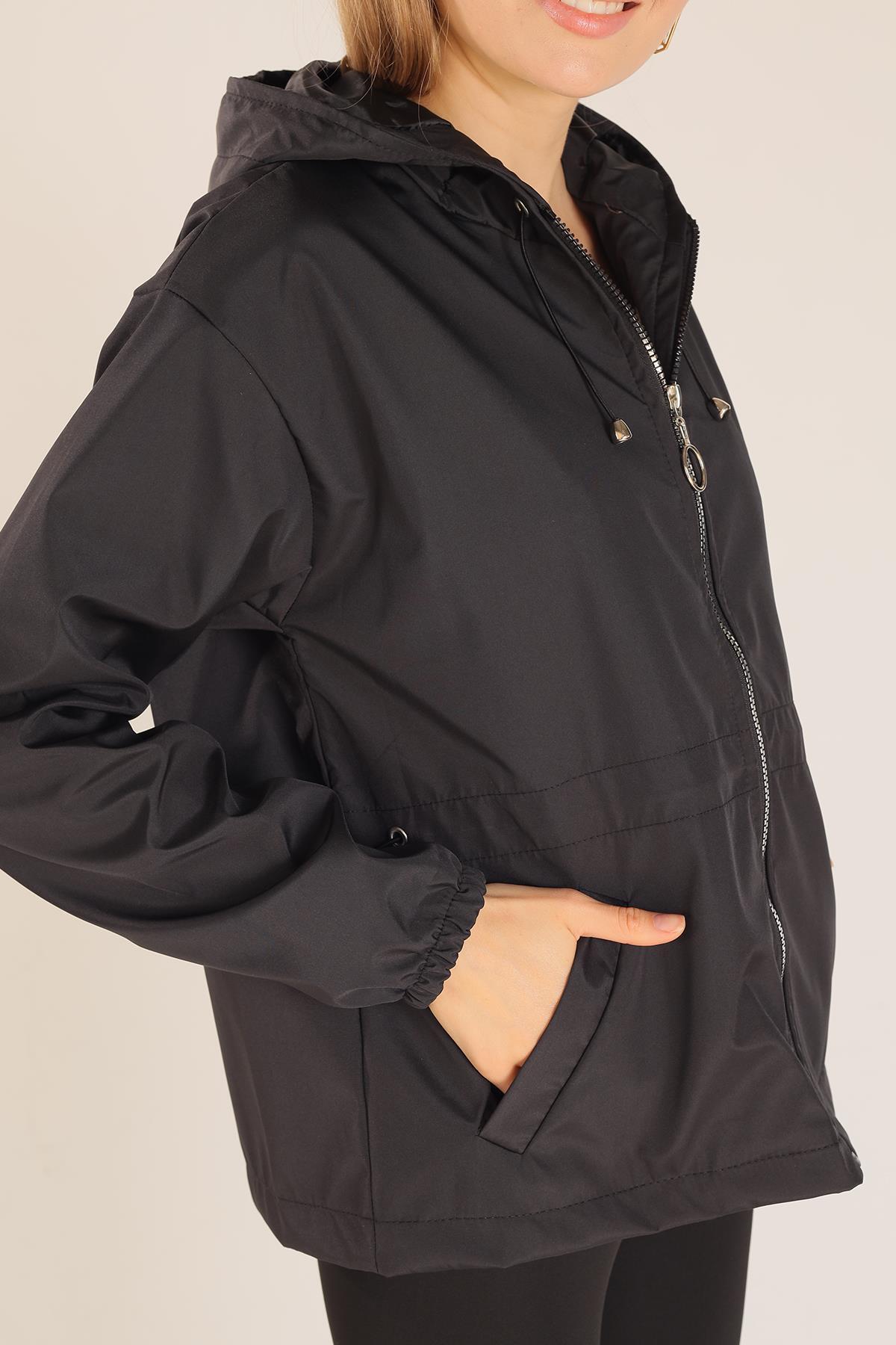 Siyah Bel Lastik Detay Ceket 10011