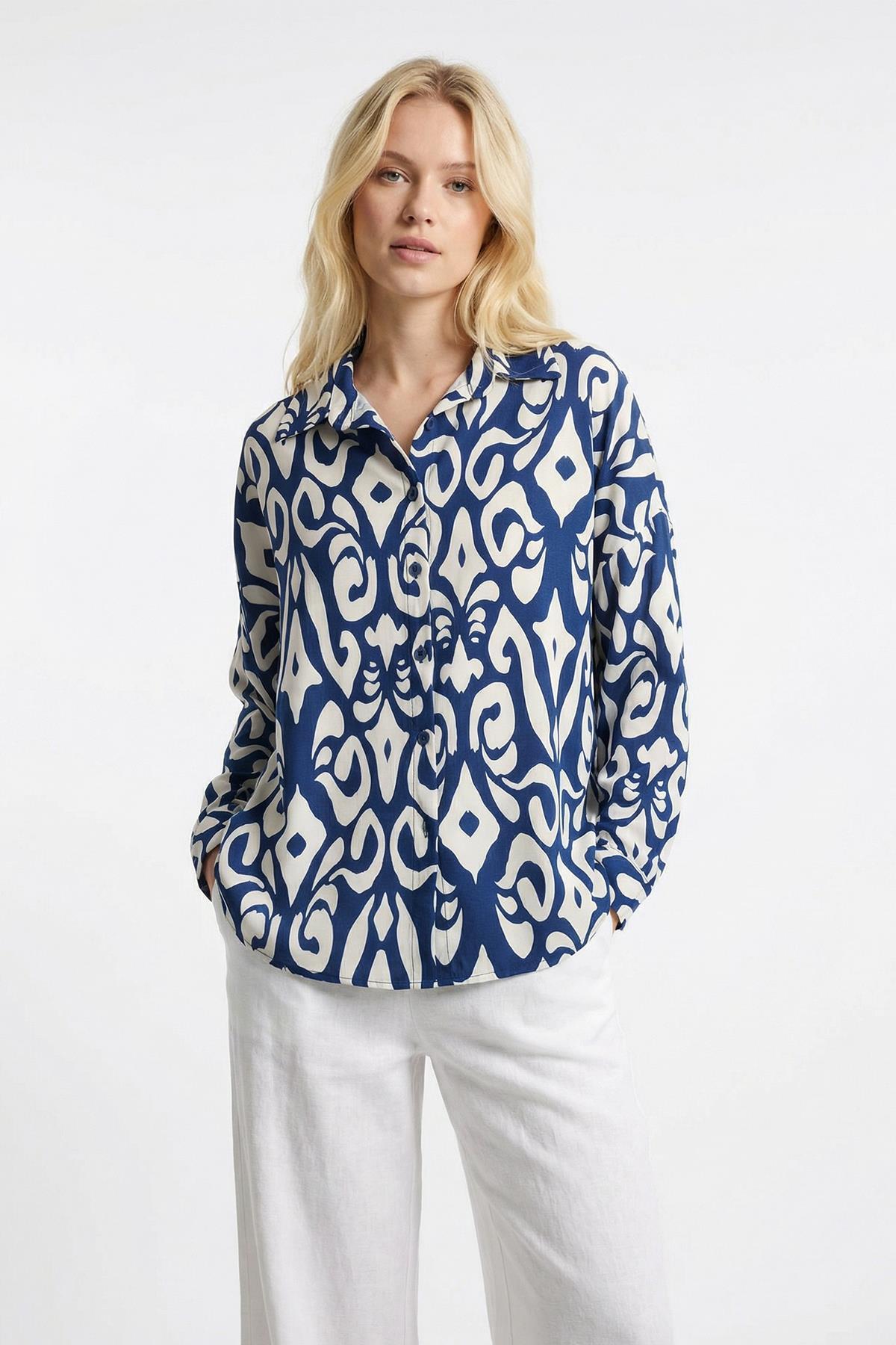 Mavi Desenli Gömlek 1015