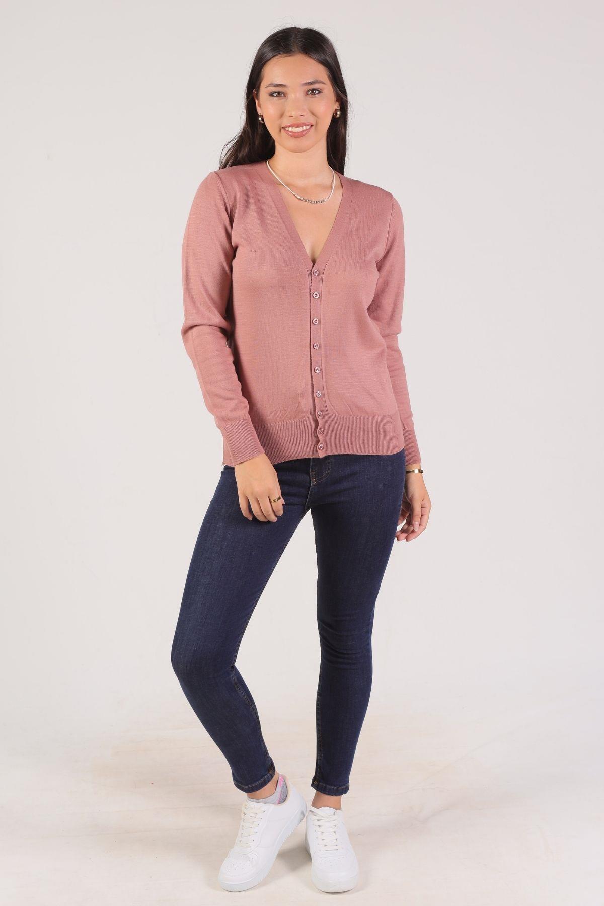 Gül Önü Düğmeli Hırka 1015