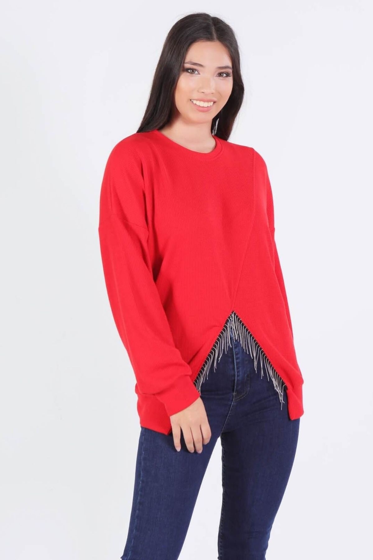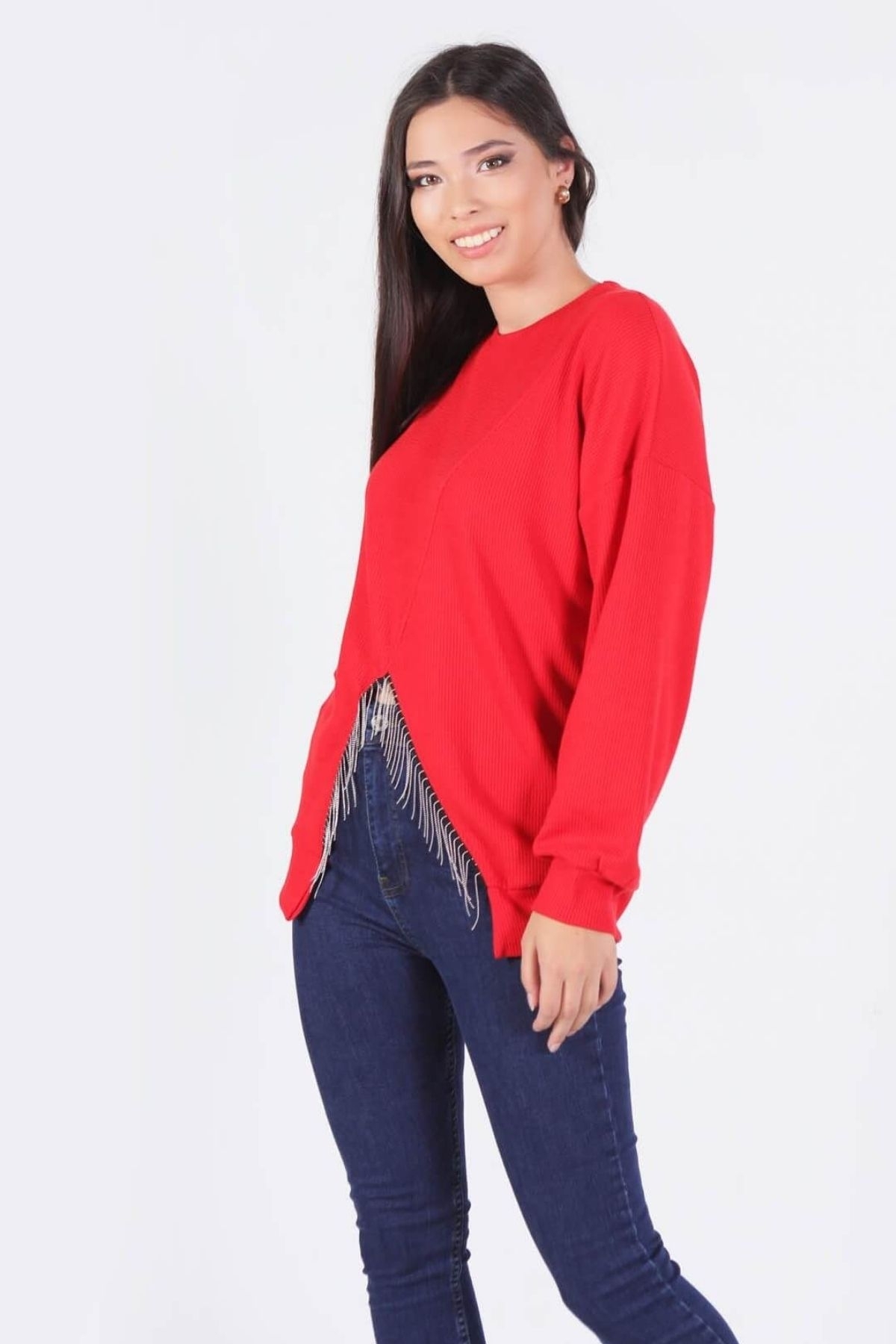 Kırmızı Önü Zincir Detay Bluz 10169
