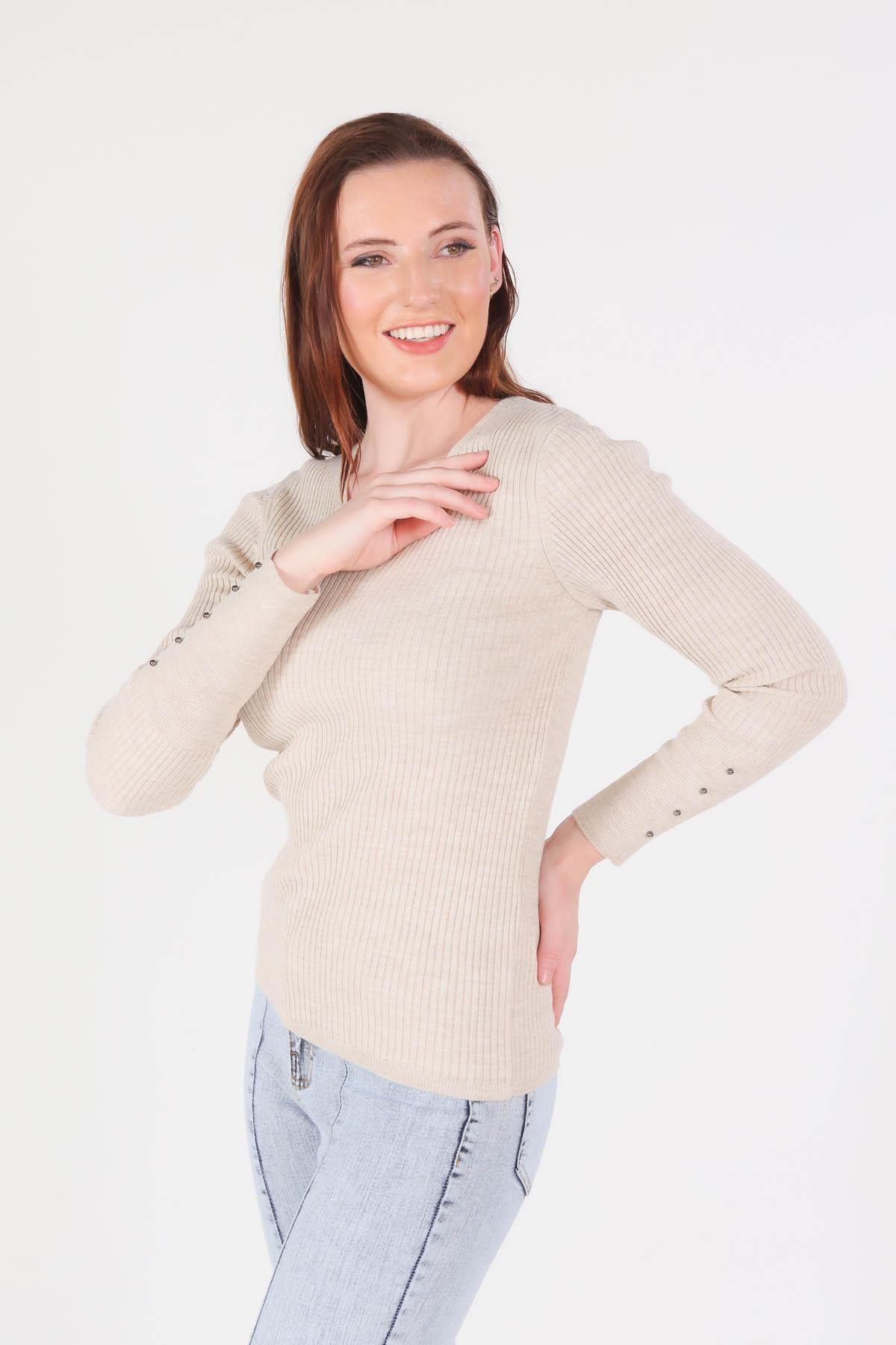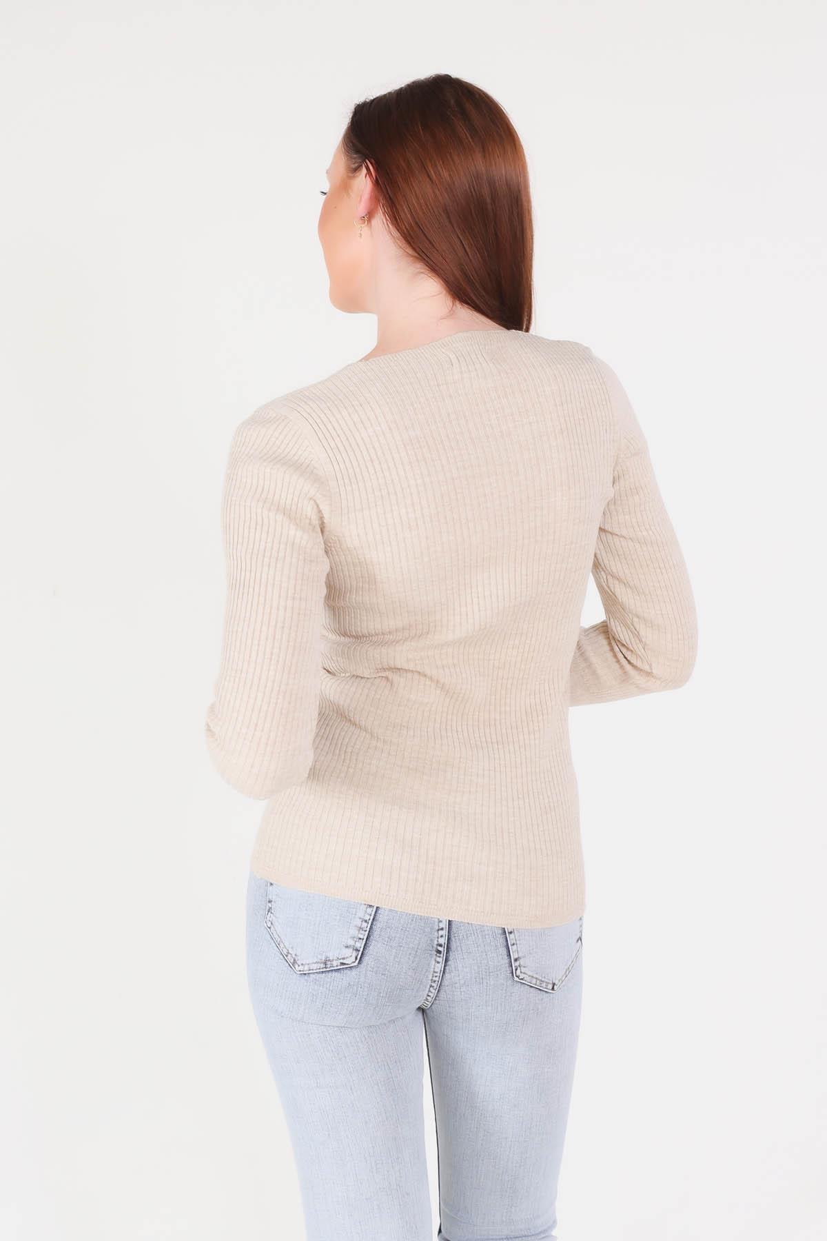 Taş V Yaka Fitilli Kazak 1020
