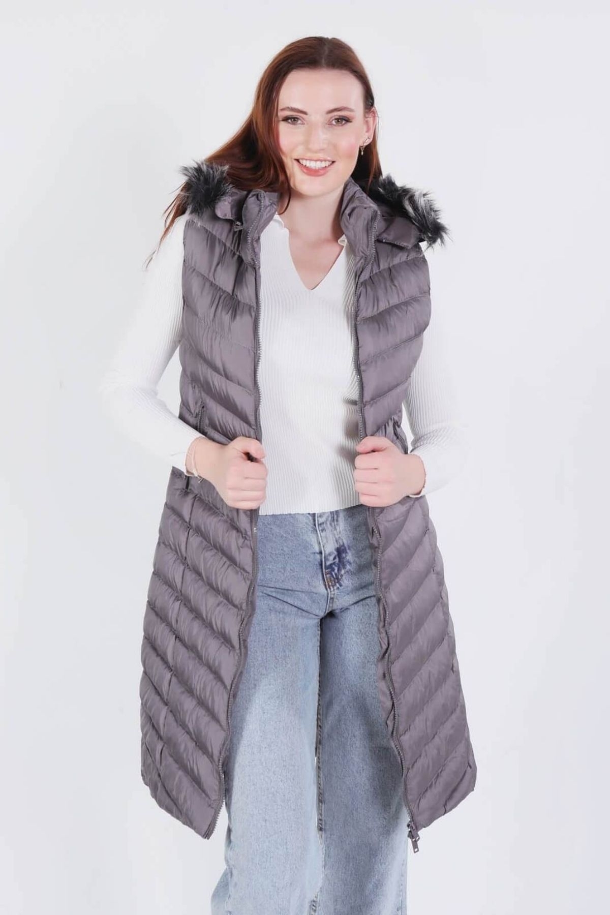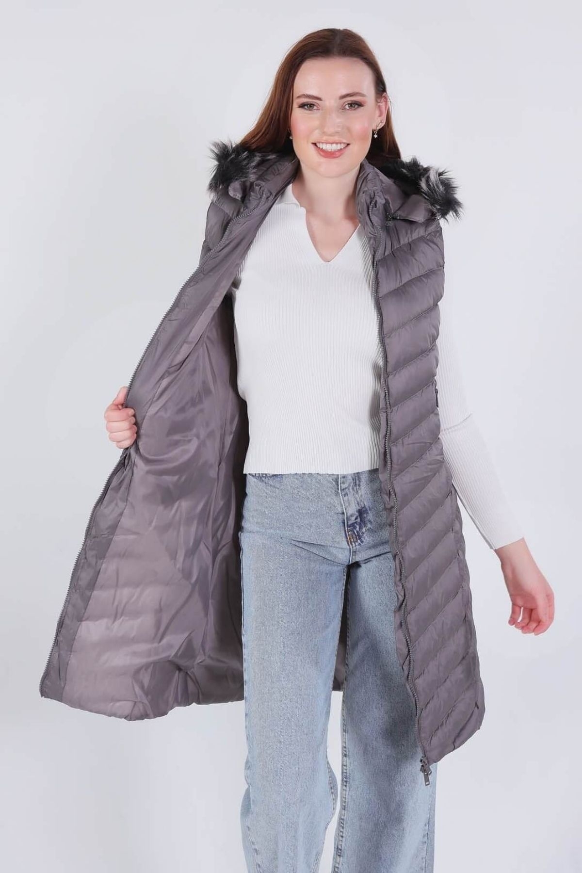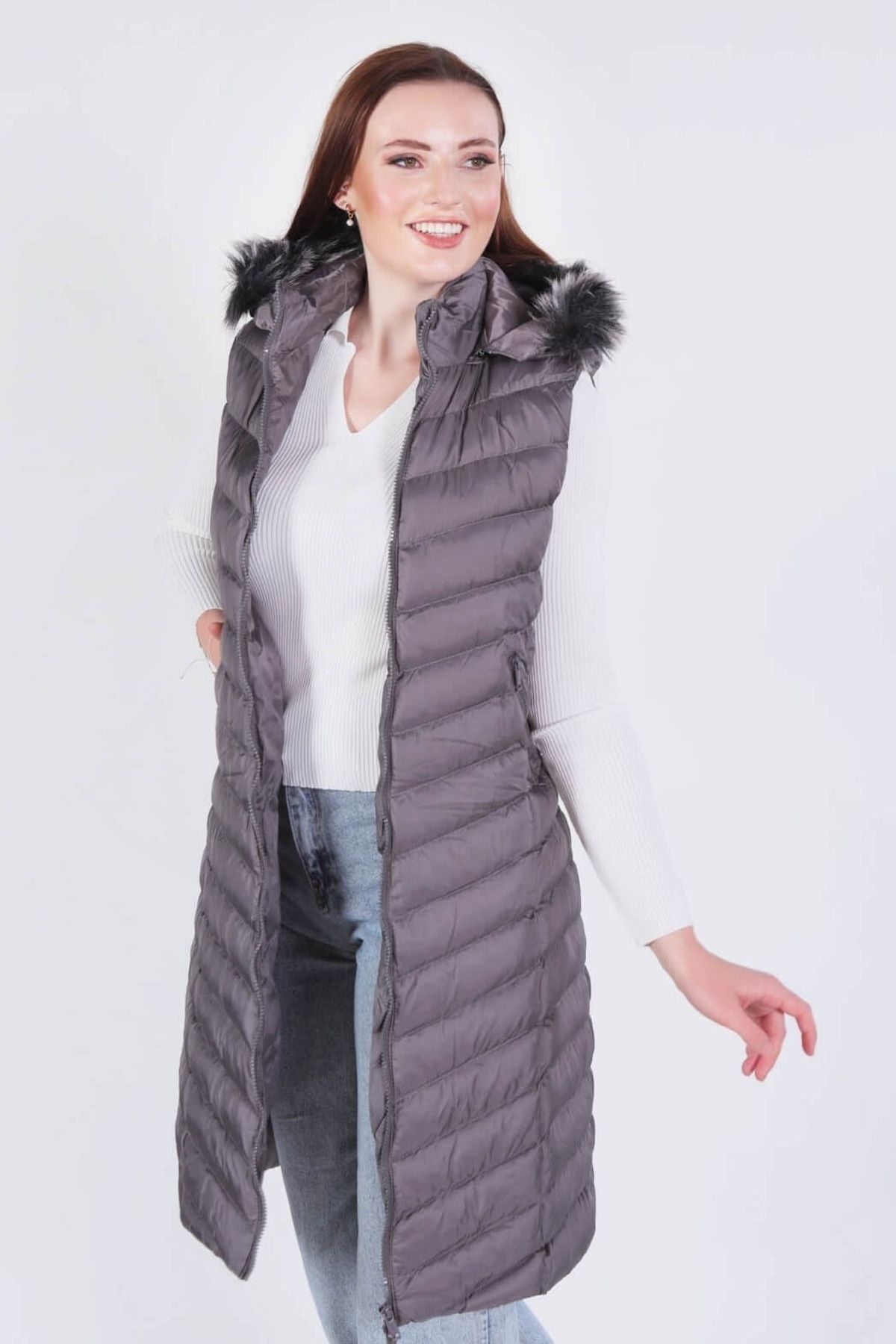 Gri Kapüşonlu Cepli Yelek 1025