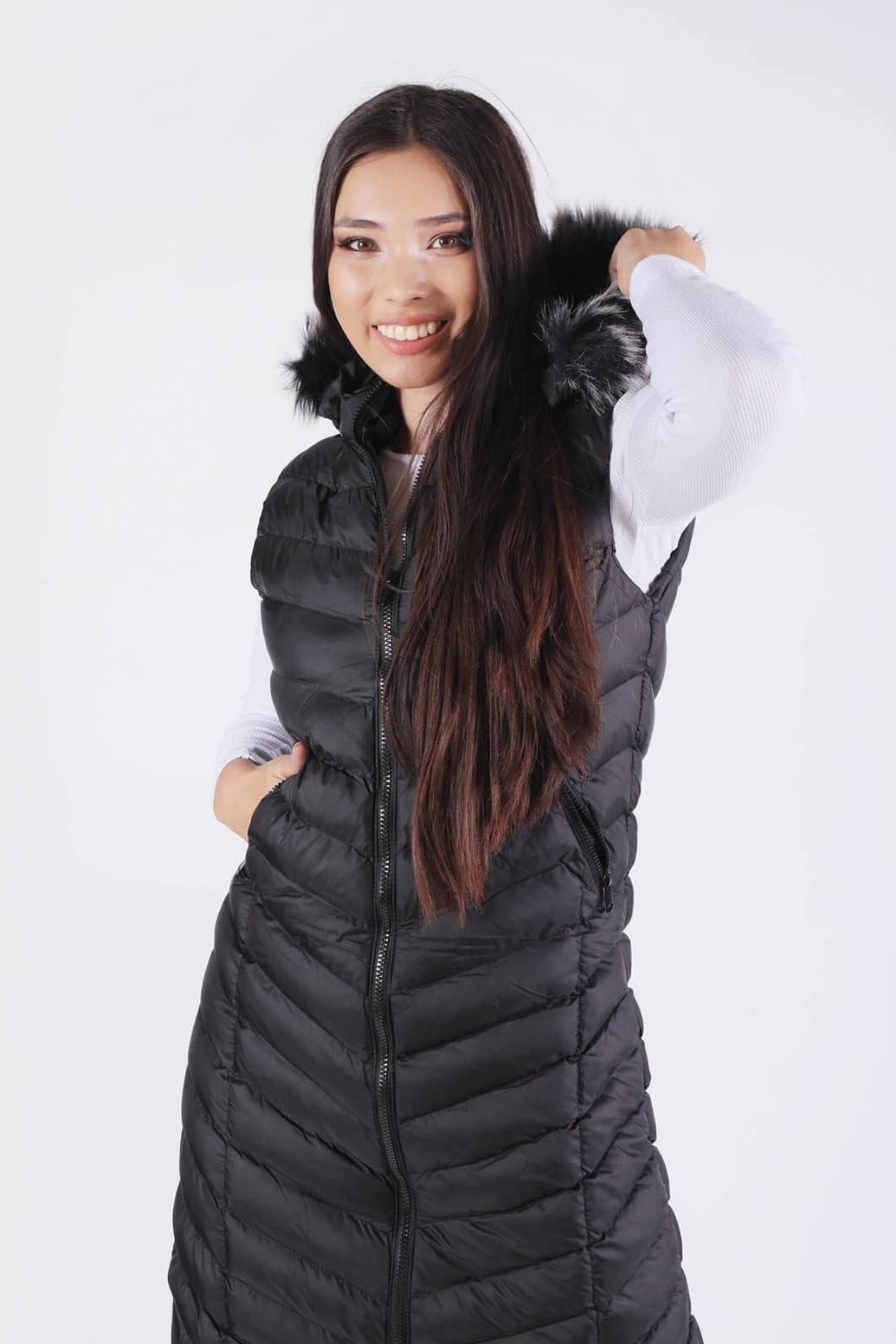 1025 Kapüşonlu Cepli Yelek Siyah