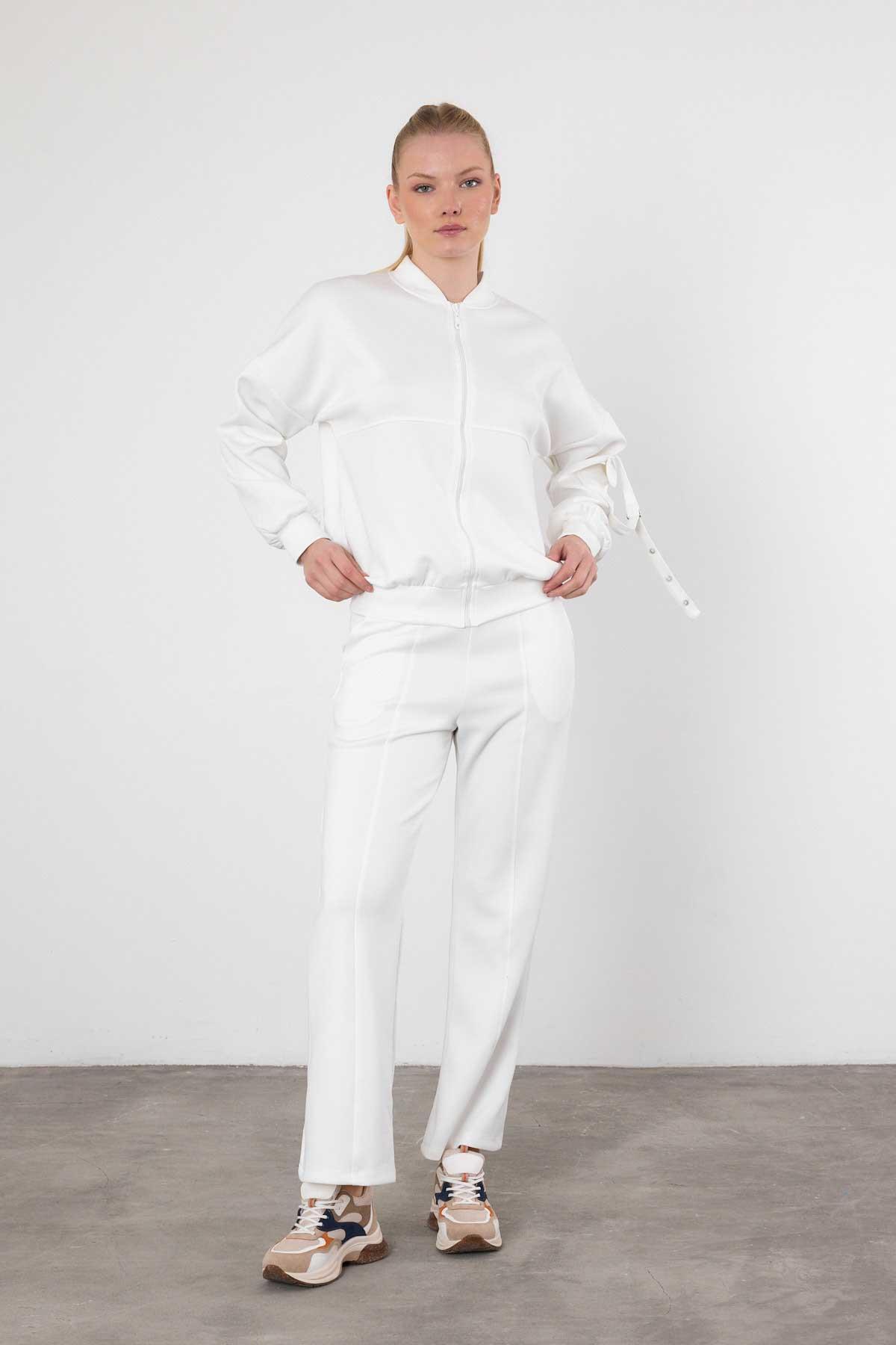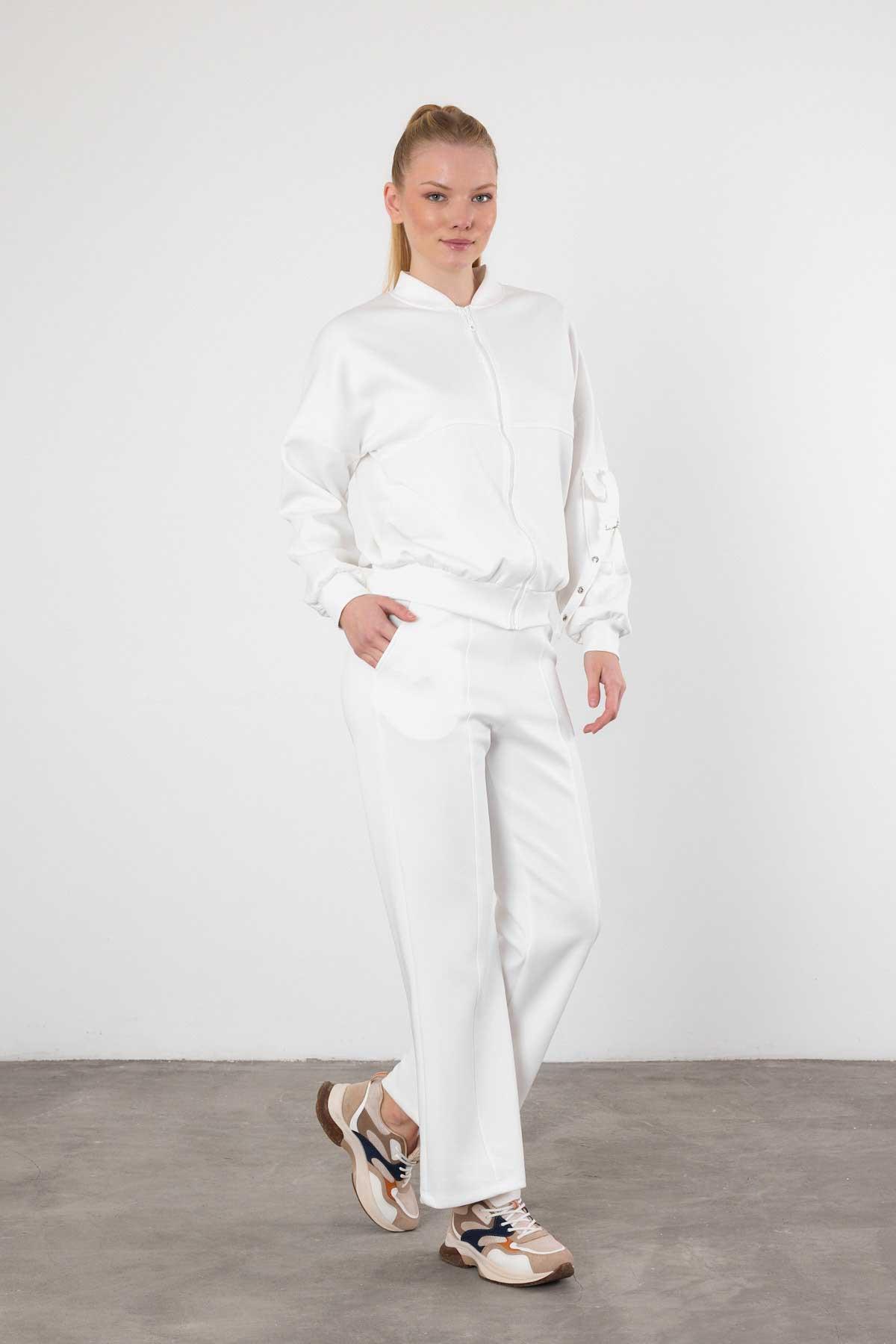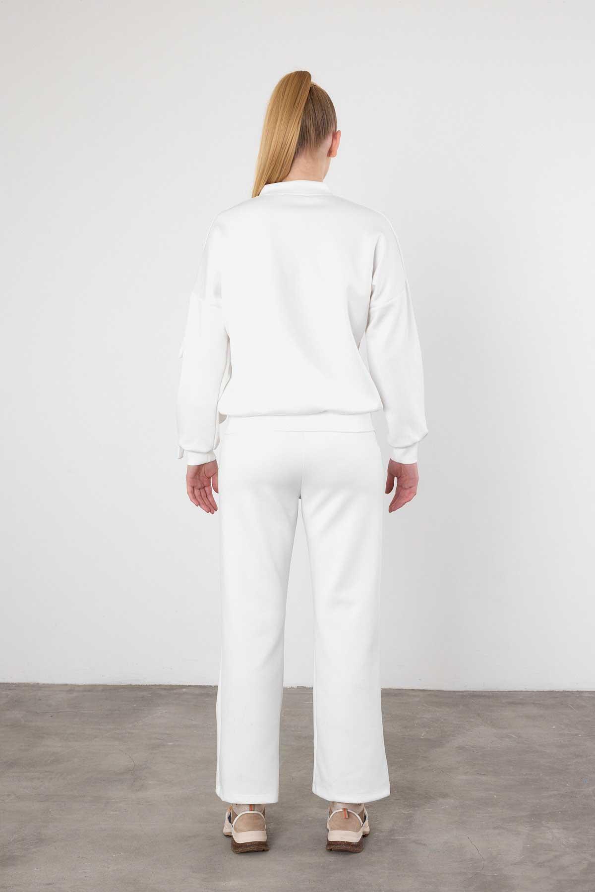 Beyaz Dalgıç Detay Fermuarlı Eşofman Takım 9153M