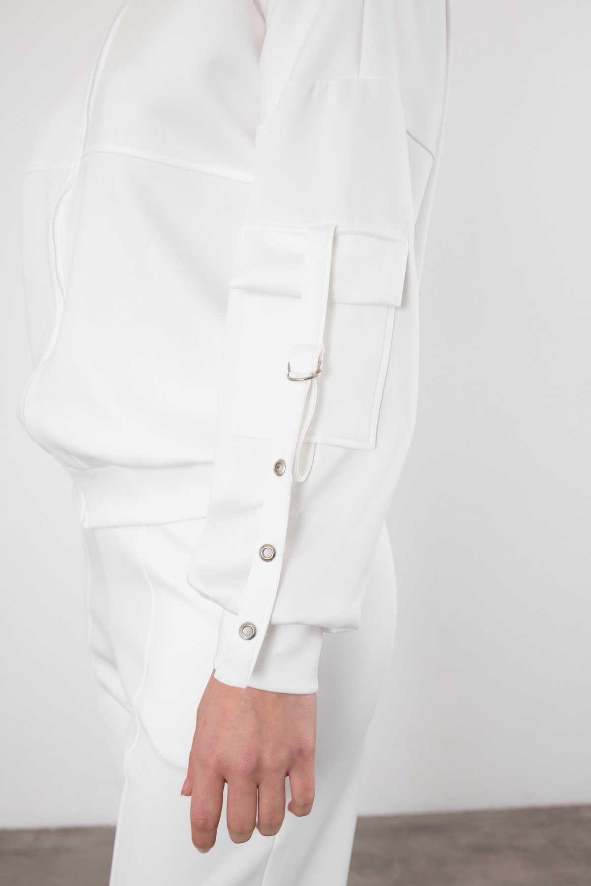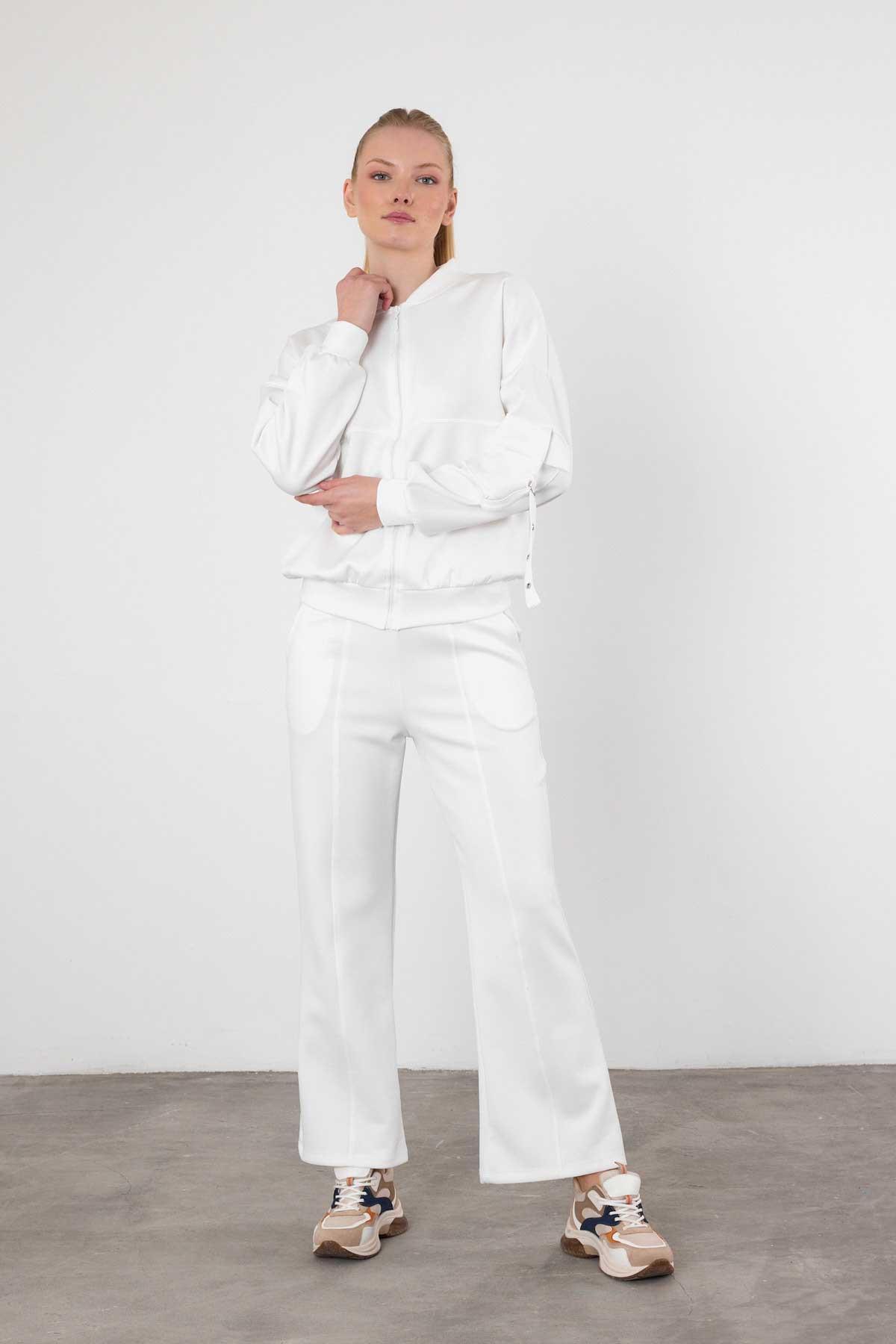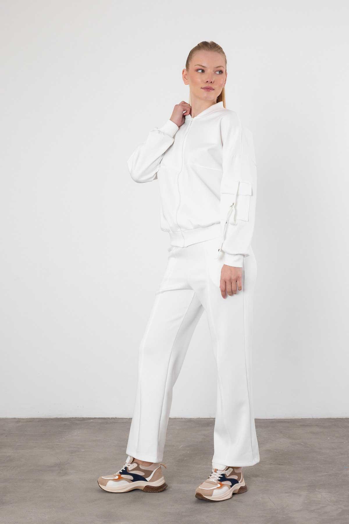 Beyaz Dalgıç Detay Fermuarlı Eşofman Takım 9153M