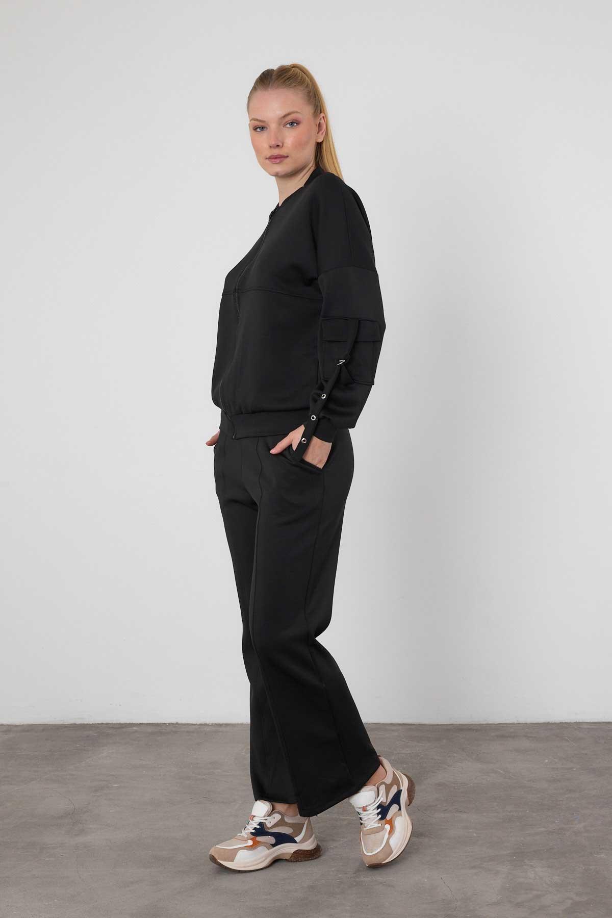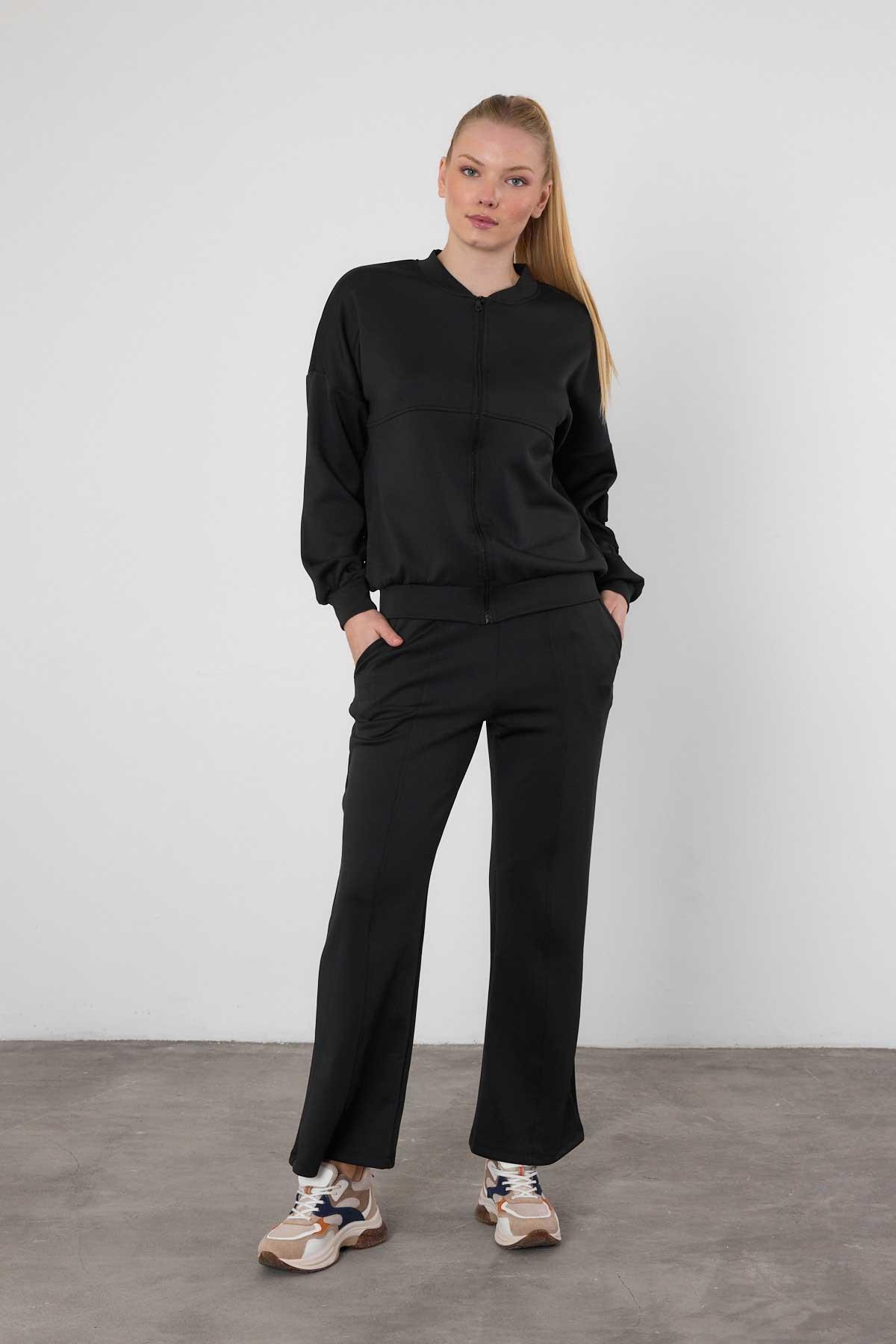 Siyah Dalgıç Detay Fermuarlı Eşofman Takım 9153M