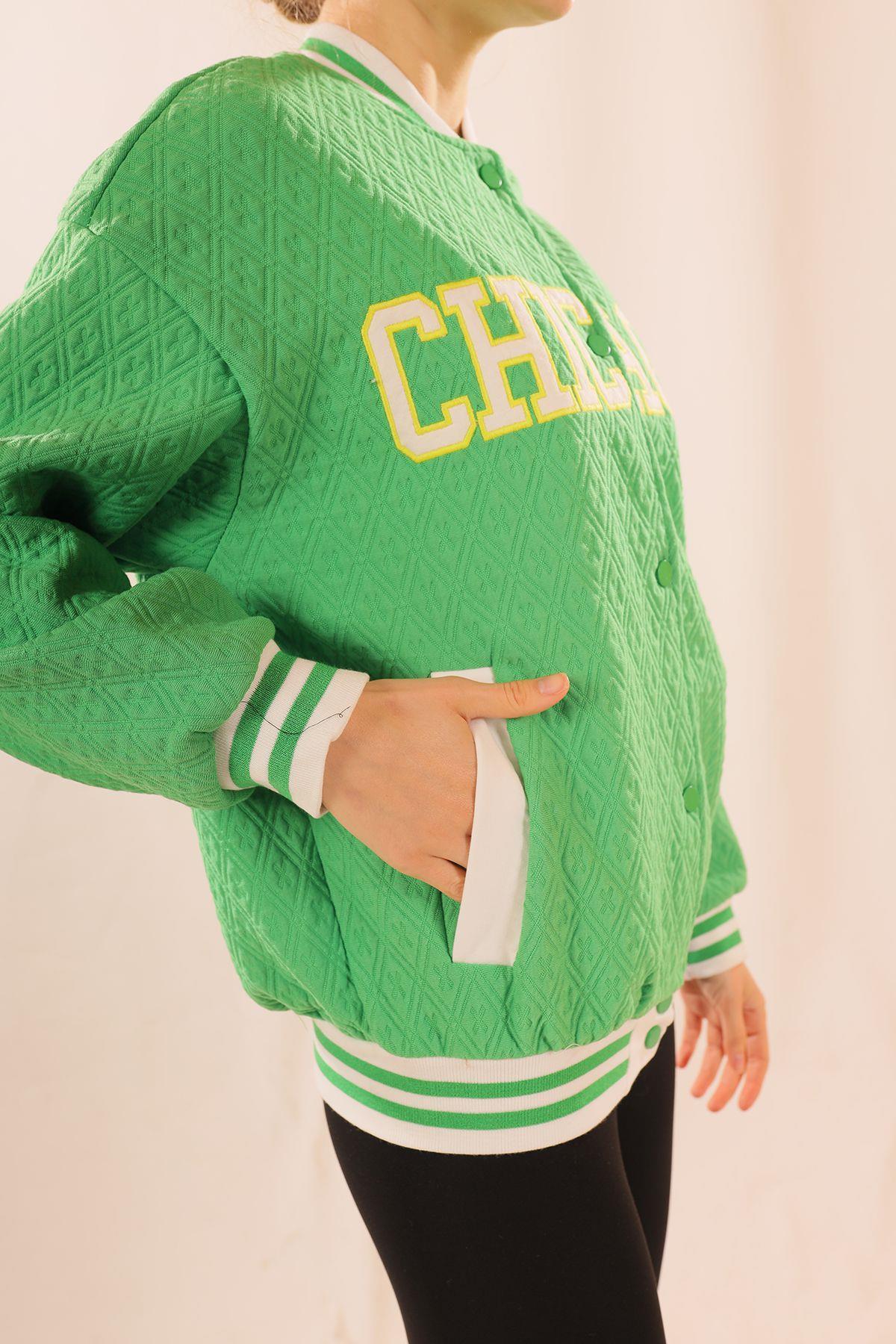Yeşil Chicago Nakış Kolej Ceket 1028