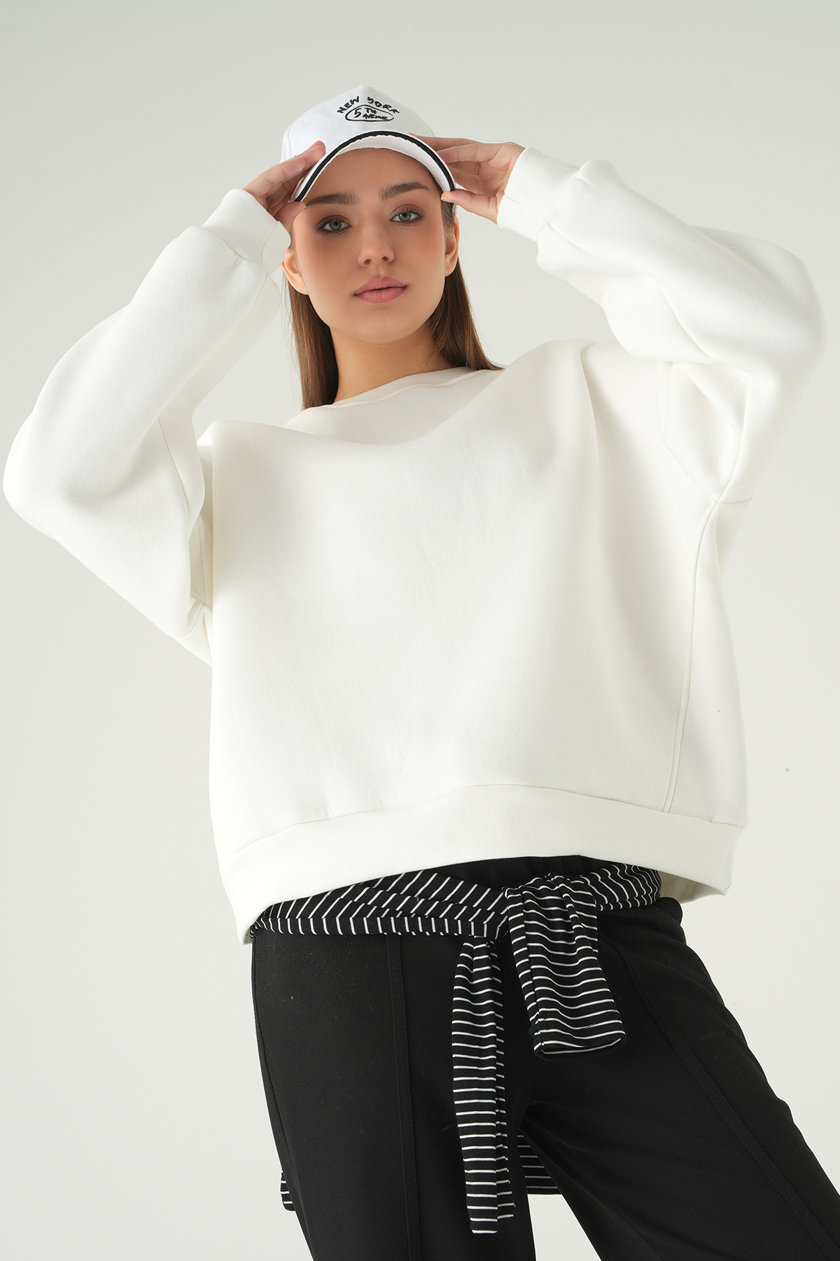 1203 Kapüşonlu Sweat Ekru