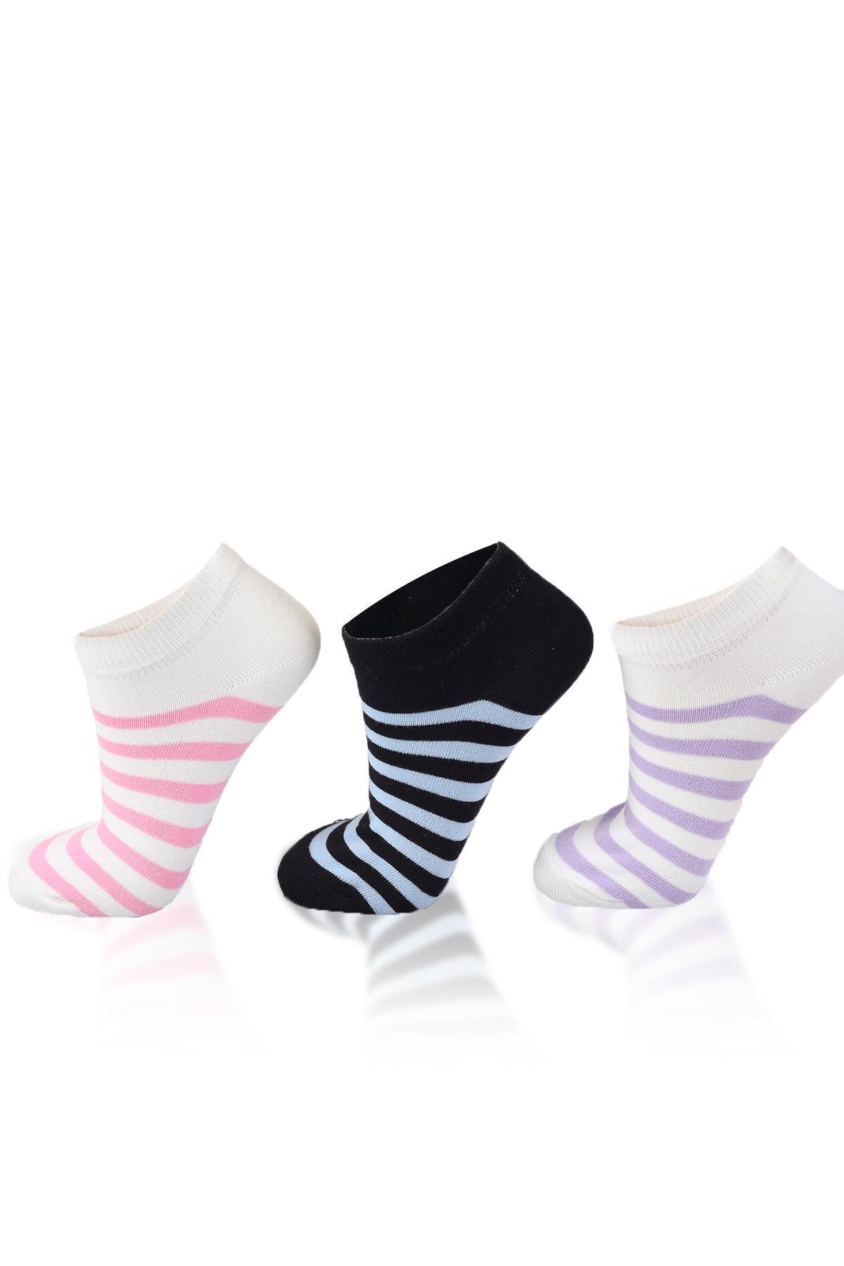 1050 Çizgili 3'lü Çorap Pembe-Mavi-Lila