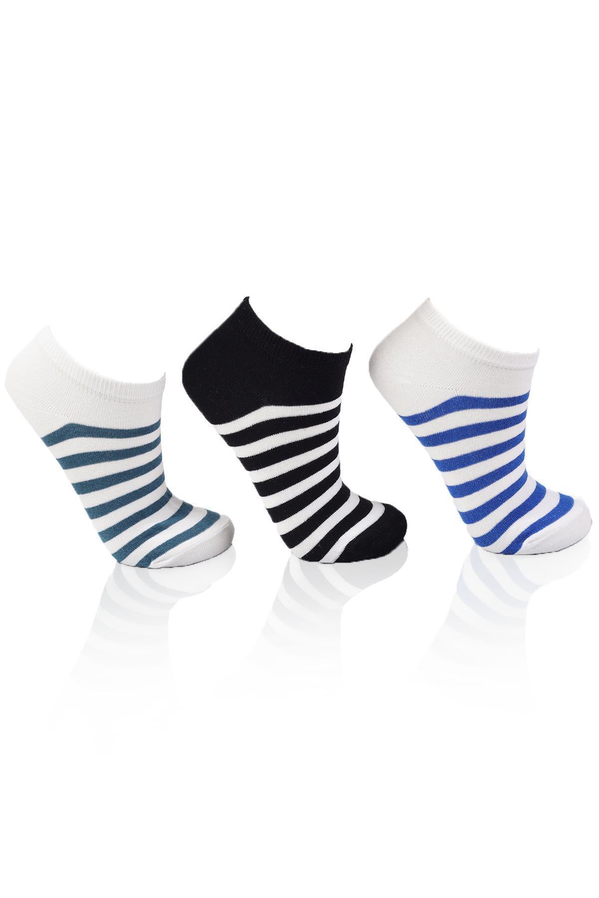 1050 Çizgili 3'lü Çorap Saks-Turkuaz-Siyah