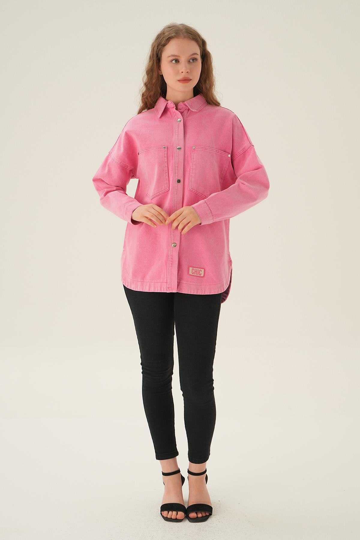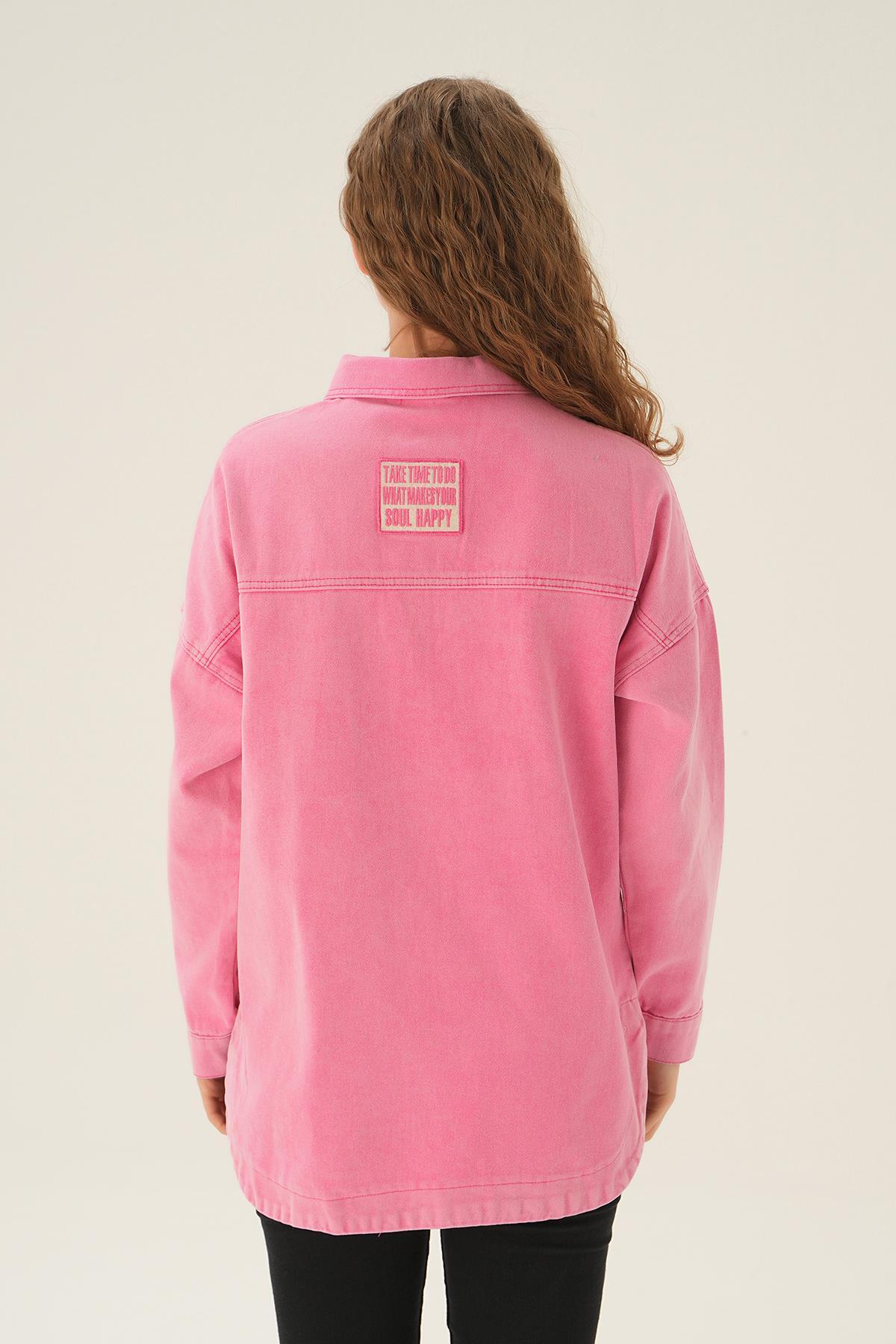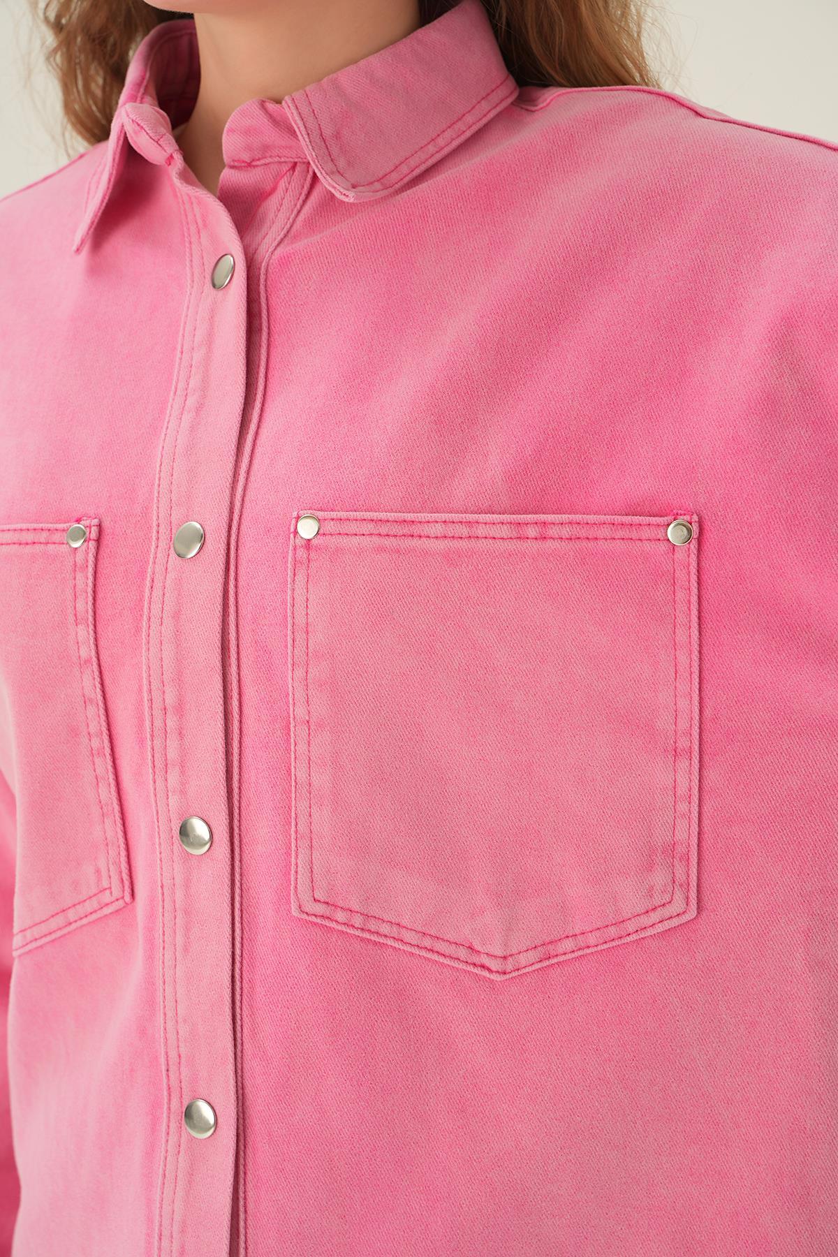 Pembe Çizgili Salaş Gömlek 5475