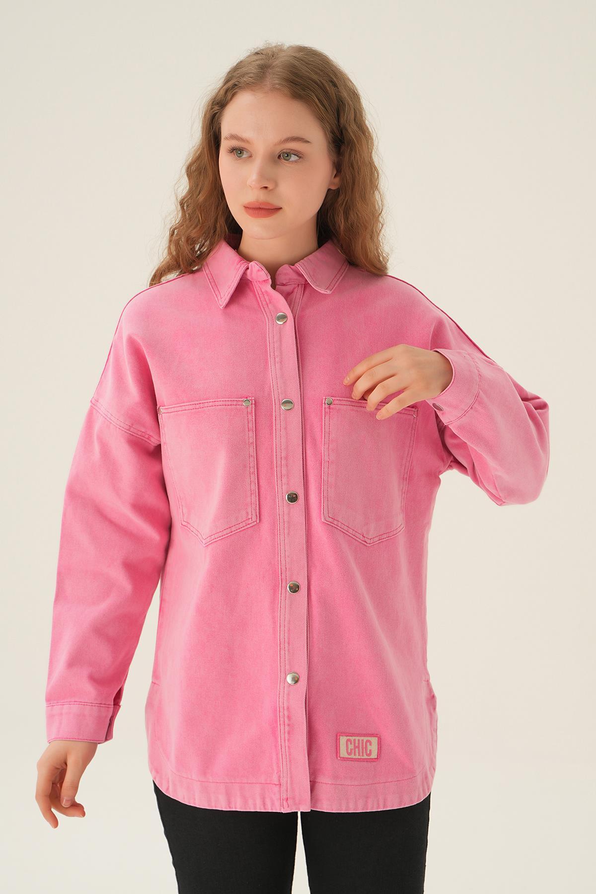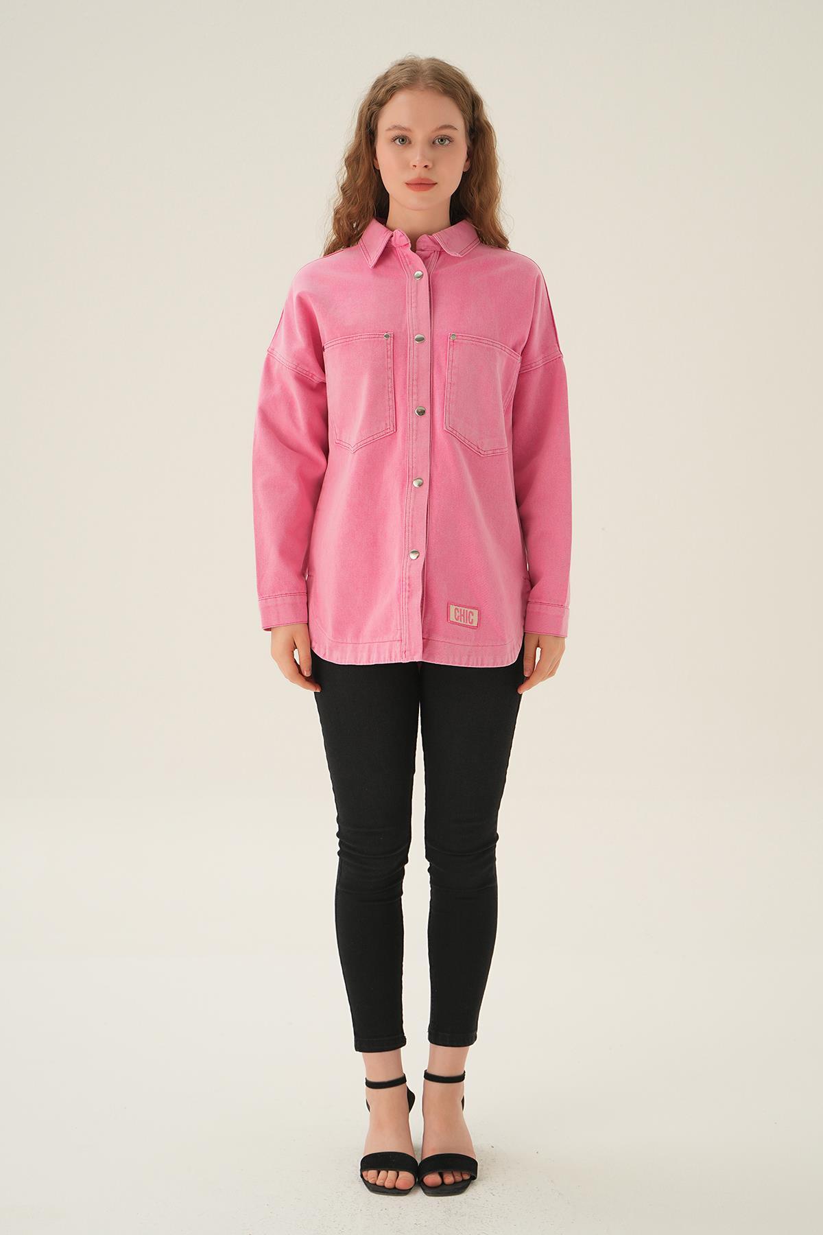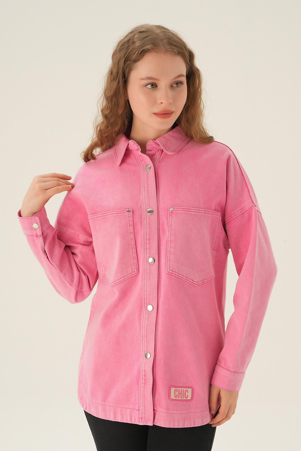 Pembe Çizgili Salaş Gömlek 5475
